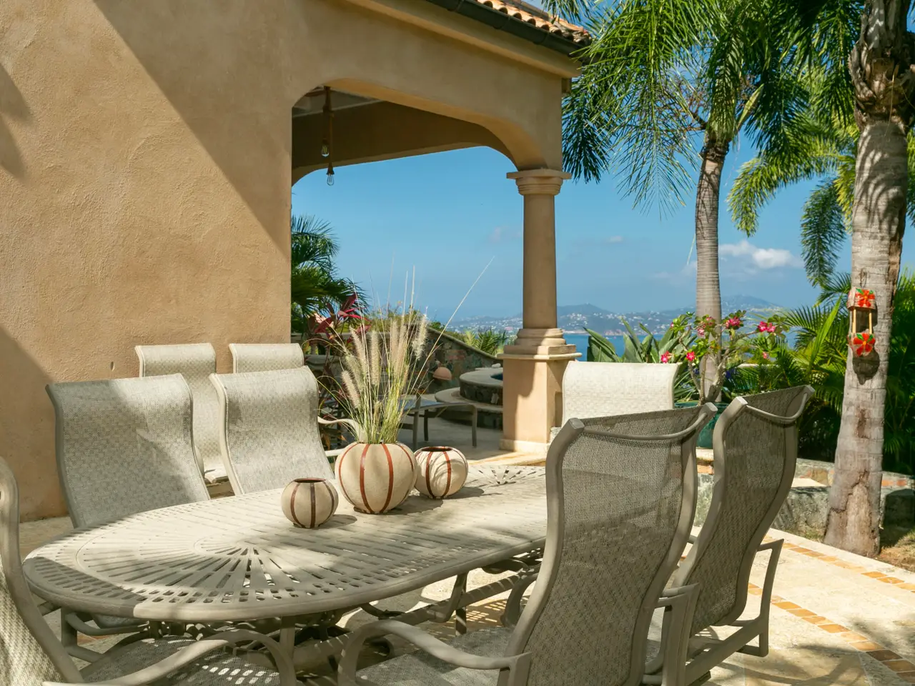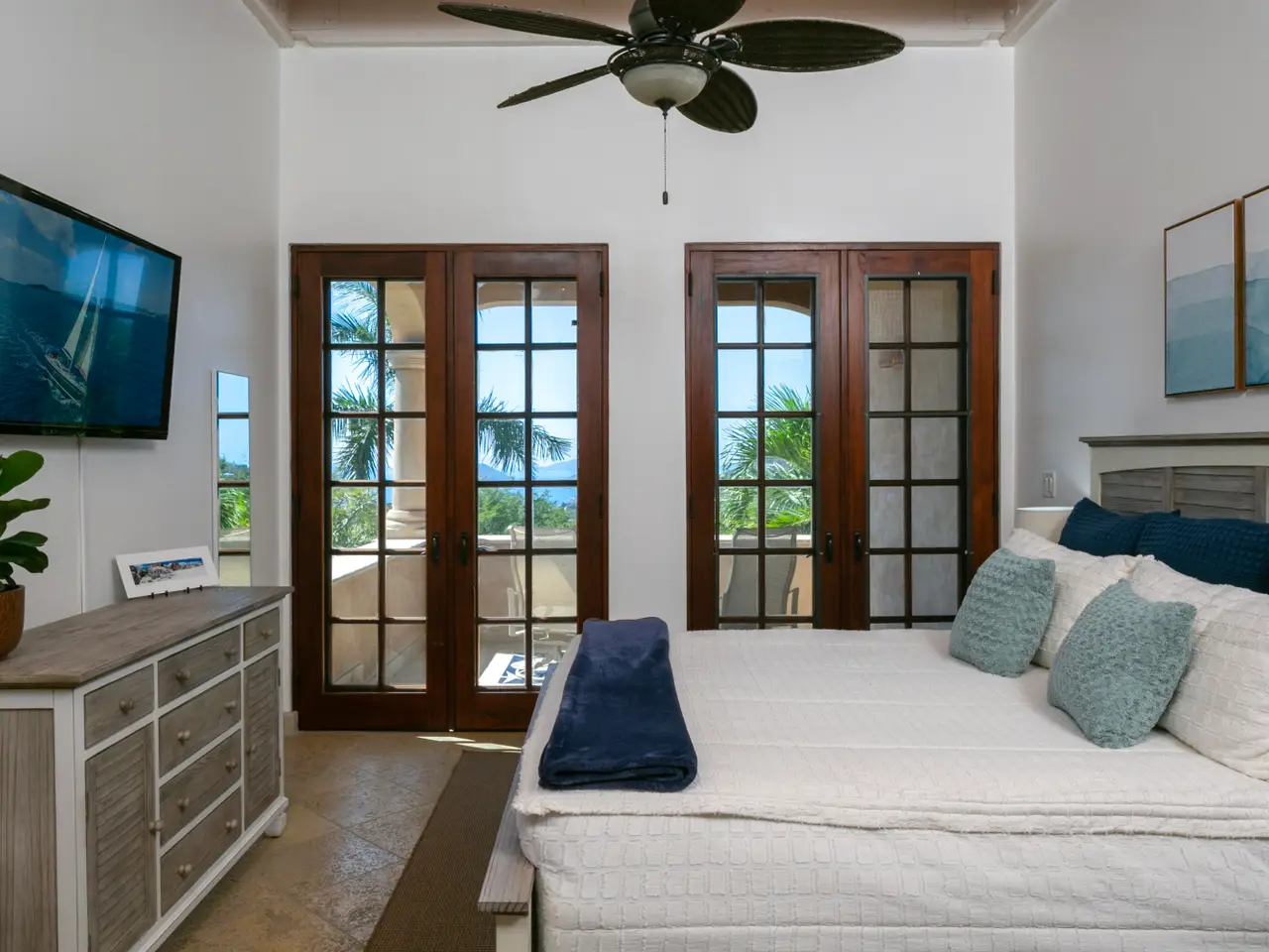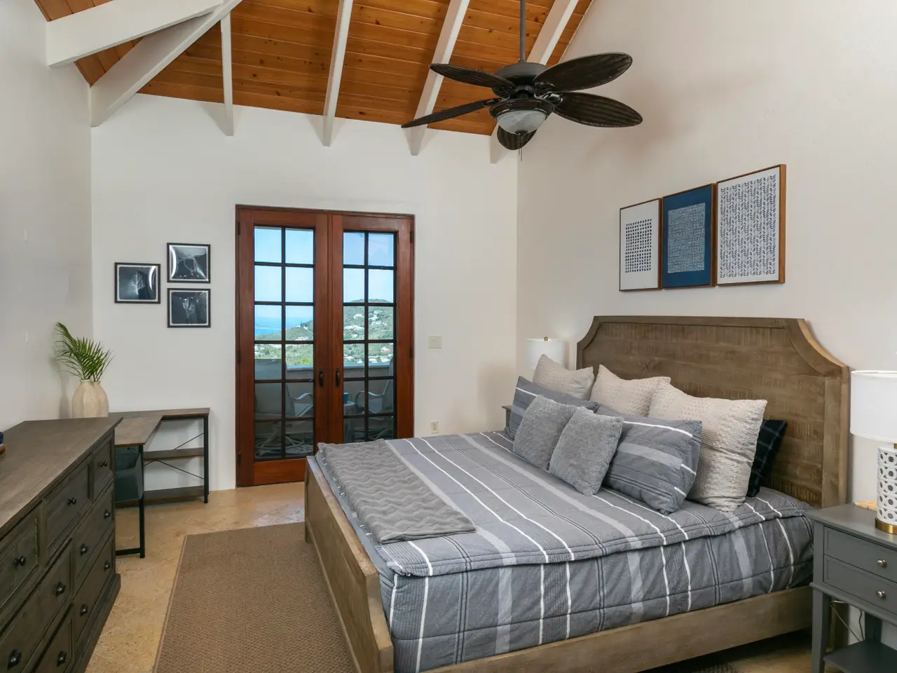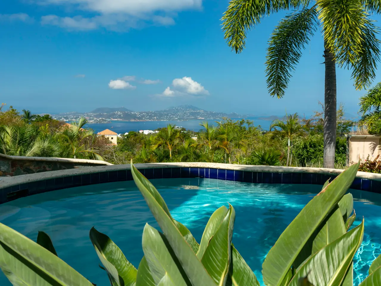 Casa Sonadores, the Dreamers' House, lives up to its name. Set within the gated heights of Virgin Grande Estates and framed by sweeping south-to-west views that capture St. Croix, Pillsbury Sound, and year-round sunsets, this elegantly crafted Michael Oxman villa blends timeless Caribbean design with thoughtful modern upgrades. A private gated entry leads to a gracious courtyard and stonework details that set the tone for the home's quality. Coral stone floors, custom mahogany doors and windows, soaring 12-foot ceilings, and hand-selected architectural finishes run throughout. The main terrace features a round pool and generous outdoor dining. A true Dreamers' House--crafted with vision, enhanced with care, and ready for its next chapter.The residence offers spacious bedroom suites with King beds, private verandas, travertine-and-coral stone baths, and two outdoor showers. Below, a 1,000-sq-ft game and bunk room creates a retreat of its own with TVs, billiard tables, two sets of bunks and arcade games ideal as an extra space for fun and extra sleeping accommodation.