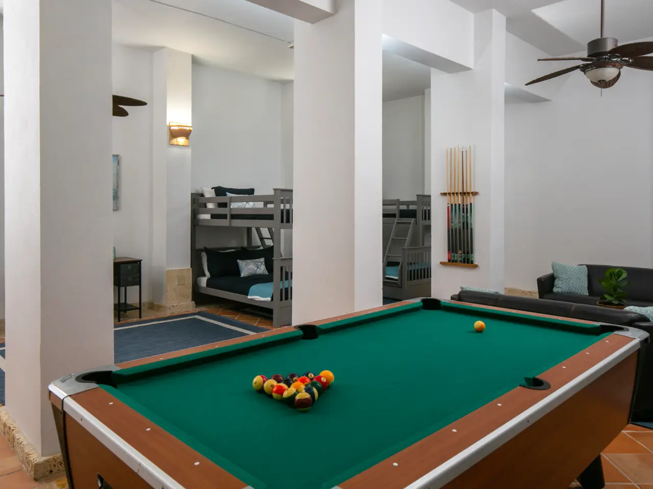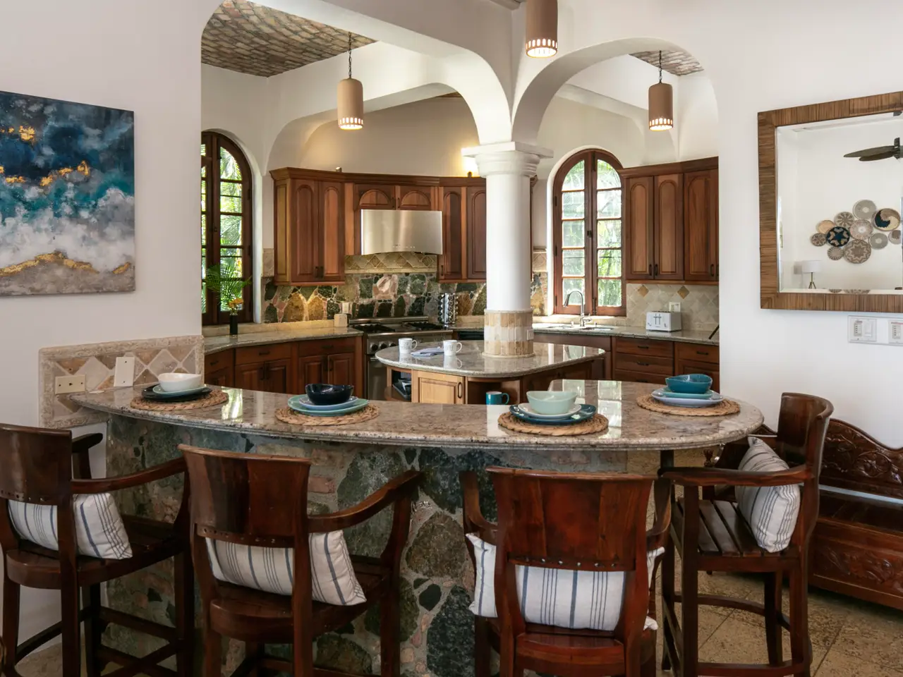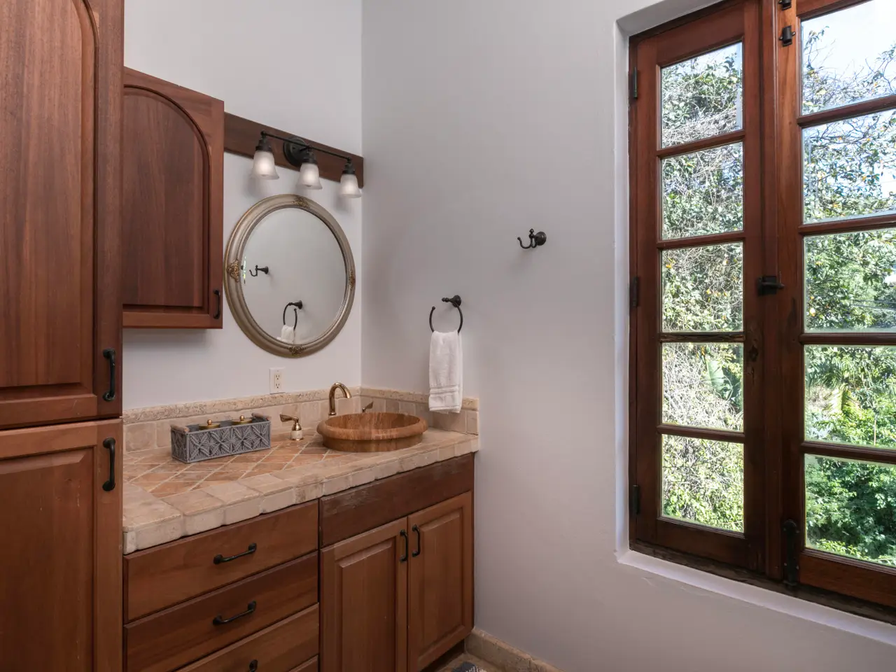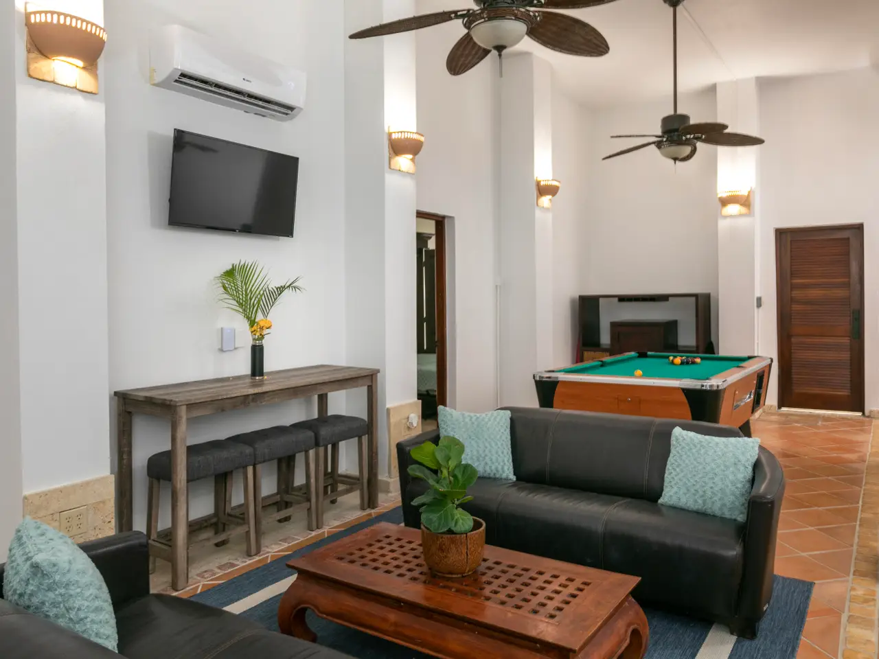 Casa Sonadores, the Dreamers' House, lives up to its name. Set within the gated heights of Virgin Grande Estates and framed by sweeping south-to-west views that capture St. Croix, Pillsbury Sound, and year-round sunsets, this elegantly crafted Michael Oxman villa blends timeless Caribbean design with thoughtful modern upgrades. A private gated entry leads to a gracious courtyard and stonework details that set the tone for the home's quality. Coral stone floors, custom mahogany doors and windows, soaring 12-foot ceilings, and hand-selected architectural finishes run throughout. The main terrace features a round pool and generous outdoor dining. A true Dreamers' House--crafted with vision, enhanced with care, and ready for its next chapter.The residence offers spacious bedroom suites with King beds, private verandas, travertine-and-coral stone baths, and two outdoor showers. Below, a 1,000-sq-ft game and bunk room creates a retreat of its own with TVs, billiard tables, two sets of bunks and arcade games ideal as an extra space for fun and extra sleeping accommodation.