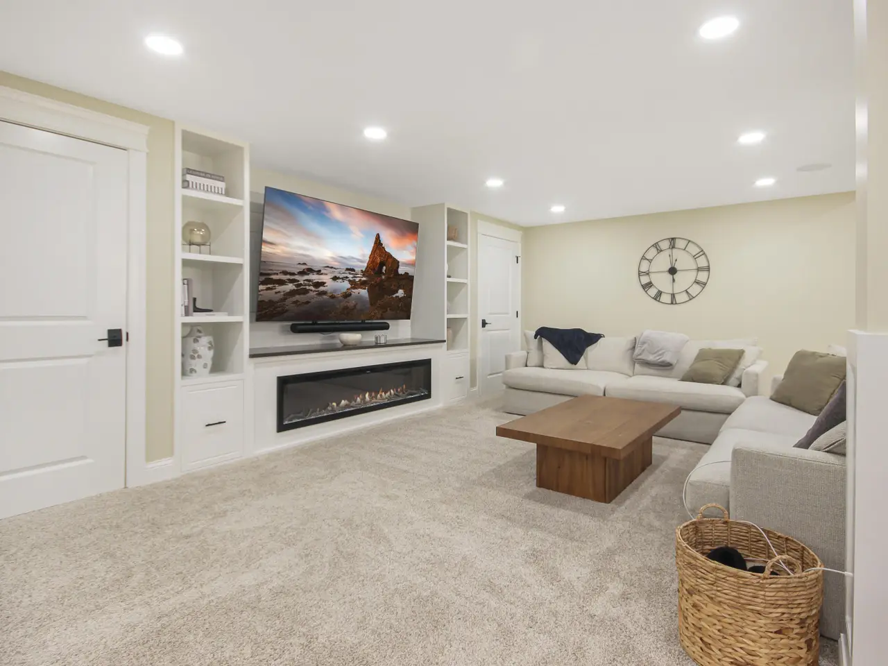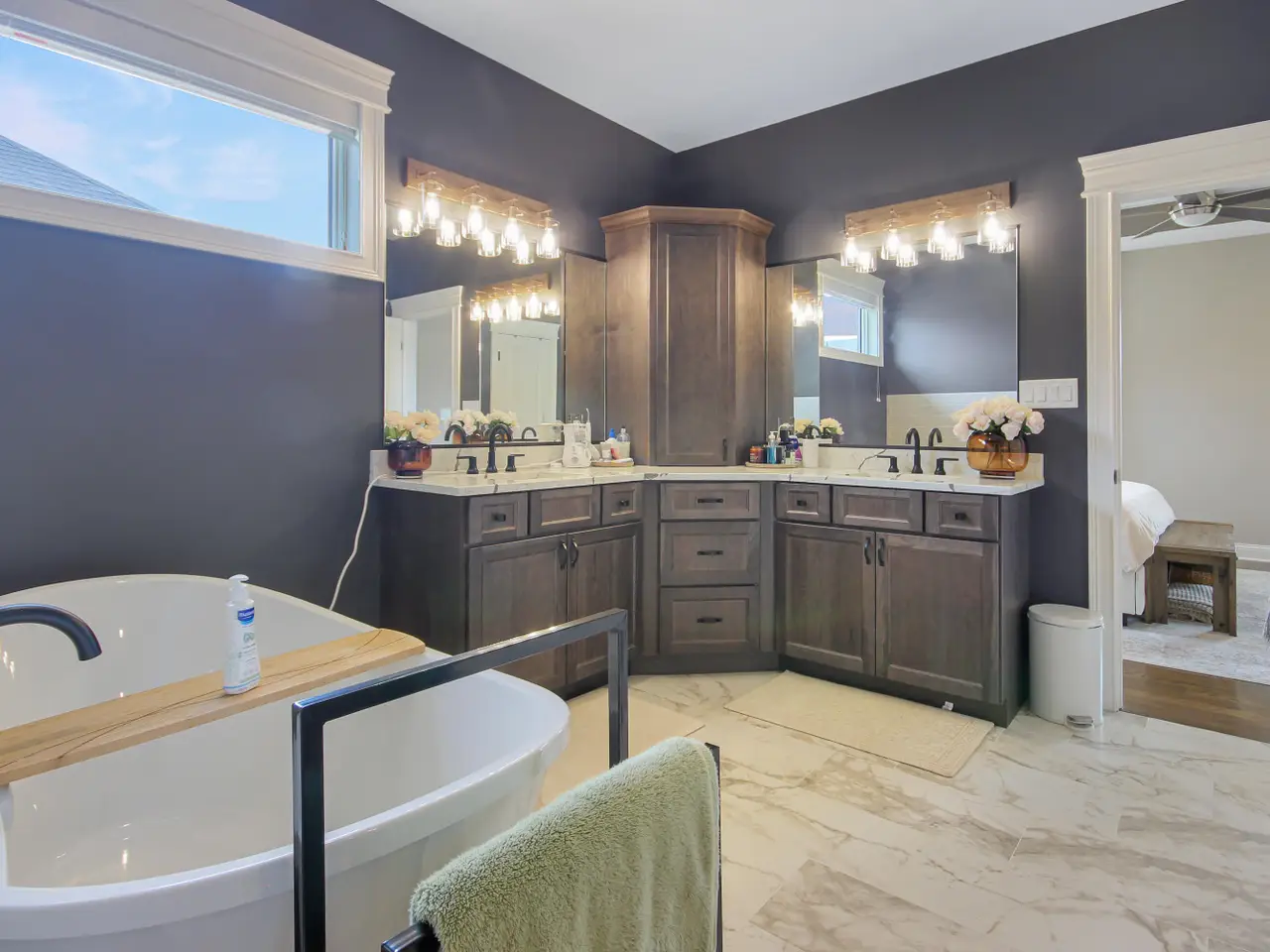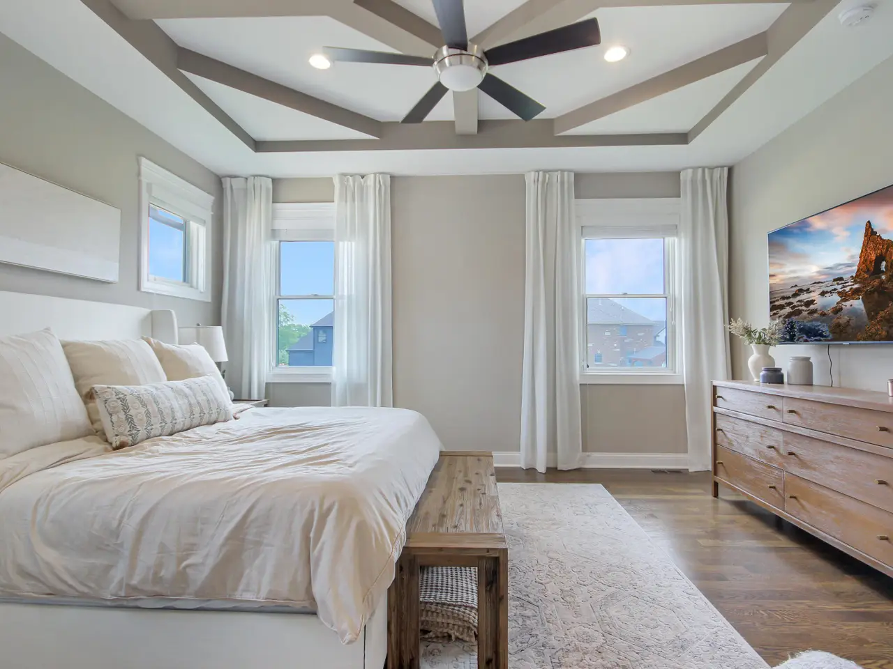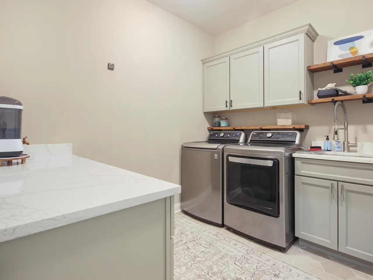 Welcome to Luxury Living in The Preserves of St. John! Discover this nearly 4,800 sq ft ranch in the desirable Preserves of St. John subdivision. Boasting an upgraded framing/thermal package, this home features 4 beds, 4 baths, and a finished 3-car garage with 2 additional storage areas. The fully finished basement offers ample entertainment, living, and storage space, along with a large custom bar area! Enjoy white oak floors throughout the main level, a 14 ft vaulted ceiling, quartz counters/island, and stainless appliances. The dining area leads to your extended covered back porch, perfect for outdoor relaxation. House is upgraded with a whole house generator, tankless water heater, and the list of upgraded features goes on. Don't miss out on this better-than-new, custom ranch!