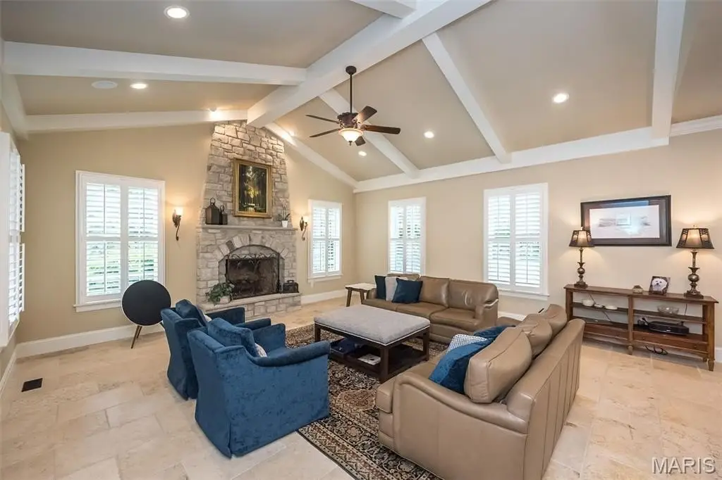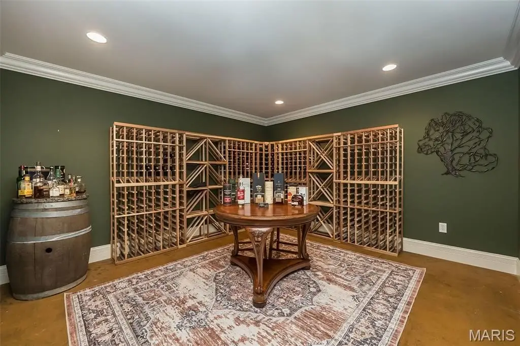 Casual elegance best describes this 5 bedroom, 4 full 2 half bath home nestled on a picturesque 1+-acre lot in the heart of Frontenac. With over 7,200 sq feet of luxurious living space, this stunning home seamlessly combines formal and informal spaces in a sophisticated, thoughtful floorplan. Soaring ceilings, classic millwork and gleaming hardwood flooring extend throughout the main level, with gorgeous architectural details everywhere you look. The paneled office features a coffered ceiling, while an impressive great room overlooks the patio and lush backyard. The open floorplan kitchen, breakfast room and family/hearth room are highlighted by a natural stone fireplace, creating the perfect setting for family and any guest occasion. The main level primary bedroom suite is a true retreat, with tray ceiling, walk-in closets and a spa-like bathroom, complete with bubble tub and large walk-in shower. Upstairs, a family room/loft area and three additional bedrooms (one is ensuite) are spacious and welcoming. The jaw-dropping lower level has been newly refreshed and includes a custom wet bar, temperature-controlled wine room, workout space, rec room/media room and a comfortable bedroom suite. The lovely lot could easily accommodate a pool, if desired. With its impressive 4-car garage and ideal location near shops and Ladue Schools, this is truly an estate not to be missed!