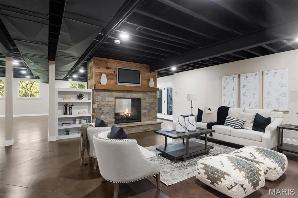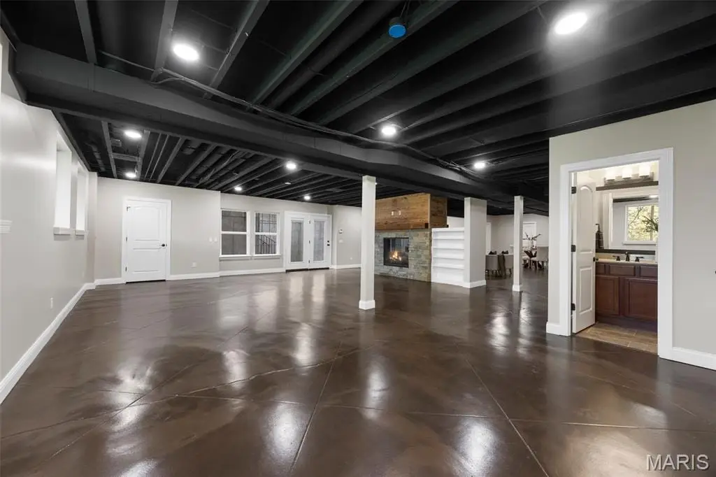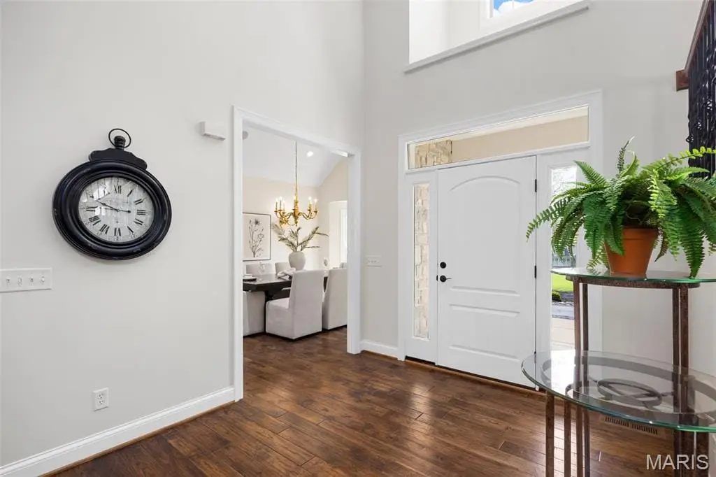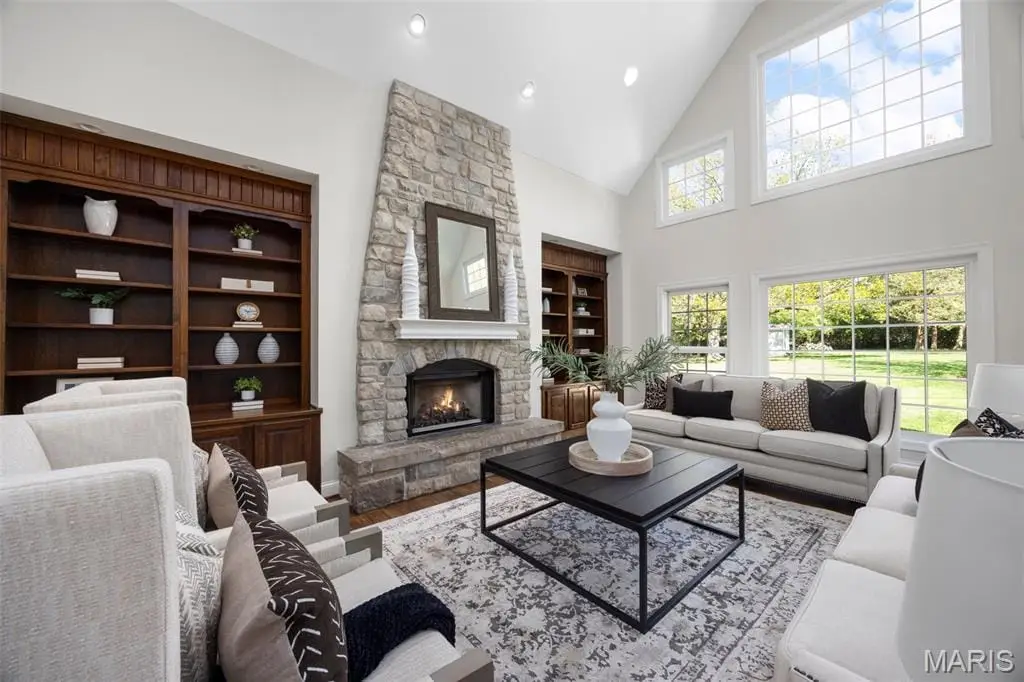 This exceptional estate masterfully blends timeless elegance with modern comforts on a pristine, professionally landscaped one-acre lot. Mature trees and lush gardens frame the circle drive, while a side-entry three-car garage with carriage-style doors offers both charm and convenience. Inside, a dramatic two-story foyer sets the tone, leading to formal dining and a soaring great room with floor-to-ceiling stone fireplace, custom built-ins, and a breathtaking wall of windows that flood the home with natural light. The newly remodeled chefs kitchen is a true centerpiece, featuring quartz surfaces, bespoke cabinetry, double ovens, a five-burner gas cooktop, and a butler’s wet bar - ideal for hosting in style. Gather in the hearth room with its inviting fireplace or in the breakfast room, where serene backyard views create a perfect start to the day. The main-level primary suite is a private sanctuary, complete with a sitting area, a spa-inspired bath, and a custom-designed walk-in closet. Two additional bedrooms with a Jack & Jill bath share this level, along with a spacious home office, a designer laundry suite, and thoughtful built-ins including mudroom cubbies with direct garage access. Upstairs, two more bedrooms and a full bath provide versatility for family or guests, with a balcony overlooking the great room. The finished lower level is an entertainers dream: a full wet bar with icemaker and beverage center, a cozy fireplace, billiards and recreation areas, and a full bath - all with convenient walk-up access. Additional luxuries include extensive millwork and casings throughout, three-zone high-efficiency HVAC, whole-house audio, central vacuum, security system, and future-ready features such as basement laundry rough-in. This residence is more than a home – it’s a lifestyle of sophistication, privacy, and enduring quality. (Kitchen and Primary Suite have been remodeled)