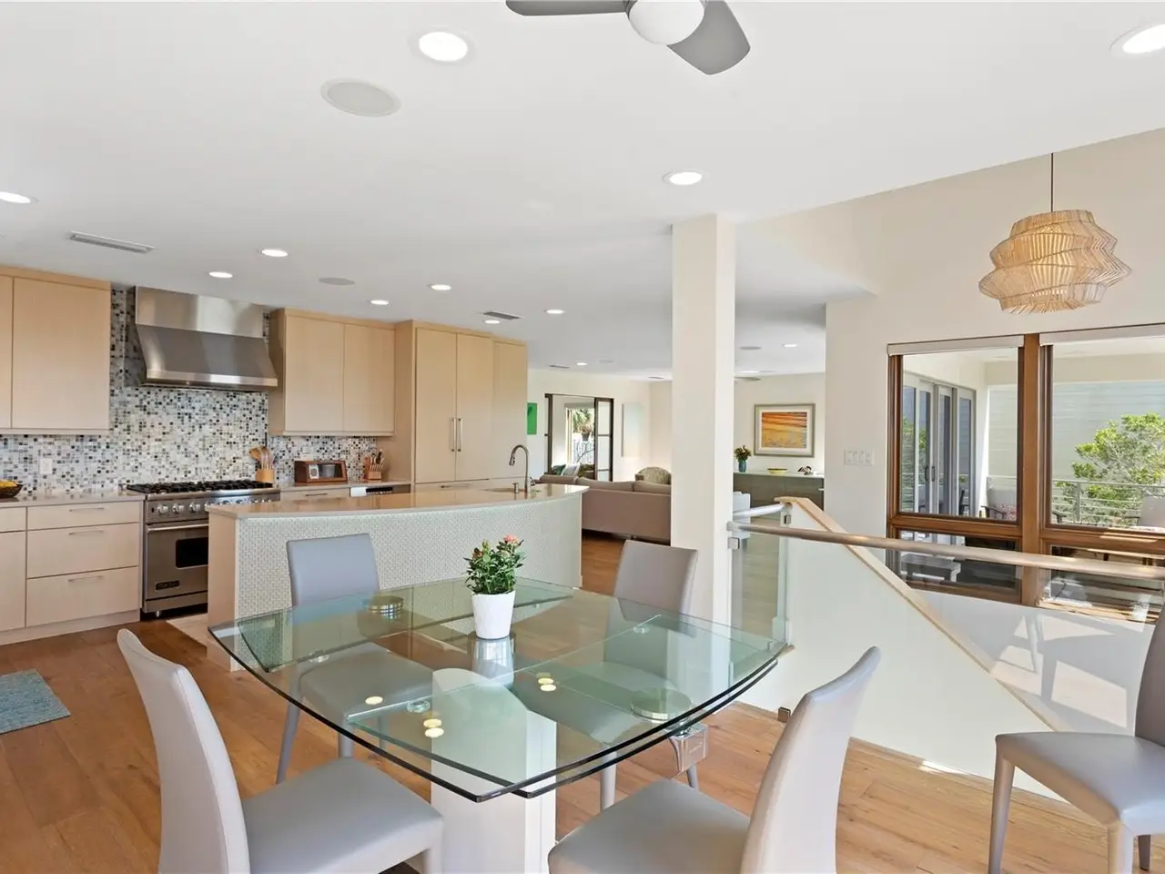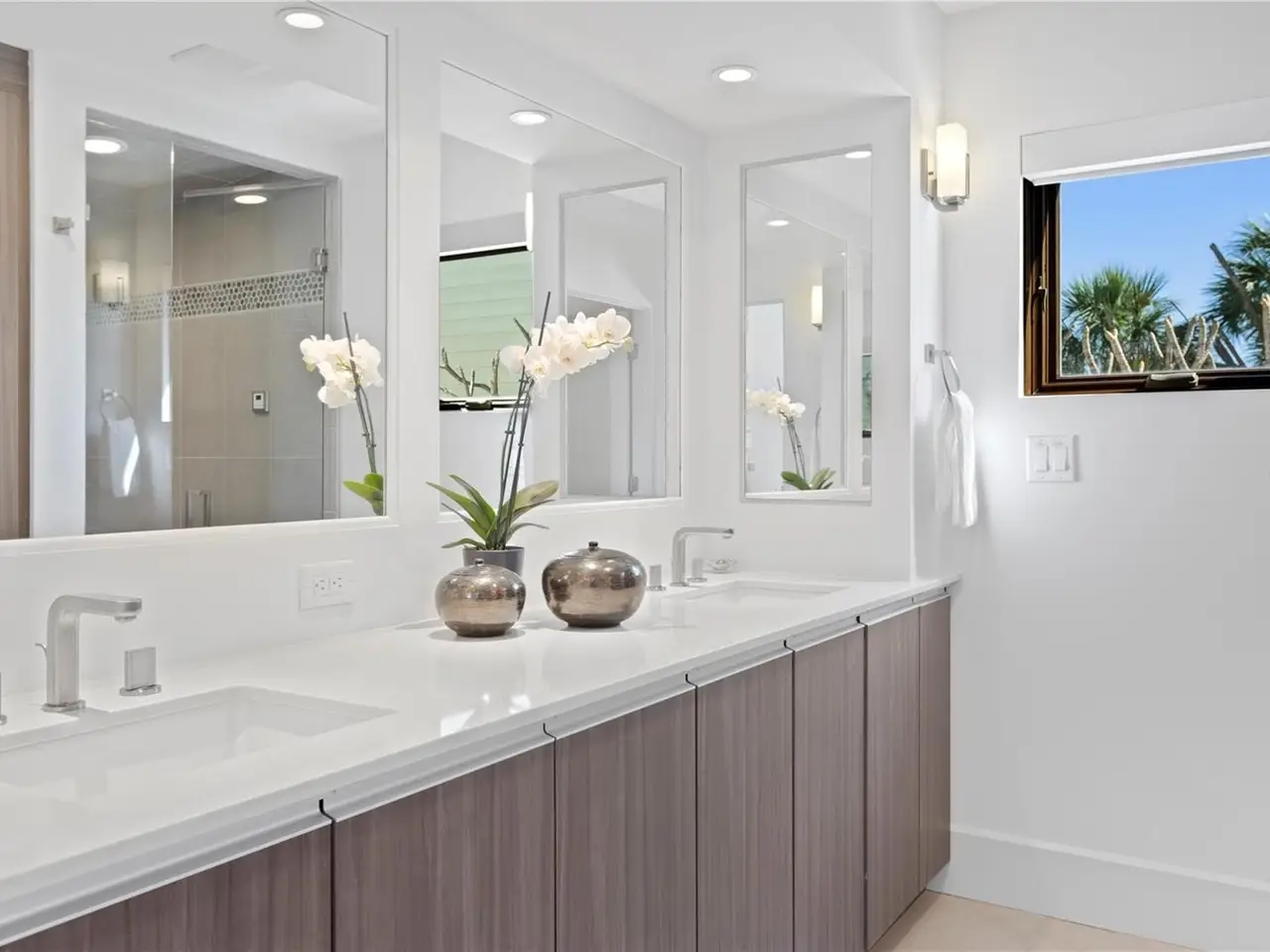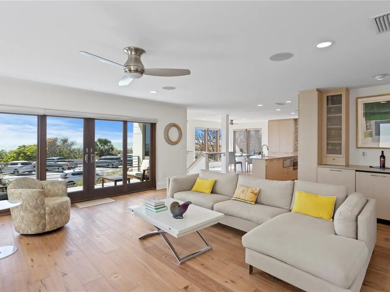 Modern Gulf-View Masterpiece | 4 Bed, 4 Bath | Custom Luxury Finishes. This contemporary architectural gem offers breathtaking, unobstructed Gulf views and is move-in ready. Renovated in 2013, the home features approximately 2,350 sq. ft. of light-filled living space upstairs, with an additional 1,600 sq. ft. on the lower level. Designed for elevated coastal living, this 4-bedroom, 4-bath residence includes a private elevator, smart home automation, and two-zone HVAC for maximum comfort. Upper-level HVAC has UV Air Purification. The open-concept main living area features wide-plank oak flooring, while all bathrooms are beautifully tiled. The chef’s dream kitchen boasts a custom gourmet setup, including: • Viking 6-burner natural gas range with electric oven • Built-in Liebherr refrigerator • Miele dishwasher with panel matching cabinetry • Wolf builtin steam convection oven, warming drawer, and microwave • Quartz countertops The luxurious primary suite offers a spacious walk-in closet and rich dark oak flooring complemented by powered window blinds for modern convenience. Step out onto a private outdoor tile deck, perfect for morning coffee or evening relaxation. Additional amenities include laundry room, an entertainment bar area as well as a media room equipped with a 75” Sony TV and surround sound. Built for durability and peace of mind, the home features Pella and Andersen hurricane-resistant windows and sliding doors. Sprinkler system pump replaced, and all sprinklers inspected and operating 2025. The oversized garage accommodates up to two vehicles. Roof is Rolled Modified Bitumen. Flood elevation is 9 feet. Bonus: Potential for a third-floor roof deck addition to expand outdoor living and take in panoramic Gulf views