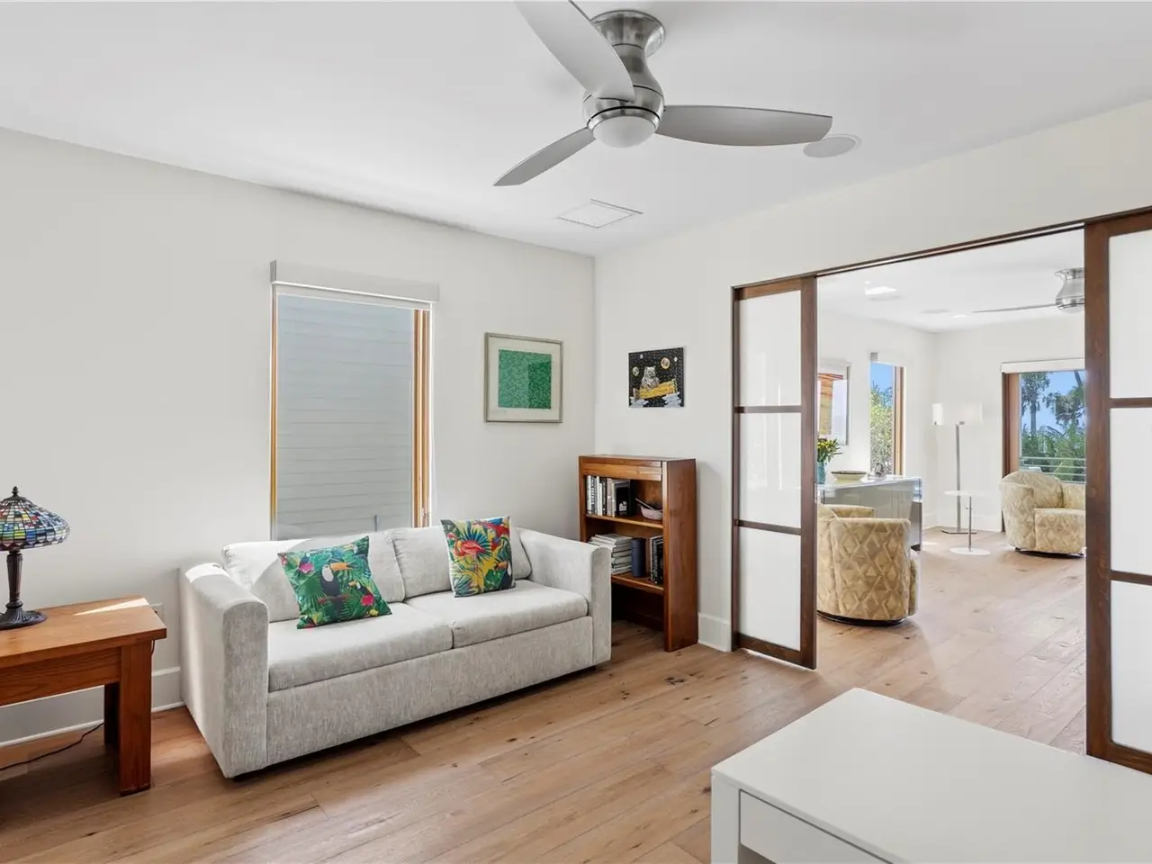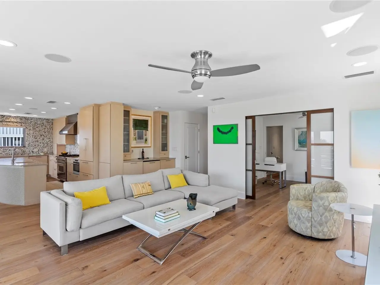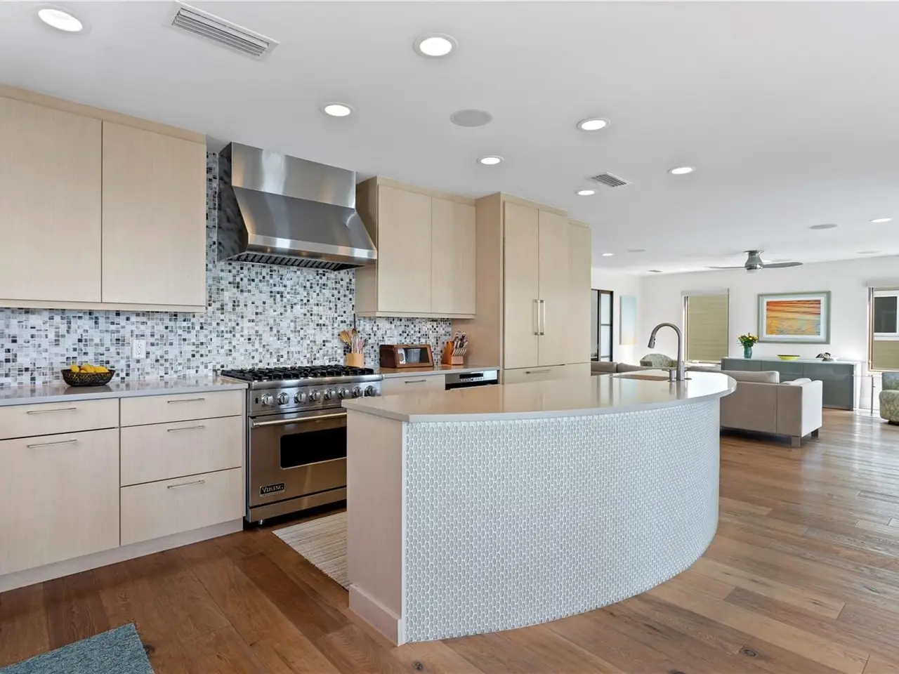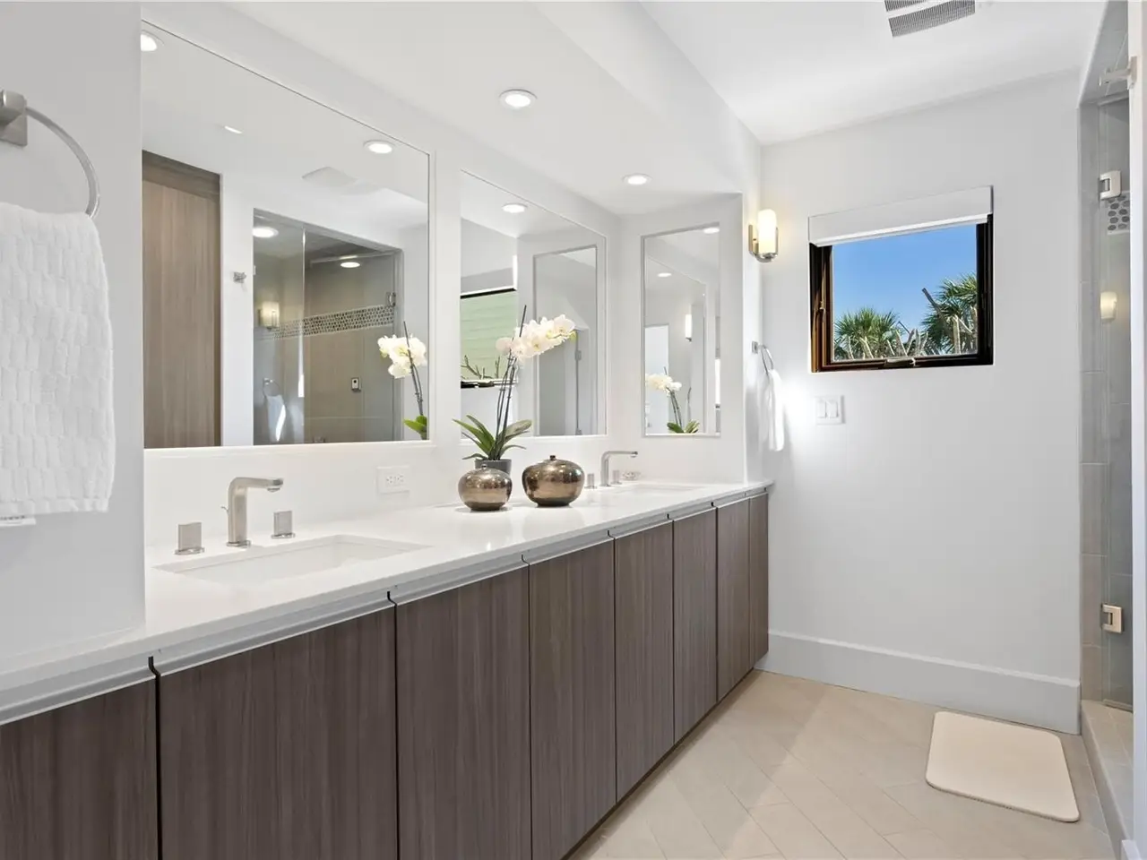 Modern Gulf-View Masterpiece | 4 Bed, 4 Bath | Custom Luxury Finishes. This contemporary architectural gem offers breathtaking, unobstructed Gulf views and is move-in ready. Renovated in 2013, the home features approximately 2,350 sq. ft. of light-filled living space upstairs, with an additional 1,600 sq. ft. on the lower level. Designed for elevated coastal living, this 4-bedroom, 4-bath residence includes a private elevator, smart home automation, and two-zone HVAC for maximum comfort. Upper-level HVAC has UV Air Purification. The open-concept main living area features wide-plank oak flooring, while all bathrooms are beautifully tiled. The chef’s dream kitchen boasts a custom gourmet setup, including: • Viking 6-burner natural gas range with electric oven • Built-in Liebherr refrigerator • Miele dishwasher with panel matching cabinetry • Wolf builtin steam convection oven, warming drawer, and microwave • Quartz countertops The luxurious primary suite offers a spacious walk-in closet and rich dark oak flooring complemented by powered window blinds for modern convenience. Step out onto a private outdoor tile deck, perfect for morning coffee or evening relaxation. Additional amenities include laundry room, an entertainment bar area as well as a media room equipped with a 75” Sony TV and surround sound. Built for durability and peace of mind, the home features Pella and Andersen hurricane-resistant windows and sliding doors. Sprinkler system pump replaced, and all sprinklers inspected and operating 2025. The oversized garage accommodates up to two vehicles. Roof is Rolled Modified Bitumen. Flood elevation is 9 feet. Bonus: Potential for a third-floor roof deck addition to expand outdoor living and take in panoramic Gulf views