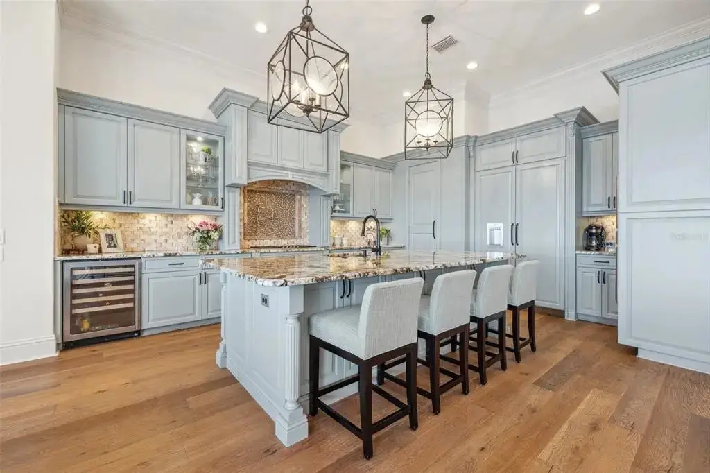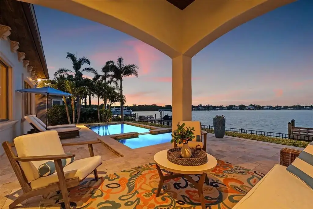 Experience coastal elegance and luxury living at its finest at 301 Bayview Drive NE, nestled on the shores of Smacks Bayou in the exclusive Snell Isle neighborhood of St. Petersburg. Elevation is 9.8 and sustained NO WATER INTRUSION in recent storms. Built by Andrew Vecchio in 2015, this exceptional waterfront residence offers superior craftsmanship, timeless finishes, and a flexible floor plan designed for modern Florida living. Enjoy sweeping water views the moment you step inside. Soaring 10–12 ft ceilings throughout the home create an airy, open atmosphere, enhanced by gorgeous engineered hardwood flooring, custom designer lighting, and upscale finishes. The main living space is anchored by a stunning gas fireplace and filled with natural light from oversized windows and glass doors. The chef’s kitchen is a showstopper—featuring top-of-the-line Thermador appliances, a gas cooktop, pot filler, wine refrigerator, pantry, stone countertops, and an oversized island with bar seating—perfect for gathering and entertaining. Enjoy your private waterfront oasis with a heated saltwater pool, spa, covered lanai, outdoor kitchen, and private dock. Whether you're hosting sunset dinners or launching paddleboards from your backyard, this home was built for the Florida lifestyle. The private primary suite is a serene retreat offering panoramic water views, dual walk-in closets, and a spa-inspired en suite bath with dual vanities, a freestanding Jacuzzi soaking tub, and a glass-enclosed walk-in shower. Each guest bedroom includes its own en suite bath, providing comfort and privacy for family and guests. A unique highlight of this home is the separate casita/in-law suite—attached yet completely private with its own entrance, walk-in closet, and full bath. It’s ideal for multi-generational living, a dedicated home office, home gym, or studio. Additional features include a spacious laundry room, 3-car garage with high ceilings for extra storage or lift installation, and a circular brick driveway that enhances curb appeal. Located minutes from vibrant downtown St. Pete, yet tucked away in a peaceful enclave, 301 Bayview Drive offers the best of both worlds—quiet luxury living with world-class dining, culture, and shopping just moments away.