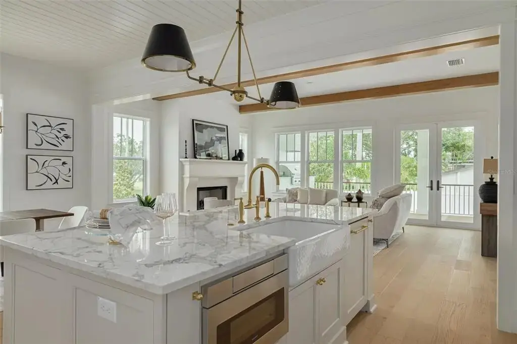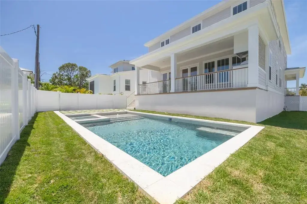 Under Construction. Introducing a prime Snell Island corner lot featuring a delightful Coastal Cape Cod style home designed by Canopy Builders. This charming residence has 5 bedrooms and 4.5 baths within 3,653 square feet, complemented by a two-car garage and a stylish metal roof and the Canopy signature front porch gas lanterns. Elevated above the floodplain, this home ensures peace of mind and security, remaining free from storm damage. The design includes a dedicated closet for a future elevator, should the new homeowner desire it. Step inside the inviting foyer and discover a spacious open floor plan adorned with soaring 10-foot ceilings and exquisite engineered hardwood floors, enhanced by custom cabinetry throughout. Entertain effortlessly as the dining area, great room, and kitchen flow seamlessly together, all anchored by a gorgeous wet bar. Glass French doors lead to an outdoor terrace perfect for al fresco gatherings AND this home includes a pool already completed. Indulge your culinary passions in a kitchen that features upgraded marble countertops, stylish cabinetry and lighting, an enameled cast iron farmhouse sink, and a deluxe Thermador appliance package, including an upgraded French La Cornufe range. The first floor also includes a mudroom, a dedicated office, and a guest bedroom with access to the outdoor living area through a second set of French doors. Ascend to the second floor, where endless possibilities await in the expansive loft area. Here, you will find three guest bedrooms and two guest baths, all thoughtfully designed with no carpet. The luxurious master suite beckons with a spacious walk-in closet and a lavish ensuite bathroom featuring upgraded floor and wall tiles, a freestanding soaking tub, and a sleek frameless glass shower enclosure. This new construction home is equipped with energy-saving features, including a 15+ SEER rated system, double-pane insulated impact windows, and a gas tankless water heater, ensuring both comfort and efficiency. Additional highlights include wireless access points and a surround sound system in the living room. Located near the renowned Vinoy Golf Club, top-rated schools, gourmet restaurants, and scenic parks, Snell Isle offers easy access to Tampa International Airport, making travel a breeze. St. Pete's vibrant downtown is just minutes away, hosting an array of cultural attractions, waterfront parks, marinas, and bustling entertainment venues. Embrace a lifestyle of luxury, convenience, and sophistication in this exquisite new construction home in the heart of St. Petersburg, Florida. Anticipated completion date is the Spring of 2025. Call today to schedule a tour of the home and see the beautiful renderings, floor plan and see the upgraded features.