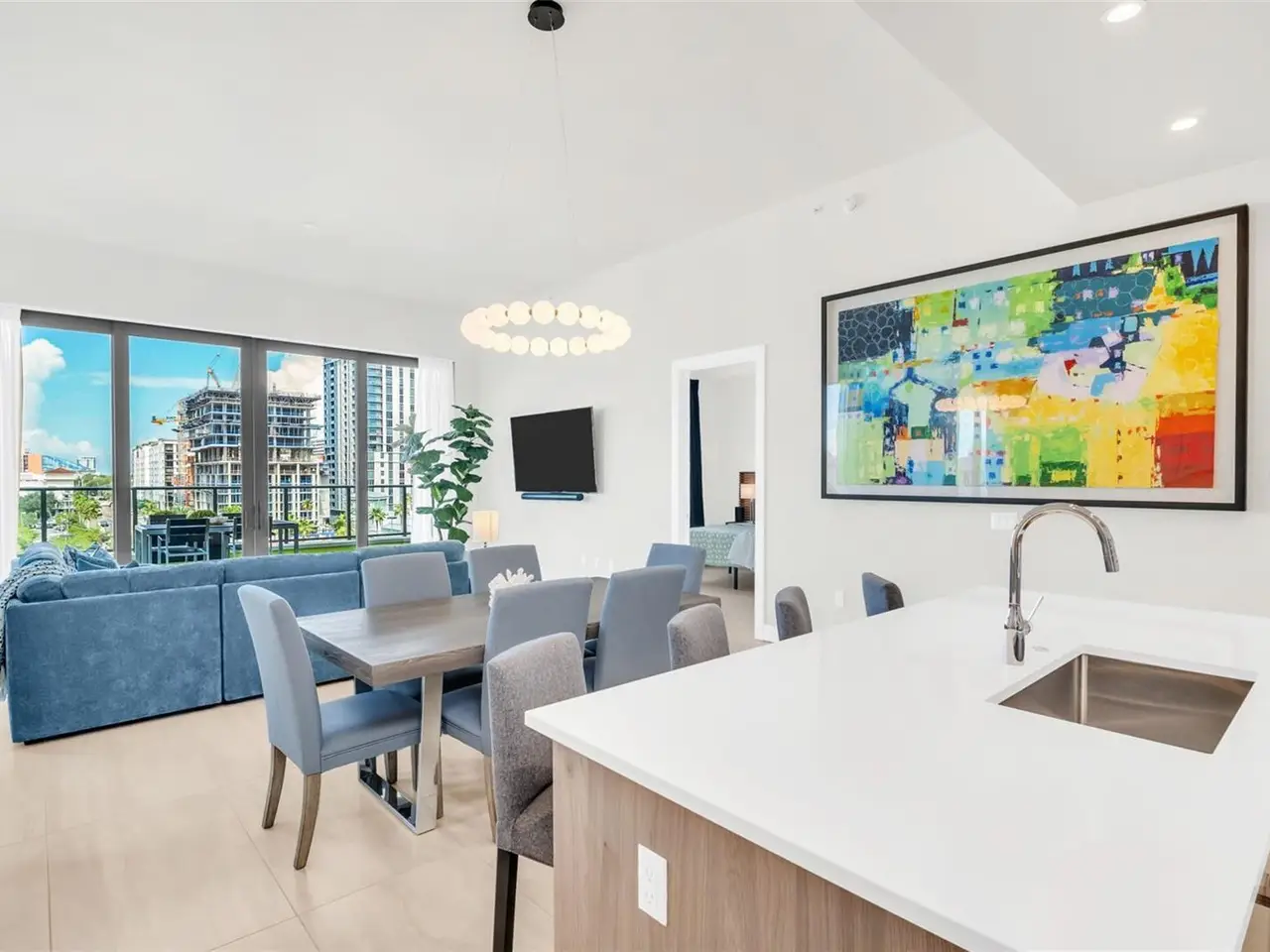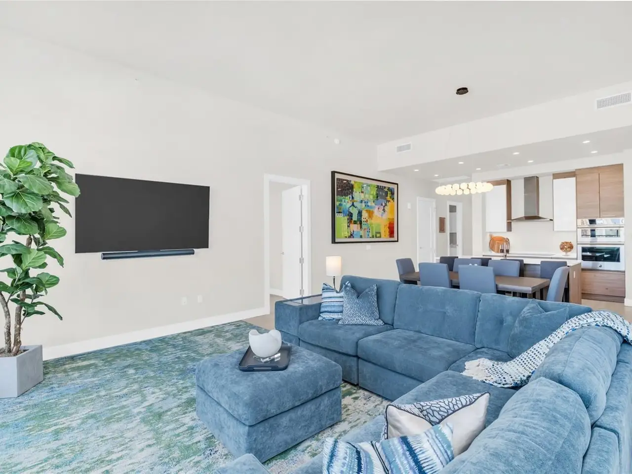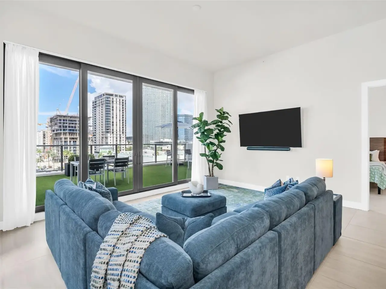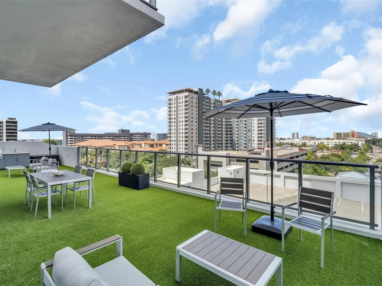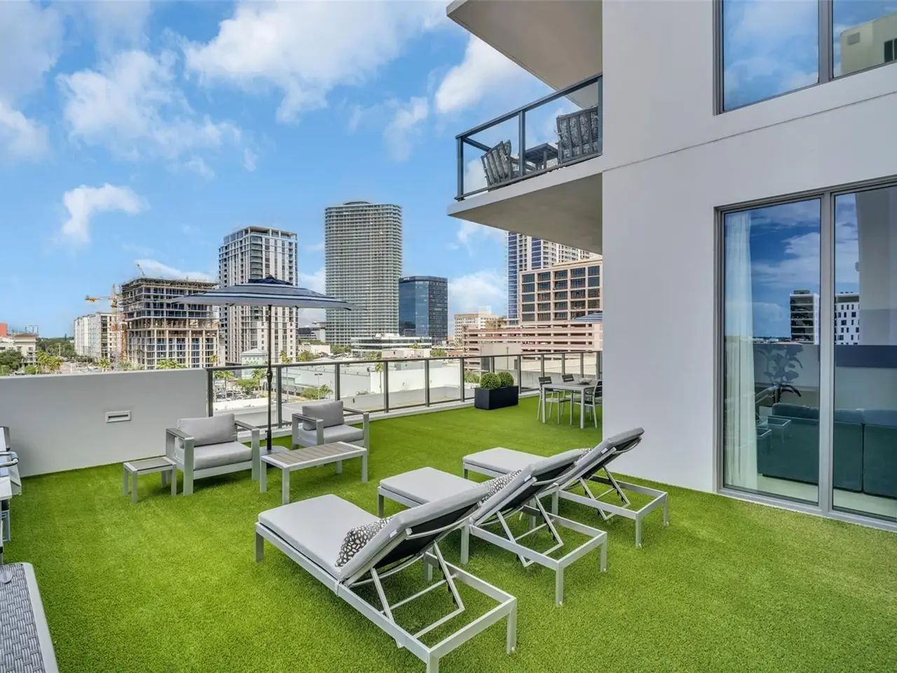 Exceptional Indoor-Outdoor Living at Saltaire: Rarely Available Terrace Residence Experience the pinnacle of luxury living in this rarely available 2-bedroom + den, 2.5-bath residence at Saltaire, where refined interiors blend seamlessly with one of the most impressive outdoor living spaces in downtown St. Petersburg. Spanning 1,667 square feet and offered fully furnished (excluding artwork), this home is one of only three residences located directly on the amenity deck, placing world-class resort-style features just steps from your door. Inside, you'll find 12-foot ceilings, elegant porcelain tile flooring, lighting, and window treatments, creating a sense of modern sophistication throughout. Both bedrooms include built-in headboards and walk-in closets, while the spa-inspired bathrooms offer a serene retreat. A well-appointed laundry room with additional cabinetry adding everyday functionality. The true centerpiece of this home is its expansive 1,158-square-foot private terrace, a rare urban sanctuary designed for both entertaining and relaxation. This outdoor space features lush Astroturf, a fully equipped outdoor kitchen with grill, a hose for easy upkeep, and high-end outdoor furnishings included with the sale. Whether hosting guests or enjoying a quiet evening under the stars, this terrace offers a lifestyle unlike any other in the city. Additional features include two (2) parking spaces and a climate-controlled storage unit for added convenience. As a resident of Saltaire, enjoy access to concierge service, a state-of-the-art fitness center, resort-style pool, and a spectacular amenities terrace with sweeping views of Tampa Bay, marinas and St Pete Pier. Perfectly positioned in the heart of downtown St. Petersburg, this residence offers immediate access to award-winning dining, cultural attractions, waterfront parks, and the vibrant marina district. strict.