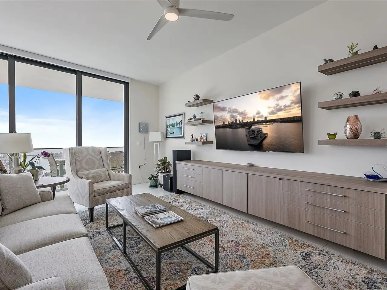 Exquisite Living with Stunning Water views at ONE St. Petersburg Step into a world of unparalleled elegance and modern luxury with this stunning 3-bedroom + den, 3.5-bath corner condo at ONE St. Petersburg, one of the city's most sought-after addresses. Spanning an expansive 2,475 square feet, this one-of-a-kind residence offers one of the largest floor plans available in the building, delivering the perfect combination of space, style, and breathtaking views. From the moment you enter, you'll be captivated by the seamless flow of the open-concept living spaces, enhanced by upgraded electrical receptacles and 24x24 porcelain tile throughout. The chef-inspired kitchen is a true masterpiece, featuring roll-out pantry shelves, sleek stainless steel appliances, a lazy Susan corner cabinetry for easy access, and a custom backsplash. The center island creates an ideal space for gathering and entertaining, while the separate bar area with additional cabinet space and built-in wine fridge elevates the home's sophistication. Throughout the living areas, custom built-ins and floating shelves add a touch of refinement, offering practical yet stylish storage solutions. All windows are equipped with electric blinds, and the master suite features blackout shades for ultimate privacy and comfort. With three private terraces, you'll find the perfect outdoor retreat at every turn. Enjoy direct east-facing views of the tranquil waters from the main living area, soak in stunning west-facing city views from the guest suite and den, or unwind in the master suite, which boasts a private terrace with panoramic vistas of Tampa Bay, the new St. Pete Pier, and the marina. This luxurious condo is not only beautifully designed but also comes with two parking spaces and a climate-controlled storage unit, ensuring your convenience and comfort. As a resident of ONE St. Petersburg, you'll have access to an array of world-class amenities, including a 40,000-square-foot amenities deck featuring a 75-foot lap pool, cabanas, a luxurious spa, outdoor kitchens, fire pits, and abundant seating areas perfect for both relaxation and socializing. Inside, enjoy a state-of-the-art fitness center, a yoga studio, and exceptional social spaces, including a formal social room, game room, and club room all complemented by the seamless concierge service. Located in the heart of downtown St. Petersburg, ONE St. Petersburg offers immediate access to over 40 restaurants, museums, theaters, galleries, shopping, and the vibrant waterfront. Here, you'll discover a lifestyle where sophistication, convenience, and urban luxury come together effortlessly, perfectly encapsulating the essence of modern living in one of Florida's most dynamic cities.
