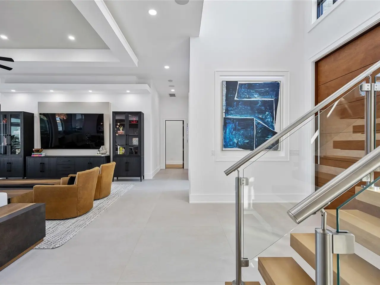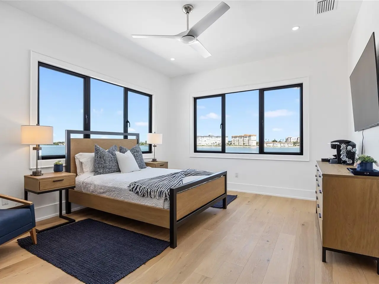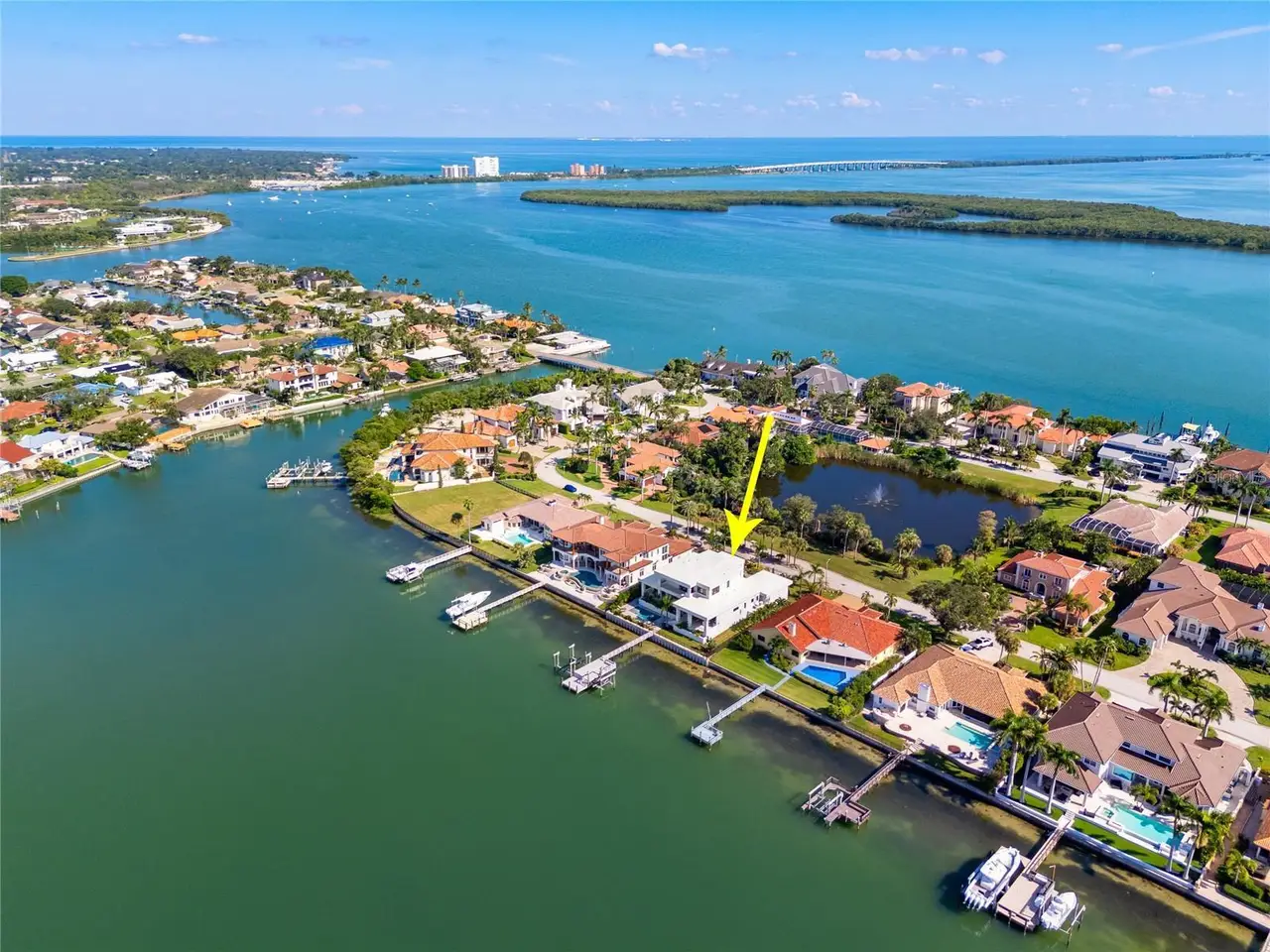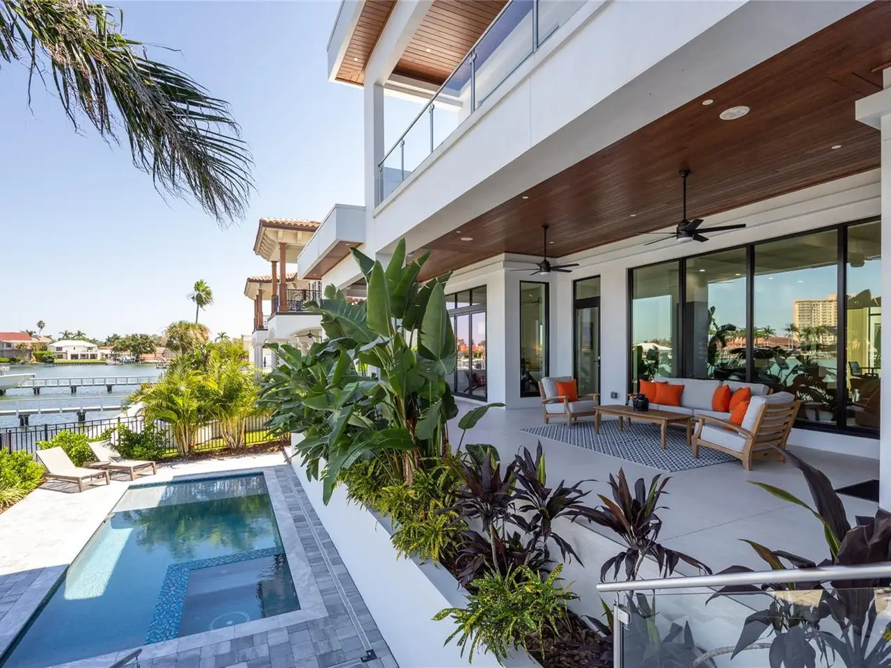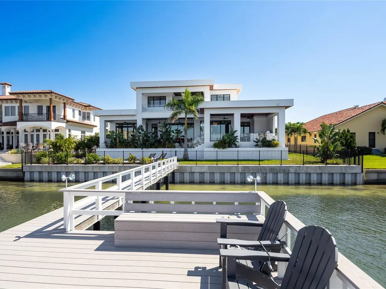 Introducing a Contemporary Waterfront Masterpiece in Tampa Bay. Striking modern architecture and clean, minimalist design come together in this extraordinary custom-built waterfront residence. Completed in 2023, this home makes a bold statement with its commanding curb appeal, soaring 28-foot entry, and dramatic 23-foot foyer. Brilliant natural light, soaring ceilings, and meticulous craftsmanship set the stage for a refined coastal lifestyle. The open-concept floor plan highlights a chef's dream kitchen with custom cabinetry, pearl-white quartz island, Thermador appliances, gas cooking, full-height wine chiller, and built-in espresso machine, complemented by a discreet butler's pantry. Expansive living and dining areas open seamlessly to the water, while the executive-style office and designer guest bath add both elegance and function. The owner's suite is a private sanctuary with breathtaking views, balcony access, dual walk-in closets, and a spa-inspired bath featuring custom vanities, a Jacuzzi soaking tub, and a glass-enclosed multi-head rain shower. Upstairs, two additional en suite bedrooms and a large media room extend to a 330-square-foot covered terrace with commanding views of the bay. Outdoor living is elevated with over 1,200 square feet of covered waterfront terraces, a resort-style pool and spa, outdoor kitchen, and lush landscaping. Waterfront amenities include an updated seawall, large composite dock, kayak/paddleboard launch, boat lift, and mooring capacity for a sizable yacht. Located just ten minutes from downtown St. Petersburg and six minutes from the Gulf beaches, this residence offers an extraordinary blend of serenity and convenience. Nestled within the highly coveted, gated enclave of Bayway Isles, the community is distinguished by its 24/7 guarded security, pristine surroundings, and enduring sense of privacy. This estate is not simply a residence but a testament to vision, artistry, and uncompromising craftsmanship. More than a home - it's a statement of modern luxury and life without compromise. Arrange your private showing today and experience the pinnacle of waterfront living.