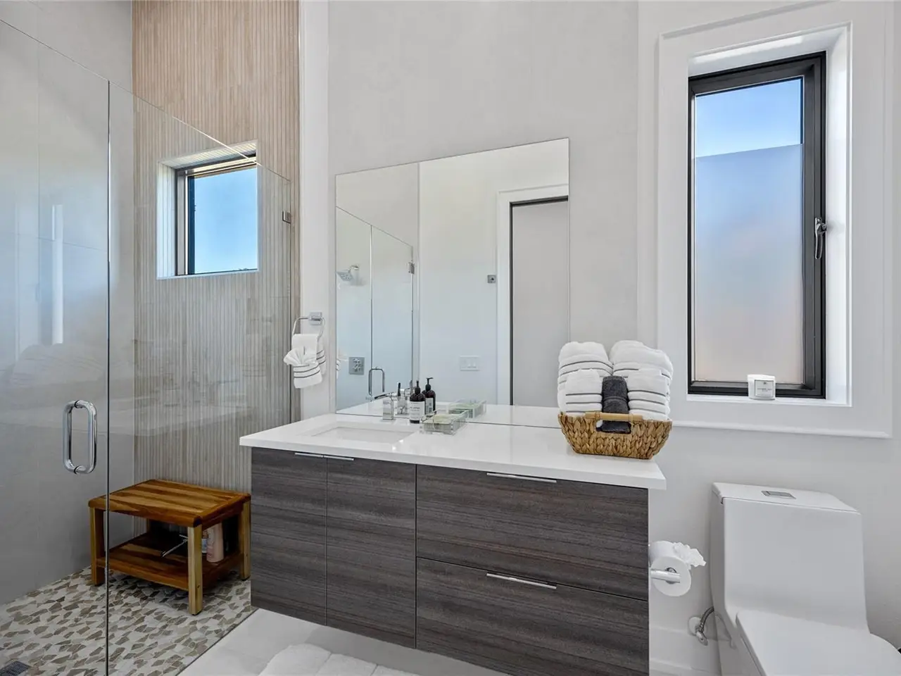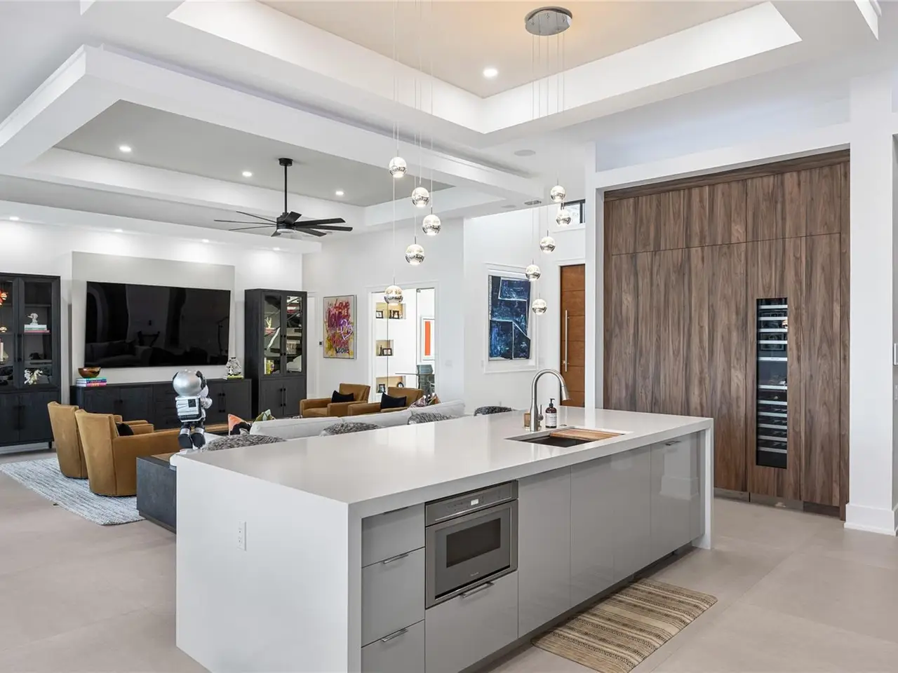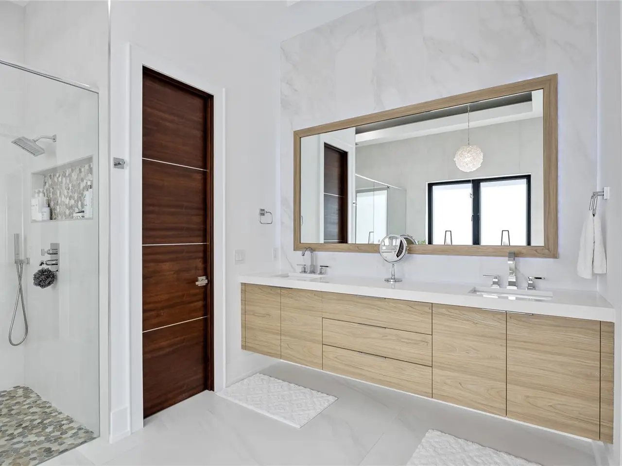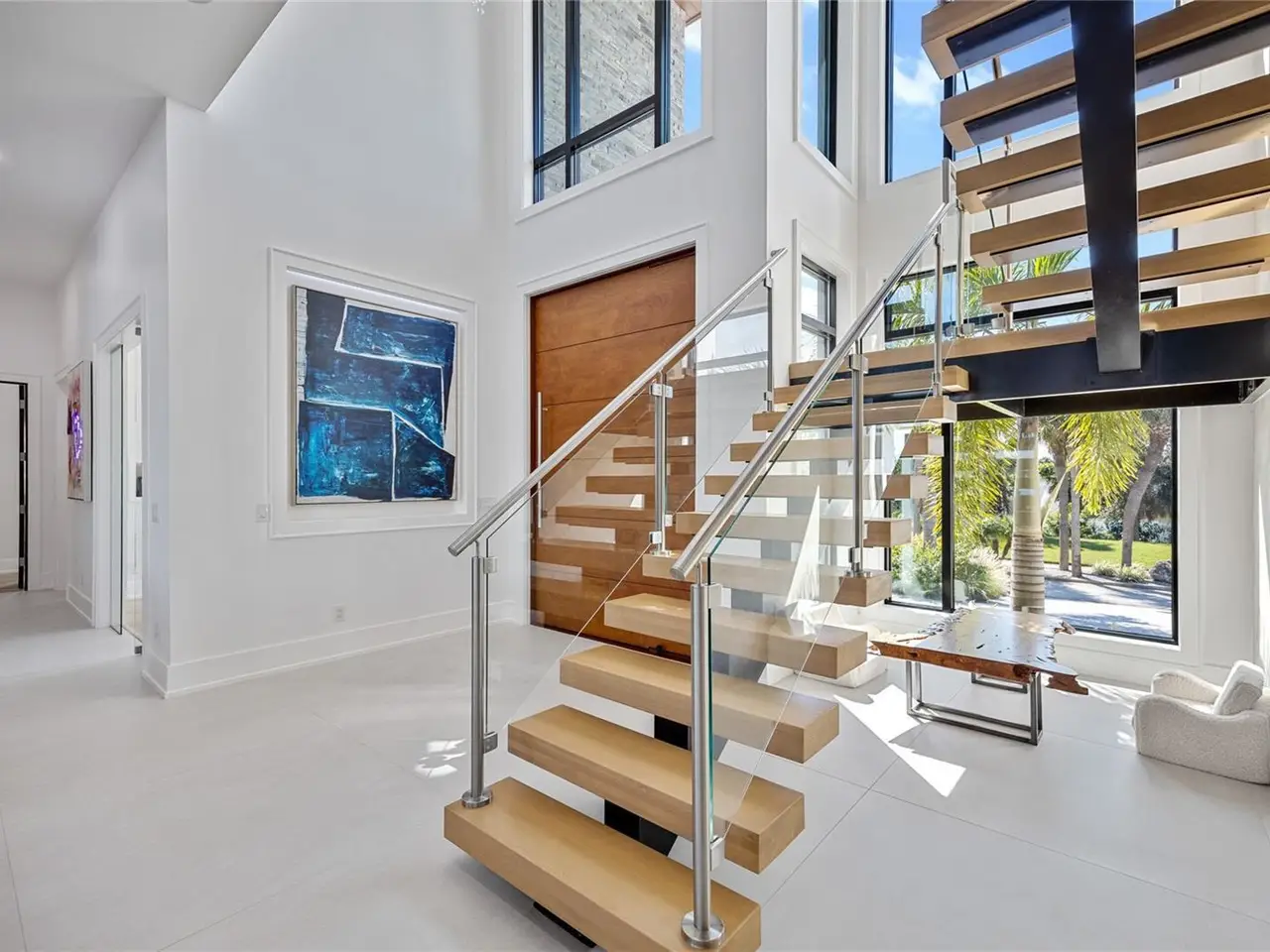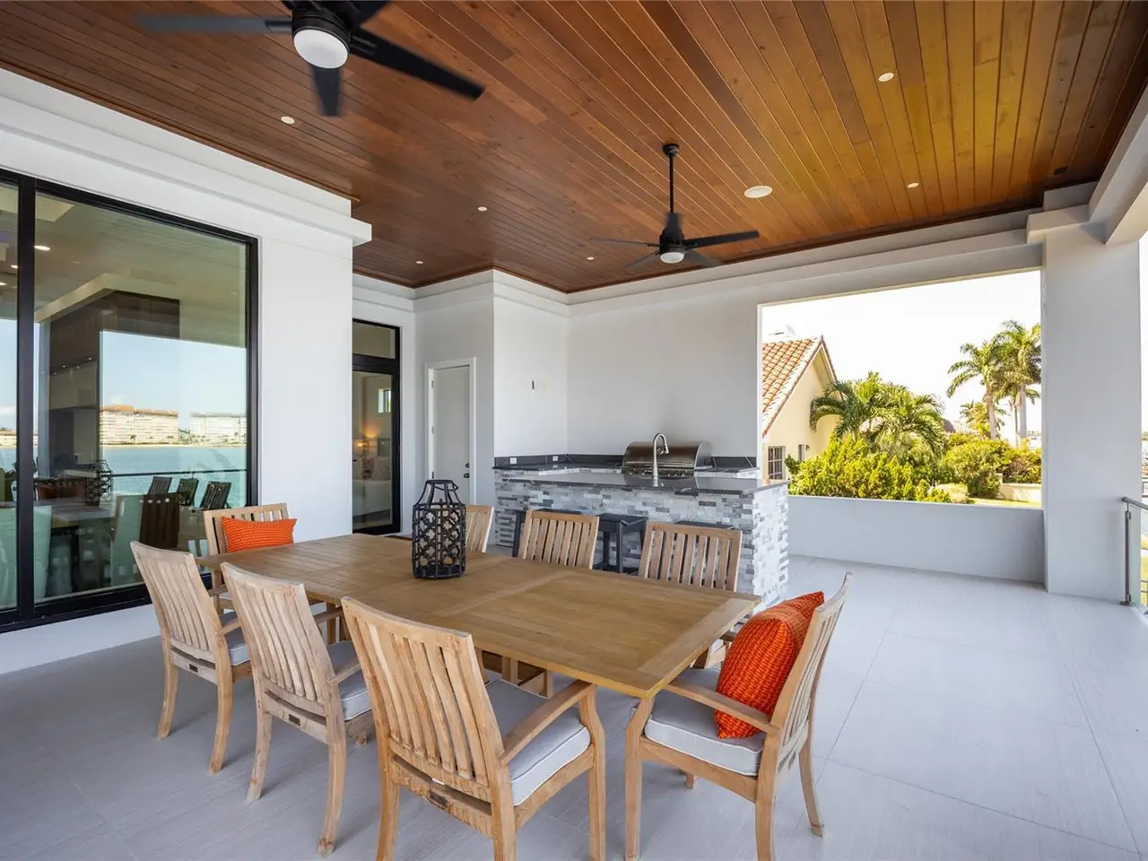 Introducing a Contemporary Waterfront Masterpiece in Tampa Bay. Striking modern architecture and clean, minimalist design come together in this extraordinary custom-built waterfront residence. Completed in 2023, this home makes a bold statement with its commanding curb appeal, soaring 28-foot entry, and dramatic 23-foot foyer. Brilliant natural light, soaring ceilings, and meticulous craftsmanship set the stage for a refined coastal lifestyle. The open-concept floor plan highlights a chef's dream kitchen with custom cabinetry, pearl-white quartz island, Thermador appliances, gas cooking, full-height wine chiller, and built-in espresso machine, complemented by a discreet butler's pantry. Expansive living and dining areas open seamlessly to the water, while the executive-style office and designer guest bath add both elegance and function. The owner's suite is a private sanctuary with breathtaking views, balcony access, dual walk-in closets, and a spa-inspired bath featuring custom vanities, a Jacuzzi soaking tub, and a glass-enclosed multi-head rain shower. Upstairs, two additional en suite bedrooms and a large media room extend to a 330-square-foot covered terrace with commanding views of the bay. Outdoor living is elevated with over 1,200 square feet of covered waterfront terraces, a resort-style pool and spa, outdoor kitchen, and lush landscaping. Waterfront amenities include an updated seawall, large composite dock, kayak/paddleboard launch, boat lift, and mooring capacity for a sizable yacht. Located just ten minutes from downtown St. Petersburg and six minutes from the Gulf beaches, this residence offers an extraordinary blend of serenity and convenience. Nestled within the highly coveted, gated enclave of Bayway Isles, the community is distinguished by its 24/7 guarded security, pristine surroundings, and enduring sense of privacy. This estate is not simply a residence but a testament to vision, artistry, and uncompromising craftsmanship. More than a home - it's a statement of modern luxury and life without compromise. Arrange your private showing today and experience the pinnacle of waterfront living.