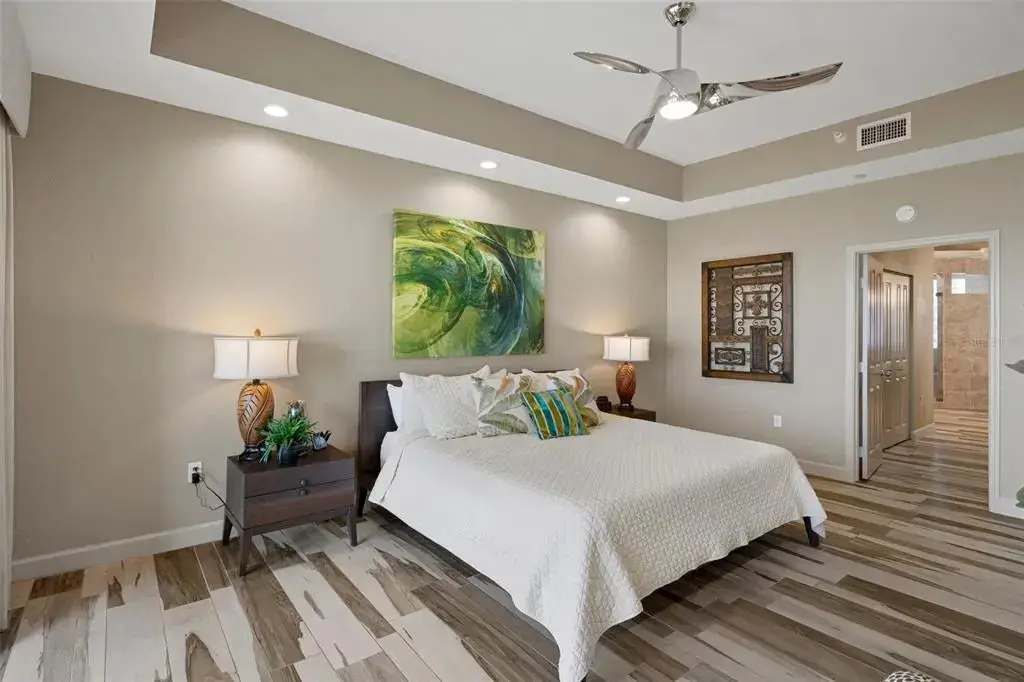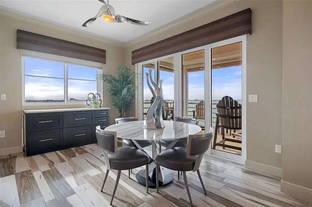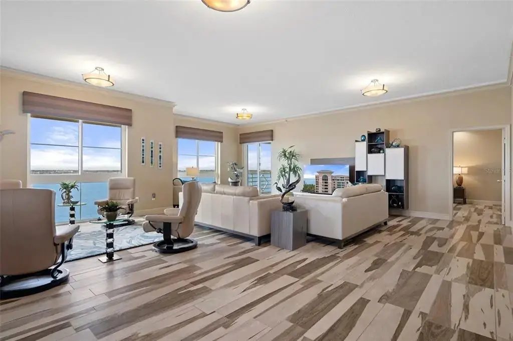 Gorgeous top-floor Bacopa Bay penthouse offering resort-style amenities in a gated community close to both the beaches and downtown St. Petersburg. This stunning residence features 3,028 sq. ft. of beautifully updated waterfront living. Step off the elevator into your private 8th-floor lanai entry and enjoy breathtaking views of Tampa Bay and the iconic Sunshine Skyway Bridge. The home offers 3 bedrooms (one used as a study) and 2.5 bathrooms, with three private balconies extending from the great room, dining area, primary suite, and study/third bedroom—each newly refinished with Gemstone concrete landings (2023). Interior highlights include Italian porcelain tile flooring throughout, custom White Oak cabinetry, and a chef’s kitchen with Quartz countertops, modern LED lighting, a custom dry bar, and high-end LG appliances including a dual ice maker refrigerator. Thoughtful design elements such as hidden built-in storage rooms enhance functionality, while recent upgrades provide comfort and security with hurricane-rated PGT windows and doors, electric hurricane shutters, a new water heater (2024), and two new Performance AC systems (2023) with 10-year warranties. The primary suite offers two walk-in closets with built-ins and a renovated ensuite bath featuring dual showerheads. The property includes two parking spaces—one garage spot near the lobby entry and a second covered carport. Bacopa Bay is an exceptionally well-managed community with a clean milestone report and ongoing investment in improvements. The secured grounds feature two heated pools overlooking Boca Ciega Bay, a spa, two newly resurfaced clay tennis courts, lush landscaping, a fitness room, a club room, remodeled elevator lobbies, a new keyless entry system, and on-site management. 24-hour guard-gated entry with a traffic light for safe, easy access to the Pinellas Bayway, making trips to I-275 or St. Pete Beach speedy. HOA fees include all these amenities plus cable, internet, water, sewer, trash and reserve contributions. Developed by JMC Properties, Bacopa Bay is one of the most desirable communities on the Pinellas Bayway—just minutes from Fort De Soto, Gulf beaches, and a short drive to downtown St. Petersburg’s restaurants, museums, and shops. Tampa International Airport is approximately 30 minutes away. Don’t miss this exceptional move-in-ready opportunity—schedule your private tour today.