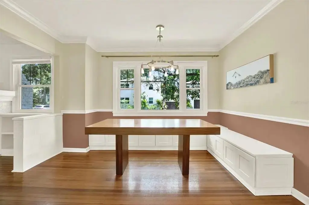 One or more photo(s) has been virtually staged. Discover the perfect blend of historic charm and modern potential in this spacious 1925 bungalow, nestled on a large, shady corner lot in the highly sought-after Old Northeast neighborhood. This captivating home invites you to unleash your creativity, with a beautifully remodeled kitchen already in place, the rest is just waiting for a new buyer to elevate the rest, including the original vintage pink tile and white mosaic marble floor in one of the upstairs bathrooms. Rest assured, all the tough stuff has been done. The essential upgrades have been handled, including new windows, plumbing, and electrical panels. Enjoy the additional space offered on the enclosed front porch and a back office adorned with French doors that open to a quaint, low-maintenance courtyard. Step through the back gate and find yourself just four blocks from the stunning waterfront park and aquatic center on Beach Drive, or head in the opposite direction to explore the downtown proper with all its dining, shopping and nightlife options. This property also includes a one (and a half) garage and parking pad that also offers a charming second story one-bedroom, one-bath old Florida style apartment, perfect for rental opportunities or as a cozy guest retreat for family and friends. Embrace the chance to put your design stamp on this delightful home!