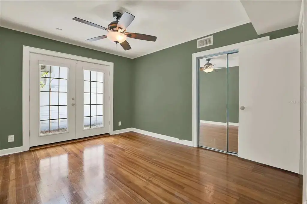 French doors leading to a quaint courtyard