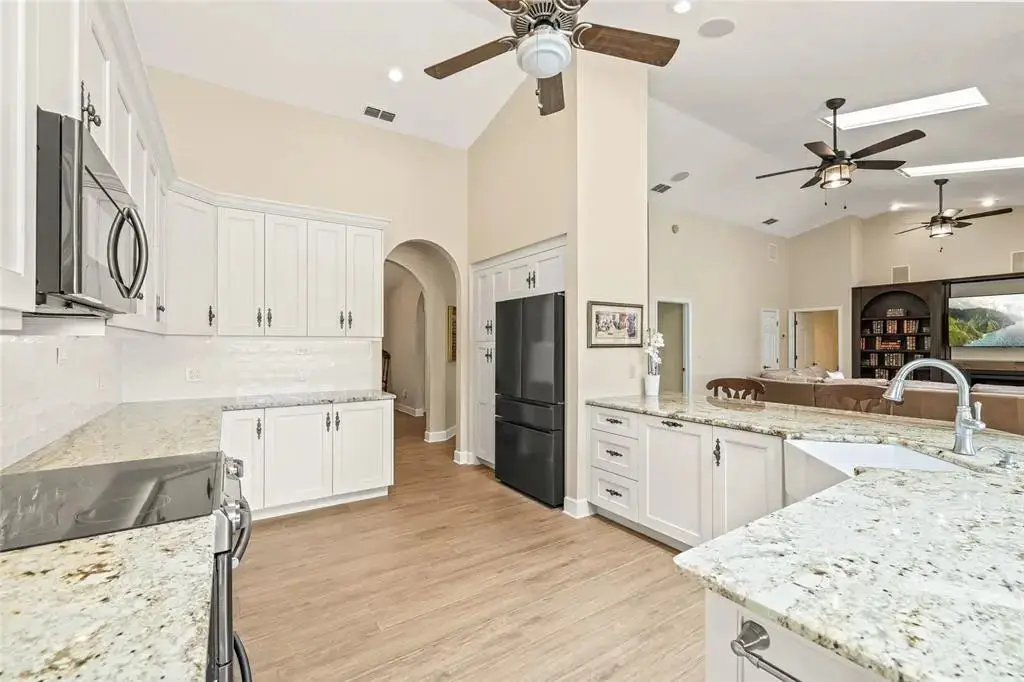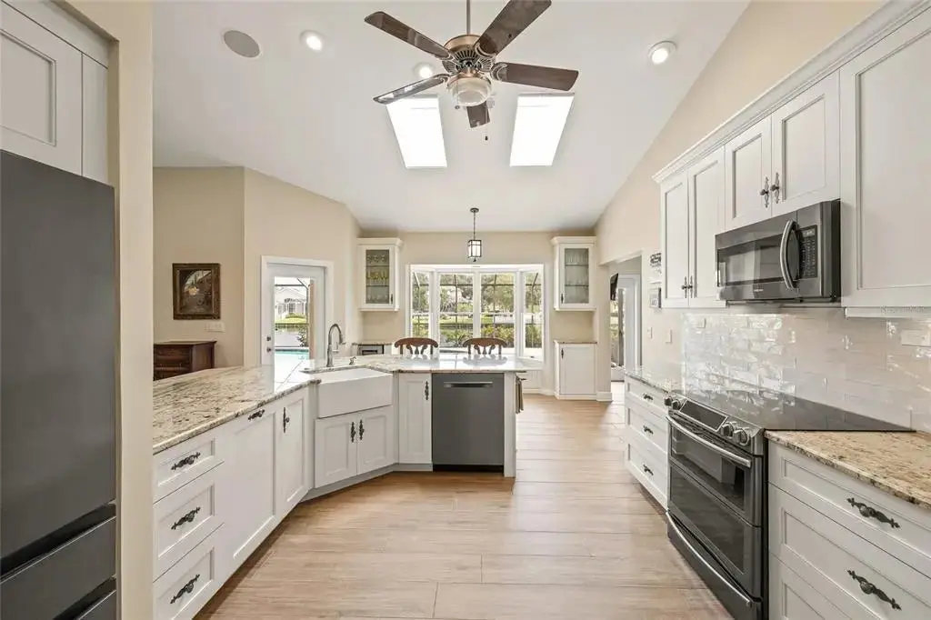 Under contract-accepting backup offers. Discover the perfect blend of elegance, comfort, and Florida charm in this stunning single-level estate, offering sweeping lake views in St. Petersburg’s premiere gated community, Placido Bayou. Located on a quiet cul-de-sac, this grand residence features an open-concept layout with 4 bedrooms, 3 full baths and multiple entertainment rooms all thoughtfully and fully renovated over the past 5 years. Every detail has been upgraded to perfection, including new flooring throughout the entire home, a completely custom kitchen with artisan cabinetry featuring pull-out shelving, porcelain farm sink with the glistening lake as your vantage point and stunning black stainless steel appliances. An entertainer's dream, this home features a billiards room, two interior dry bars with a beverage refrigerator and a wet bar off the pool area with a separate pool bath. The screened pool lanai keeps maintenance to a minimum while you relax by the salt water and heated pool and spa overlooking serene lake views. Along the right side of the home lies a privately-fenced area ideal for play, pets, or a flourishing garden. The primary suite is a true retreat, complete with two walk-in closets, water views and a French door leading to the pool area. The spa-like primary bath offers a gorgeous step-in shower and separate claw-foot tub ideal for soaking away the stress of the day. Adjacent to the primary bathroom is a bedroom currently used as a home office. The opposite side of the home features two additional bedrooms and a shared hall bathroom with an updated dual-sink vanity and step in shower. Entertain effortlessly in the spacious living room with stately bookshelves and an electric fireplace before you call guests to enjoy the dinner party. Mingle and catch up around the oversized kitchen island (with seating for up to 9 guests) or plan the soiree in the adjacent lakeside dining room. This estate isn’t just a home — it’s the lifestyle you have been looking for. Placido Bayou offers the perfect combination of privacy and convenience with a 24-hour guard gate and easy access to downtown St. Petersburg, I-275, dining, nightlife, outdoor recreation, fishing, golfing, tennis, and two nearby airports.