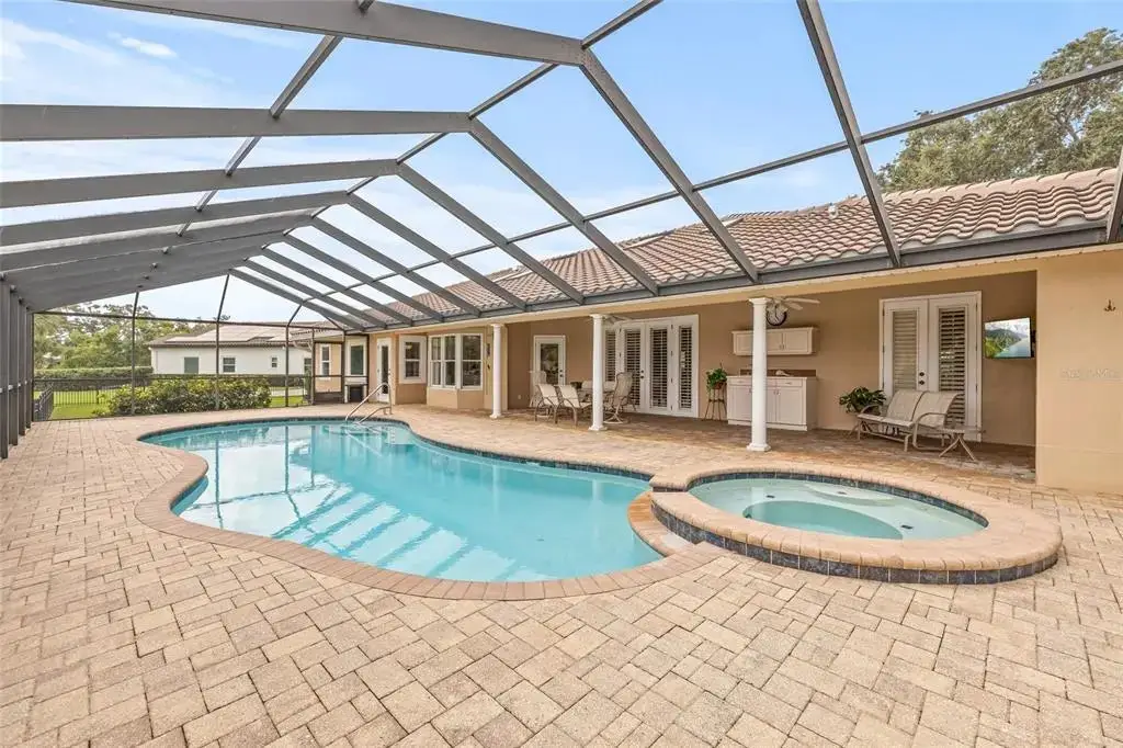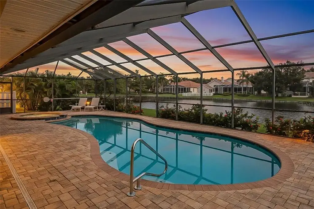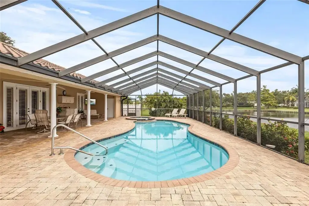 • Screened pool lanai with saltwater pool & spa
