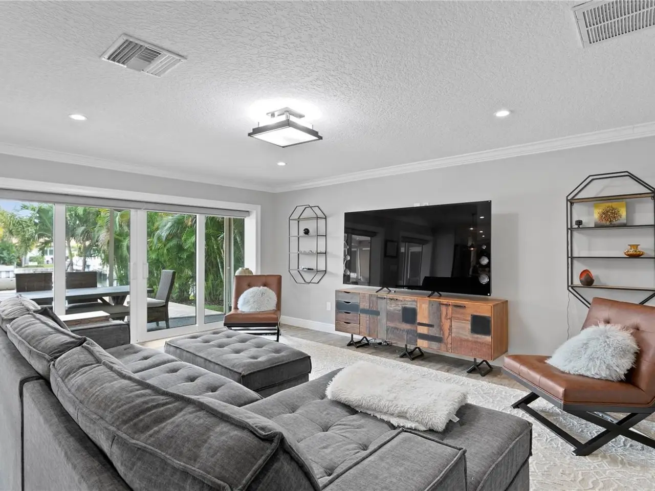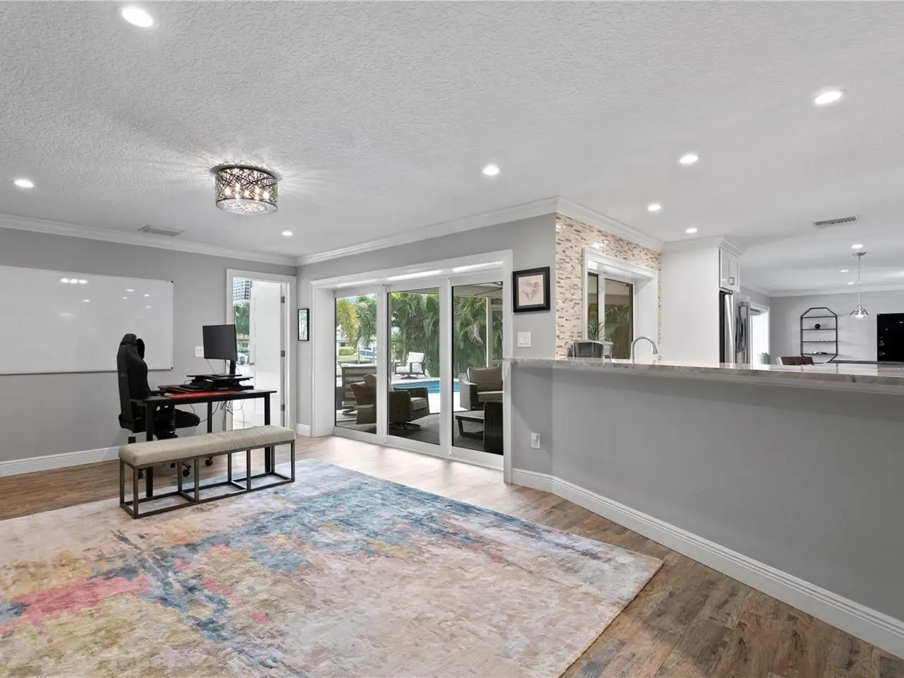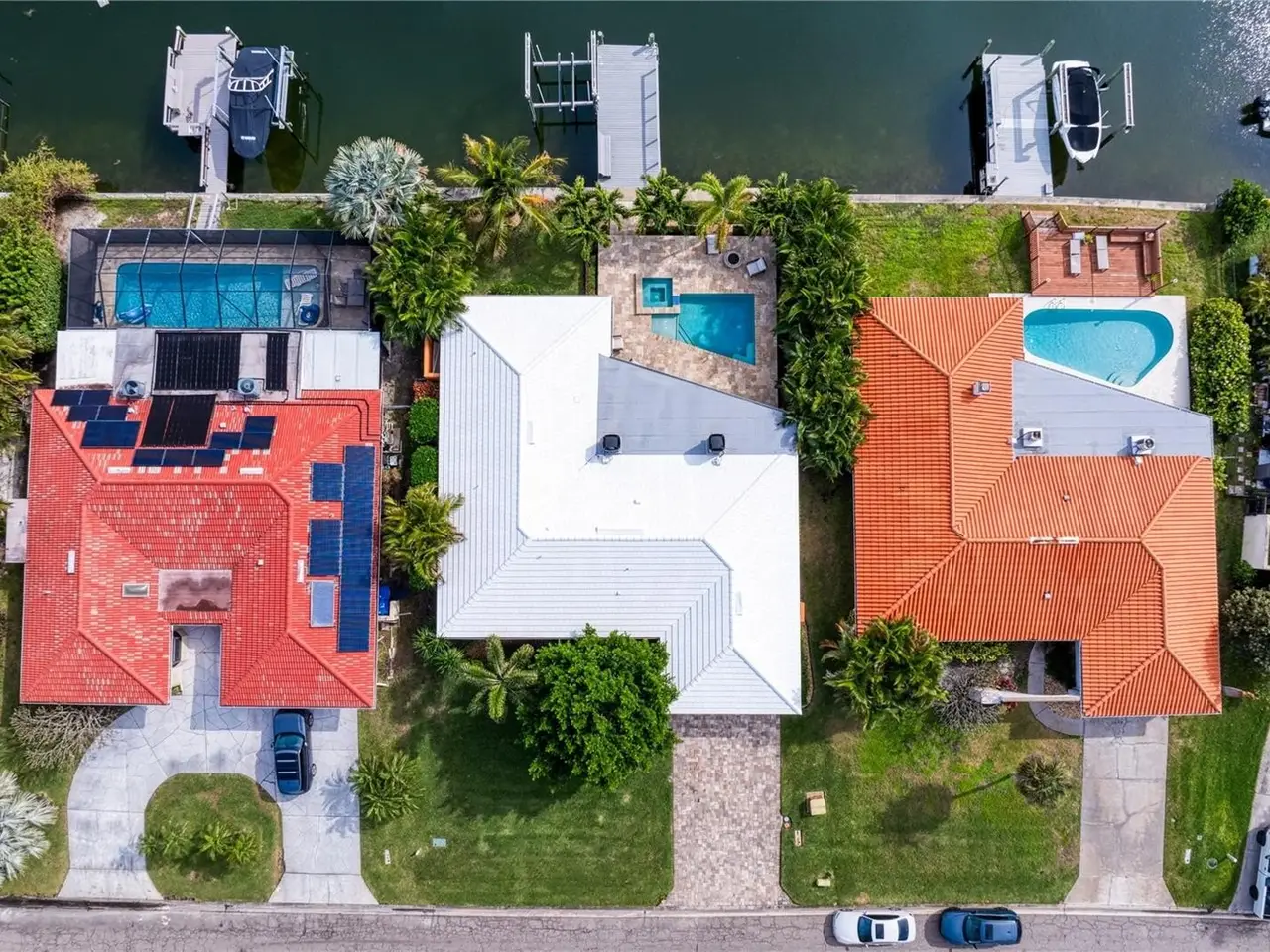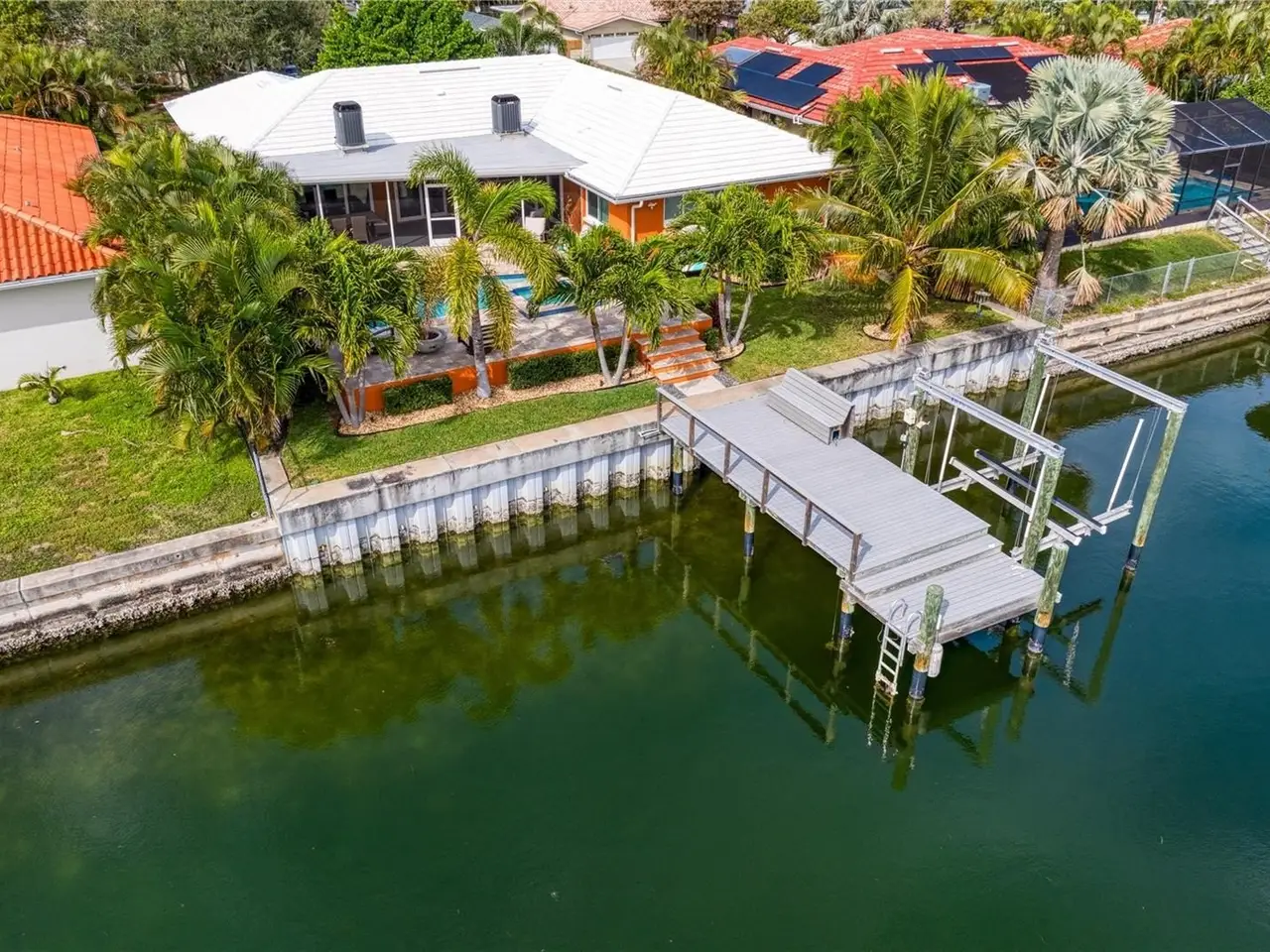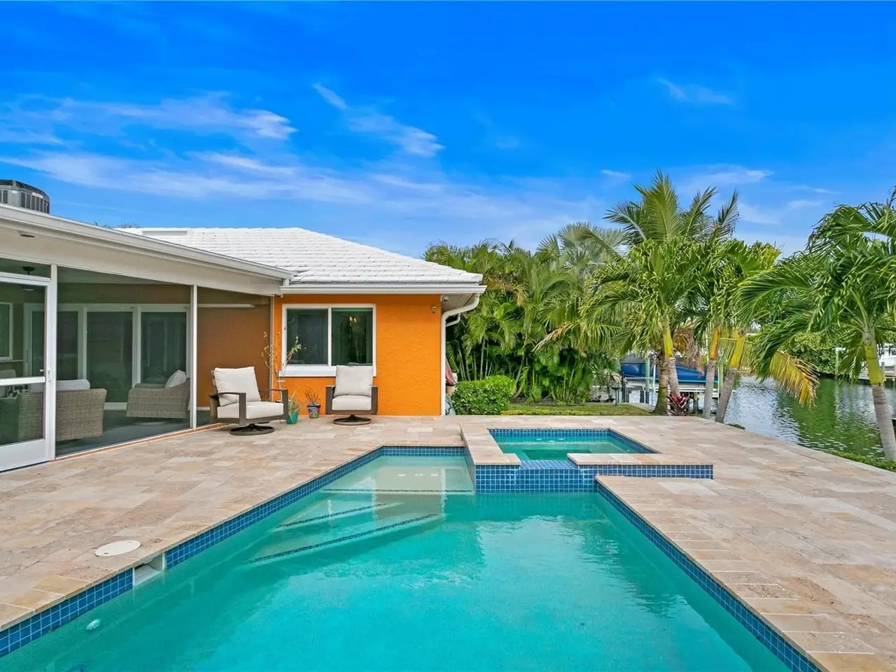 Don’t miss your opportunity to own this stunning home in the highly sought-after waterfront community of Venetian Isles! This beautiful 4-bedroom, 3-bath residence offers the perfect blend of luxury, comfort, and modern coastal living. Step inside to an expansive open-concept layout where the family room, kitchen, and dining area flow seamlessly into a screened lanai and beautifully landscaped backyard—perfect for effortless indoor-outdoor entertaining. The home welcomes you with a spacious foyer or a convenient mudroom entrance from the two-car garage. Throughout the living spaces, wood-look ceramic tile creates a warm, elegant ambiance. At the heart of the home, the chef’s dream kitchen features a large U-shaped eat-in island with marble countertops and backsplash, high-end Café series stainless steel appliances, and stylish custom cabinetry. The interior laundry room is as functional as it is beautiful, complete with Whirlpool Cabrio washer and dryer, built-in cabinetry, utility sink, and marble tile accents. Thoughtfully designed for privacy, the home offers a split bedroom layout. The first guest bedroom enjoys a beautifully appointed full bath, while two additional bedrooms in a separate wing share a spa-like bathroom with Danze fixtures and designer finishes. The private master suite is a true retreat, showcasing a luxurious marble bathroom and a generous walk-in closet. Enjoy true Florida living with hurricane-rated sliding glass doors that fully pocket back, connecting your main living spaces to the screened lanai and creating a seamless indoor-outdoor experience. Whether you're relaxing by the heated saltwater pool and spa, or enjoying tranquil canal views from the cozy firepit corner, this backyard oasis has it all. Boaters will appreciate the composite dock with electric, water, a 10,000 lb. boat lift, and updated seawall (2017). The lush landscaping provides ample privacy and is enhanced by elegant outdoor lighting for evening ambiance. Best of all, this home has experienced no water damage from any hurricanes—a testament to its strong construction and elevated location. Homes like this in Venetian Isles don’t come around often—schedule your private showing today!