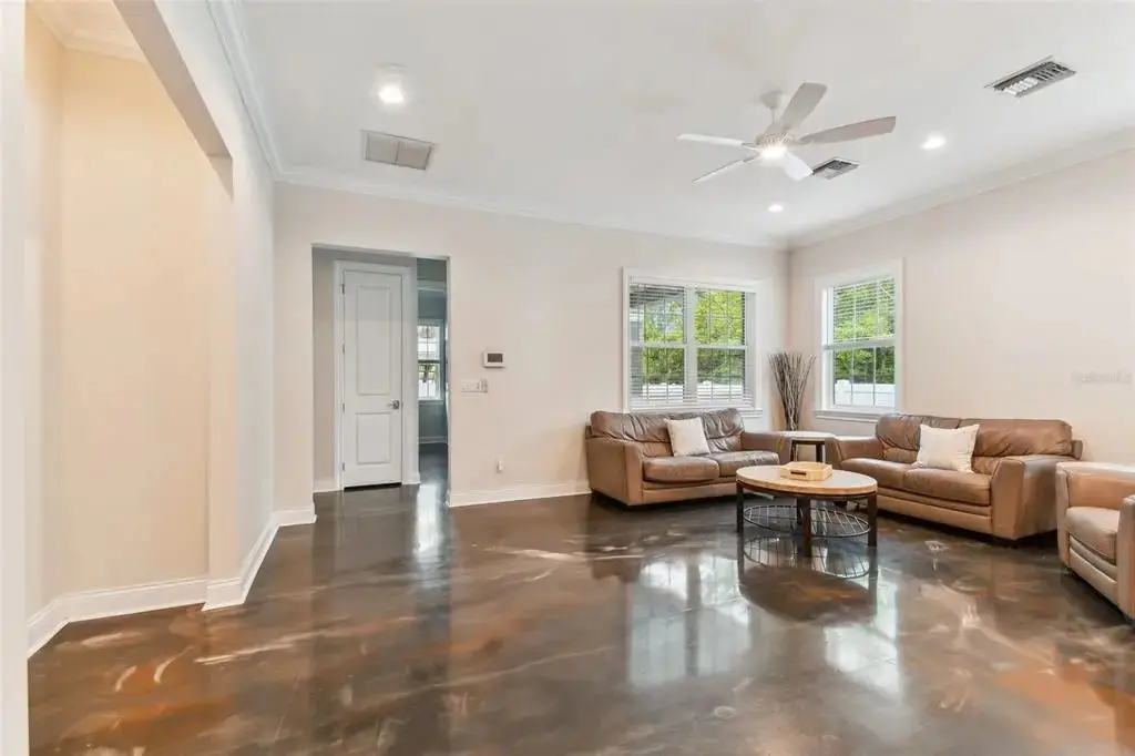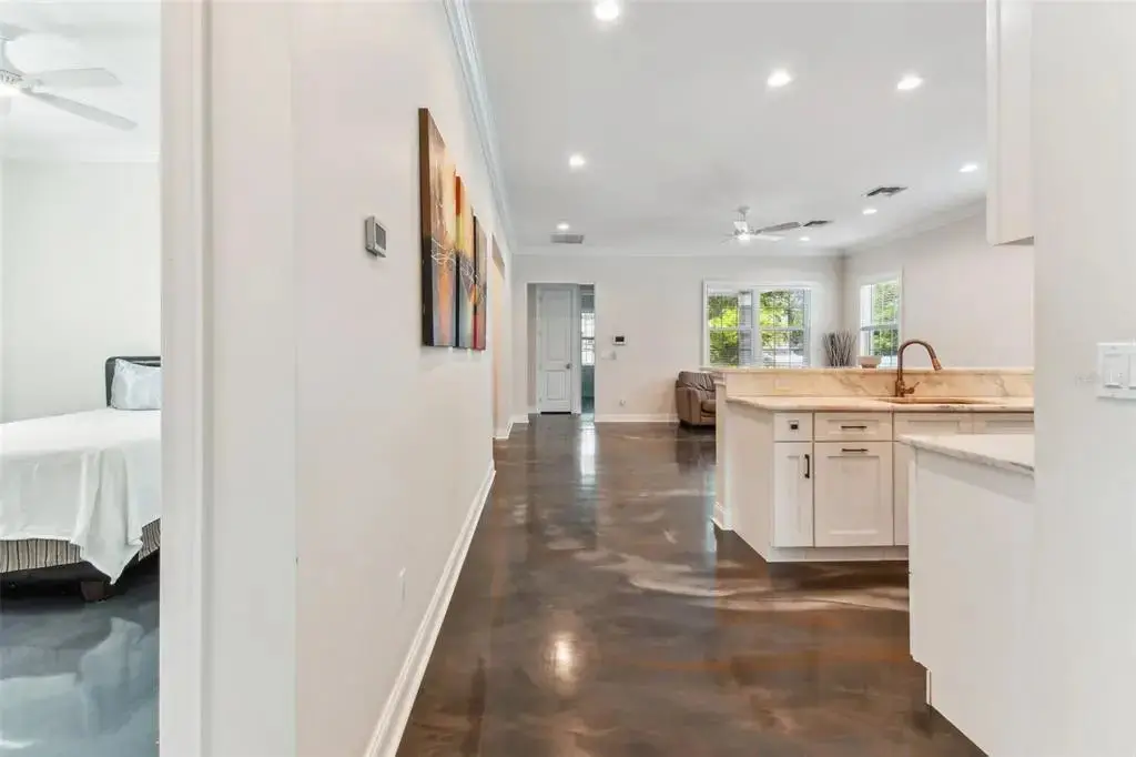 Nestled in the vibrant heart of the Grand Central and Warehouse Districts, this stunning 2018 Tiger Construction home offers a spacious 1,944 sq. ft. featuring 3 bedrooms, 2 bathrooms, and a 2-car garage. Included is a 441 sq. ft. income-producing studio apartment on a generous 50x127 lot. Natural light floods through the glass front entry door, illuminating the living area with its custom trim details and soaring 10-foot ceilings—creating an open, bright, and welcoming space. The open-concept floor plan highlights a beautiful kitchen island topped with Quartz countertops that gracefully separates the kitchen and living areas. Artisan epoxy floors, classic shaker cabinetry, and stainless steel appliances combine to create a kitchen that’s both elegant and highly functional. The formal dining room is complemented by an attached Butler’s Pantry/Coffee Bar, perfect for entertaining. The primary ensuite serves as a private owner’s retreat with ample space, multiple walk-in closets, a walk-in shower with floor-to-ceiling tile, and a double vanity. All three bedrooms feature generously sized closets for added convenience. Additional features include PGT impact-rated windows and doors throughout the home, offering enhanced energy efficiency, security, and peace of mind. A large laundry room equipped with a sink and washer/dryer adds to the home’s everyday convenience. The property is also equipped with a Vivint Alarm System and smart home features. The separate studio apartment, last rented at $1,400/month, includes its own full kitchen, bathroom, and laundry with washer and dryer—ideal for generating income or hosting guests. Within easy reach of an eclectic mix of local hotspots—art galleries, shops, restaurants, and bars—this home places you right in the center of the action. Contact me today to schedule your personal tour of this exceptional property.