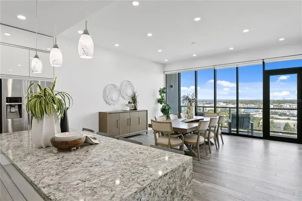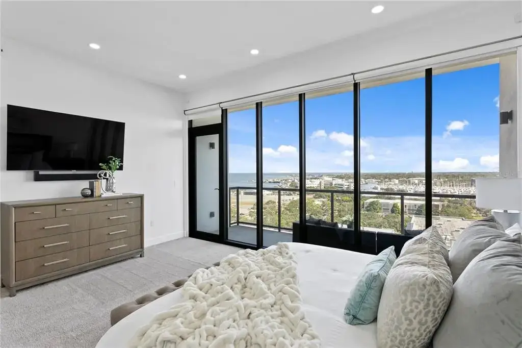 Experience the pinnacle of luxury living in this one-of-a-kind penthouse at The Salvador, a prestigious, Green Certified boutique building with just 74 exclusive residences, ideally situated in the vibrant heart of downtown St. Petersburg. This extraordinary home offers uninterrupted, panoramic views of South Tampa Bay, the Sunshine Skyway Bridge, Albert Whitted Airport, and a yacht-filled marina—delivering an ever-changing waterfront backdrop that defines true coastal elegance. From sunrise to sunset, this custom-designed residence is bathed in natural light through wall-to-wall, floor-to-ceiling windows that span every room, including all bedrooms, creating a seamless connection between indoors and out. With 2,537 square feet of sophisticated living space, this penthouse blends timeless style with everyday comfort. Upon entering, you’re welcomed into a dramatic foyer that leads to a sunlit great room where water views take center stage. Designed with both form and function in mind, the layout offers privacy between the main entertaining areas. The kitchen and formal dining room are thoughtfully separated from the great room by an elegant partition wall, creating a sense of intimacy while maintaining a natural flow throughout the home. The kitchen itself is a dream for culinary enthusiasts, featuring gas cooking, premium stainless steel appliances, ceiling-height custom cabinetry, and generous counter space. A separate catering prep area adds convenience for those who love to entertain. The private primary suite offers a retreat-like atmosphere with breathtaking bay views, a spacious custom walk-in closet, and a spa-inspired en-suite bath complete with a luxurious jetted soaking tub, a large walk-in shower, dual vanities, and instant hot water. Two well appointed guest bedrooms each include their own full bathrooms, offering comfort and privacy for family or visitors. Additional flexible spaces include a richly styled library (which can be converted into a fourth bedroom), a private home office or den, and a laundry/utility room with built-in smart home features for added efficiency and ease. Refined finishes throughout elevate the experience—10'+ ceilings, designer lighting, beautifully crafted tile flooring, extensive custom cabinetry, and two gas tankless water heaters for on demand hot water. The residence also includes two assigned parking spaces within the secured, access-controlled garage. Residents of The Salvador enjoy an elevated lifestyle with resort-style amenities on the third floor amenity deck, including a heated saltwater pool and spa, a modern fitness center, stylish clubhouse, outdoor grilling station, cozy fire pit, sculpture garden, and a dog park with wash station. The building offers secured access and a peaceful, private environment while being just steps from everything downtown St. Pete has to offer—award-winning restaurants, waterfront parks, vibrant art galleries, world-class museums, marinas, the St. Pete Pier, and lively markets and events. This is not just a home—it’s a statement in luxury, design, and location. Discover the best of city and bayfront living in one of downtown St. Pete’s most sought-after residences. If you want an alternative to “partition wall,” I can offer “architectural divider” or “tasteful dividing wall” as well!