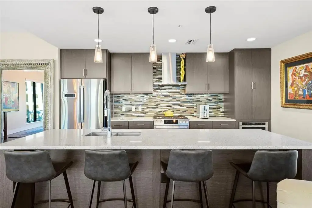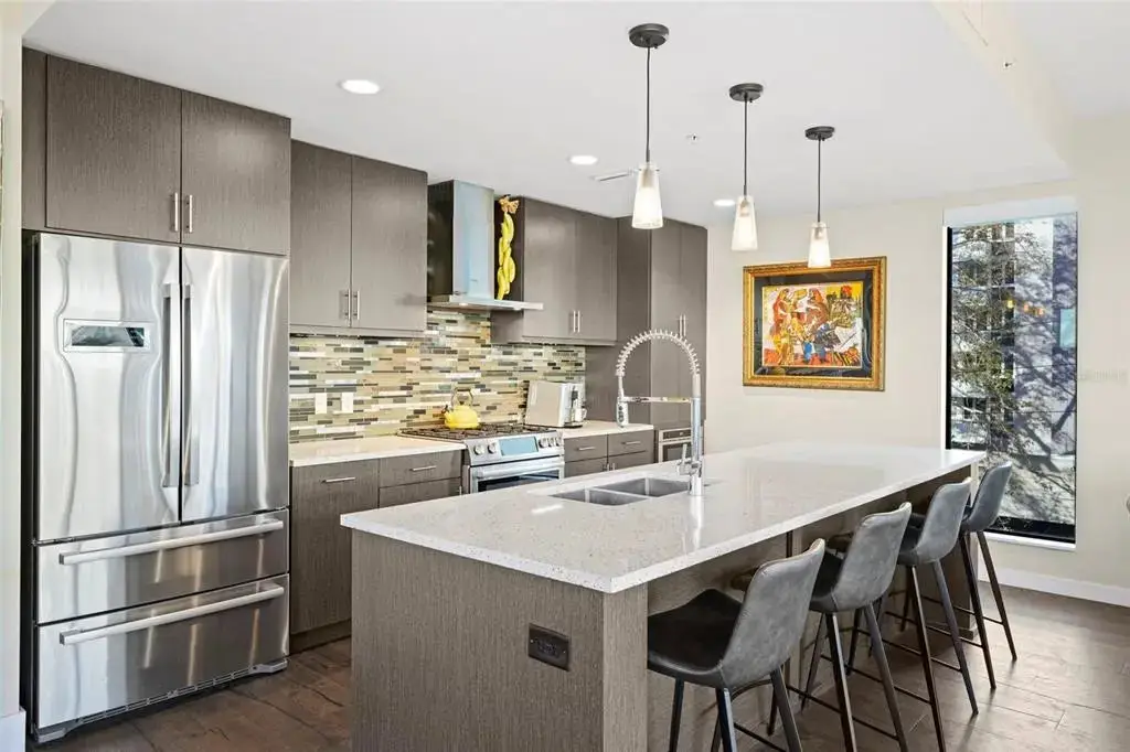 Contemporary kitchen with Quartz countertops and Bosch appliances