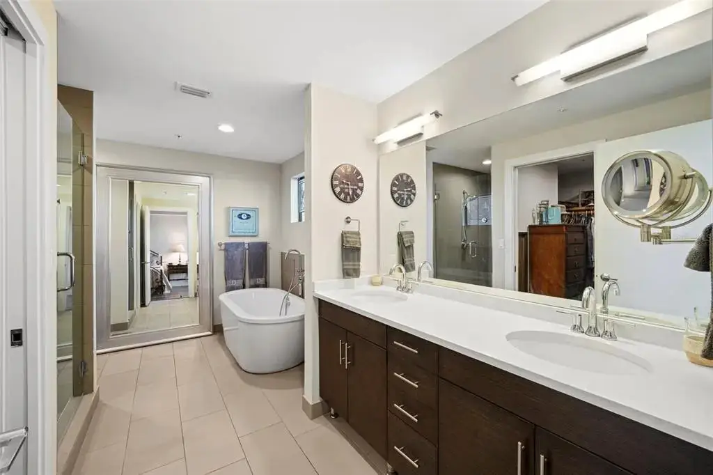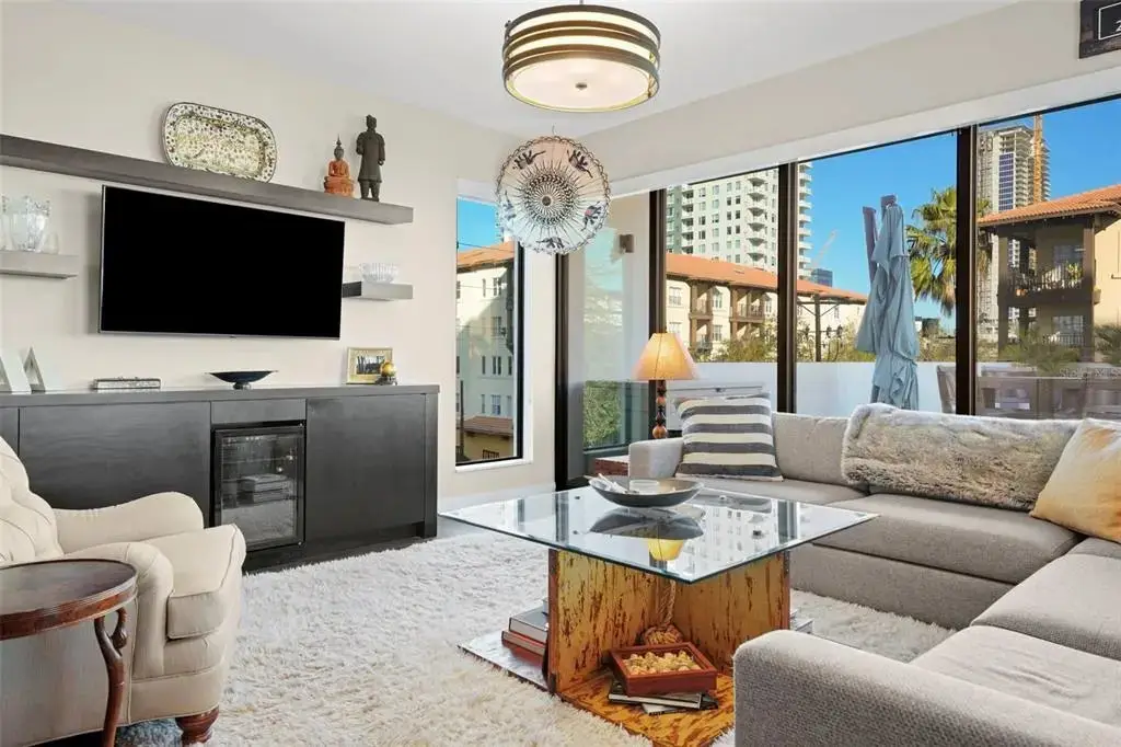 Floor-to-ceiling windows overlooking downtown and Tampa Bay