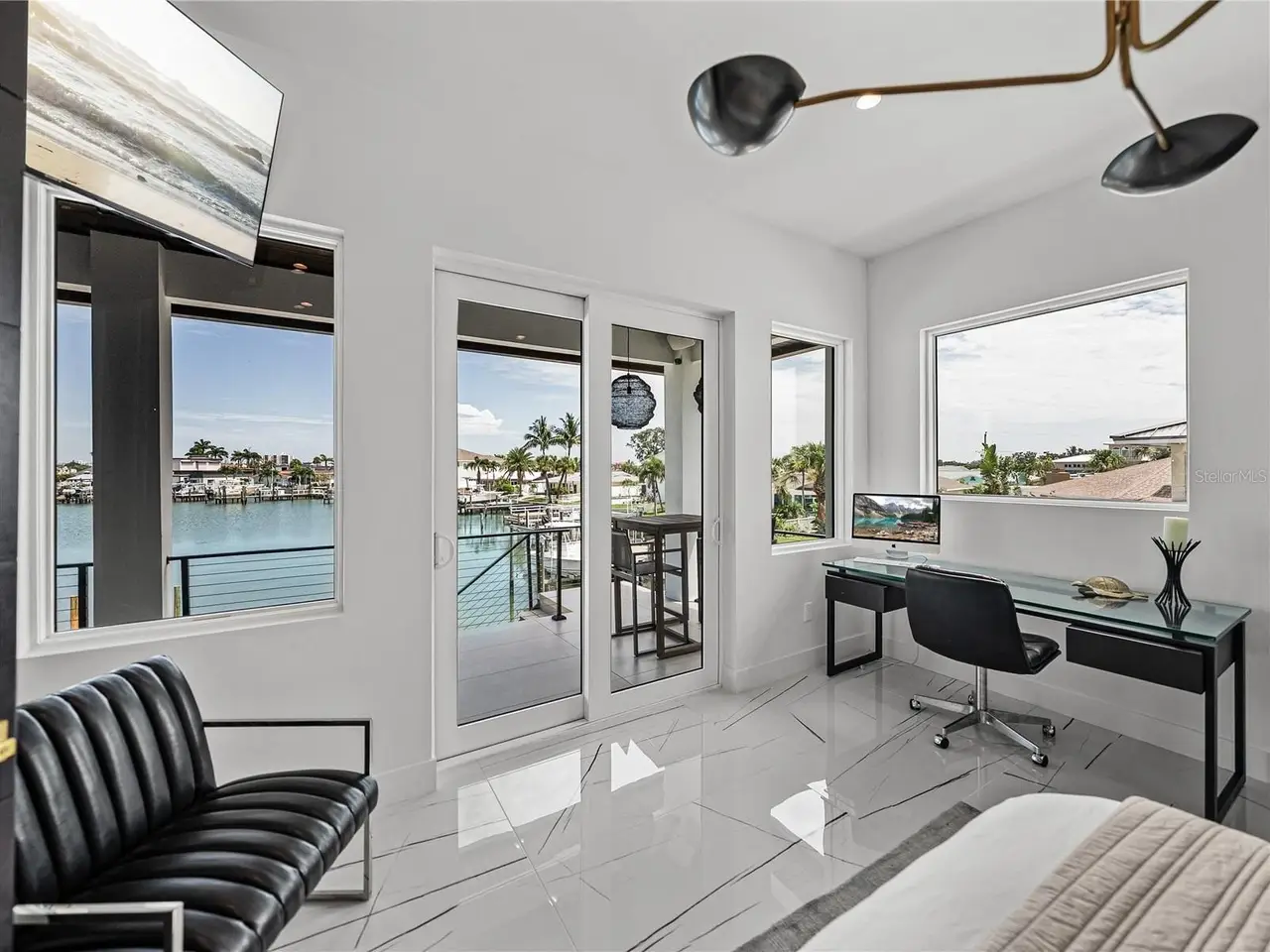• Primary bedroom with water views and custom closet