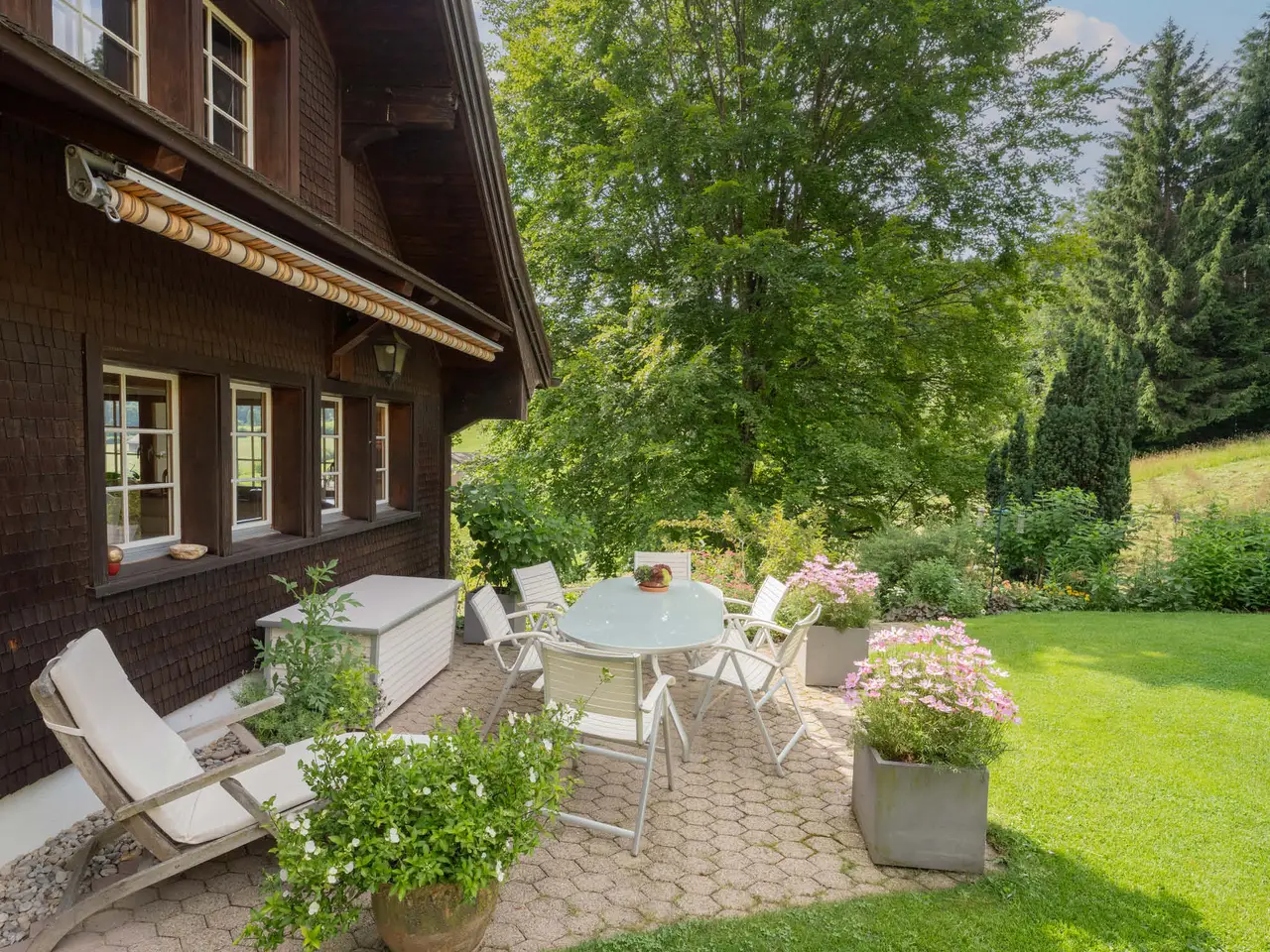 Nestled in the gentle rolling hills of St. Peterzell, the charming residence “Sonnental” offers a spacious floor plan of approximately 386.57 m² and features 11 rooms, combining generous living space with historic character. The peaceful rural setting provides pure relaxation with plenty of room for family, nature, and creative uses. The generous garden, sunny terrace, and barn create a unique ambiance for those who value space and individuality. Thanks to a separate entrance, the additional office is ideal for working from home or quiet creative pursuits. The living area’s fireplace adds warmth and coziness on cooler days. Despite its idyllic location, public transport is easily accessible. Perfect for families, entrepreneurs, or anyone seeking a distinctive home in a natural setting – whether as a primary residence or a second home.