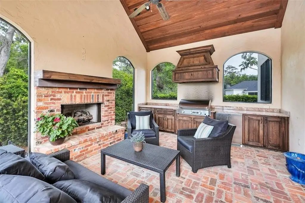 Come see this custom house located in the highly desirable Sea Island neighborhood community of Hamilton Landing.  Built by respected local builder Mike Carroll for his personal residence, this home has all the custom features you need.  It sits on 1/2 AC with pocket marsh views and no neighbors on one side. This house features 5 bedrooms, 4.5 bath with reclaimed hardwood floors from a tobacco barn in Vidalia, GA.  Located on the main floor is the primary bedroom, two bedrooms with a shared bath, Laundry room, and the Office.  Upstairs there are two additional bedrooms and 2.5 baths with a large game room/bonus room.  In the back there are two screened-in  porches one with gas fireplace, grill and mini fridge overlooking the heated pool  & spa.  The kitchen features travertine floors, DCS Fisher gas stove, two dishwashers, and icemaker and a newer stainless steel refrigerator with touchscreen feature.  Hamilton Landing is easy off & on the Island location with a walking trail to Frederica Academy. In the back of the neighborhood there is a community park and dock for kayak & paddle board launch.