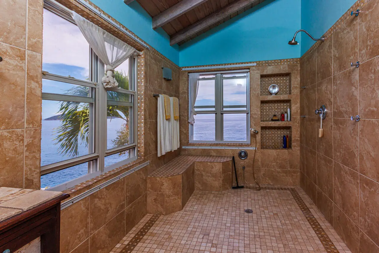 This cliffside masterpiece is where nature's raw power meets soothing, intentional design--an ideal setting for transformation, togetherness, and unforgettable island living. Ideal for retreats or a family compound. Carved into the edge of the island with waves thundering below, this 11-bedroom estate offers panoramic views of turquoise waters merging with the infinity-edge pool that practically pours into the sea. A dramatic open-air kitchen, dining, and lounge area offers cooling trade winds and sun-dappled views - hurricane impact sliders too. Three pods -Main Villa, Vision, and Treehouse - provide ideal get-away space and/or rental income. A yoga deck, a meditation platform, several patios and an expansive pool deck for entertaining help to make this a unique USVI home.1.Hurricane impact sliders in Main Villa, Vision, Treehouse; combination of metal and wooden shutters elsewhere