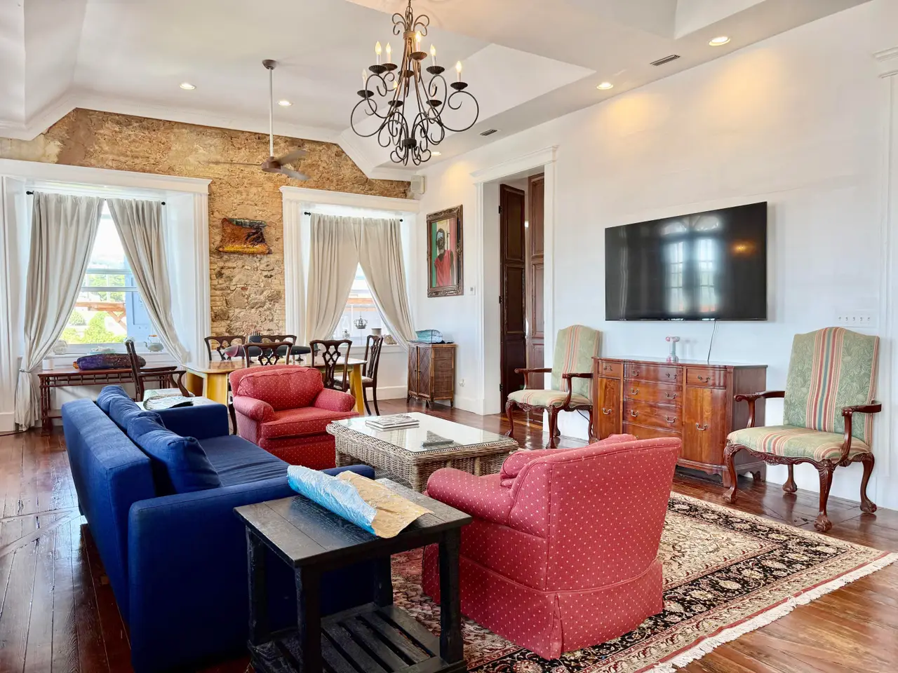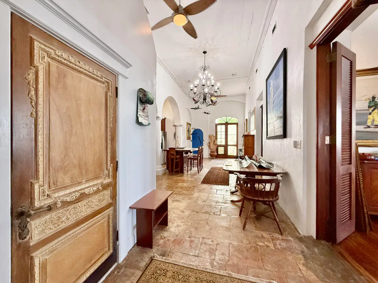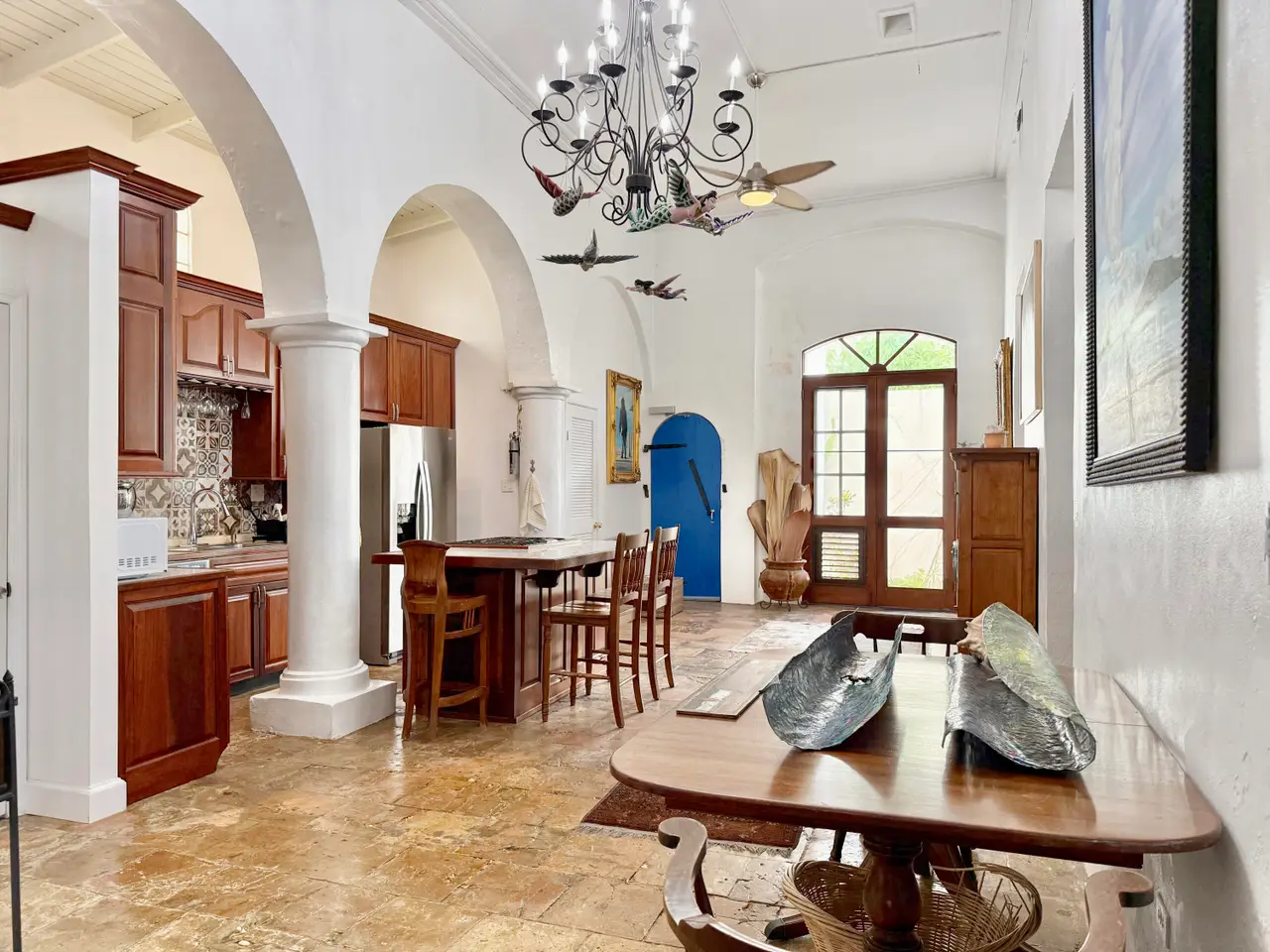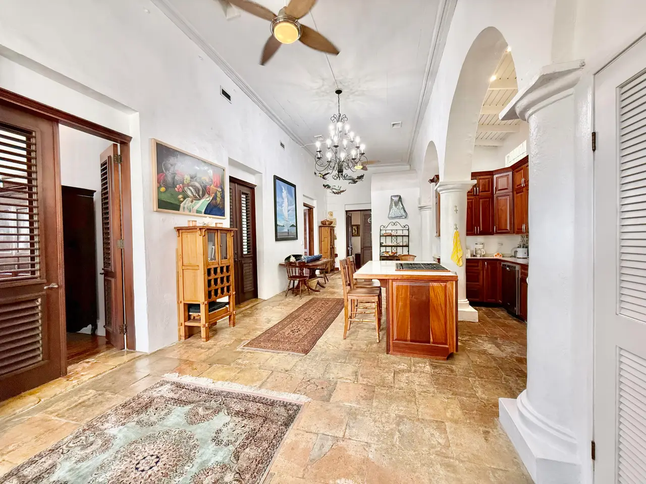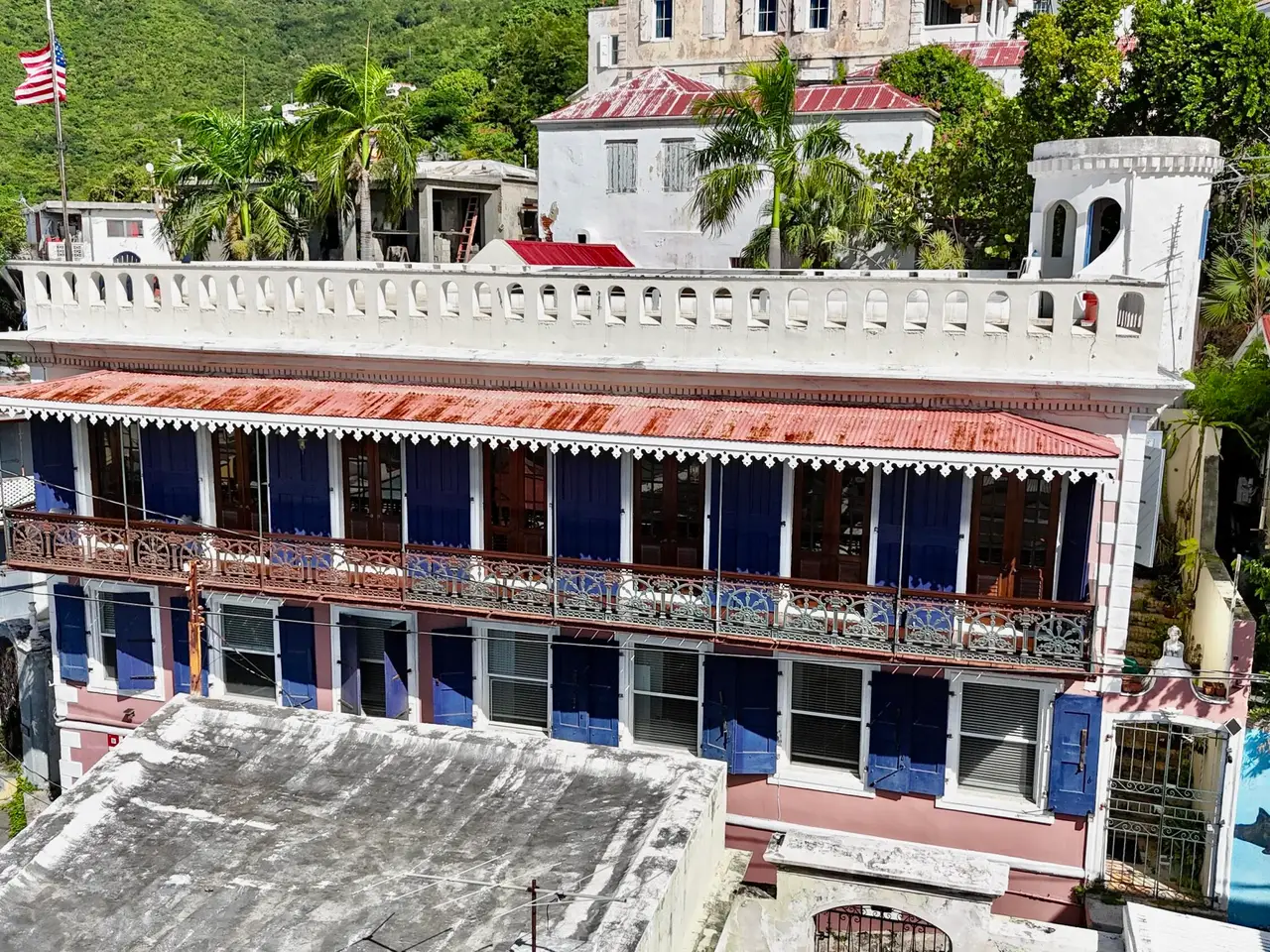 Experience a rare opportunity to own a distinguished piece of Virgin Islands heritage. Originally built in the 1700s, with a recorded deed dating to 1804, this architectural masterpiece seamlessly blends historic grandeur with modern sophistication. Soaring vaulted ceilings, graceful archways, mahogany floors, and intricate ironwork evoke timeless elegance, while solar power, air conditioning, and Starlink internet ensure contemporary comfort. Main residence features three bedrooms, two baths, an entertainment lounge, and a private rooftop terrace. Four beautifully appointed rental suites offer income potential. Perfectly situated in Charlotte Amalie near fine dining, boutiques, and ferries, this storied estate once owned by notable figures--embodies the enduring legacy of island luxury.