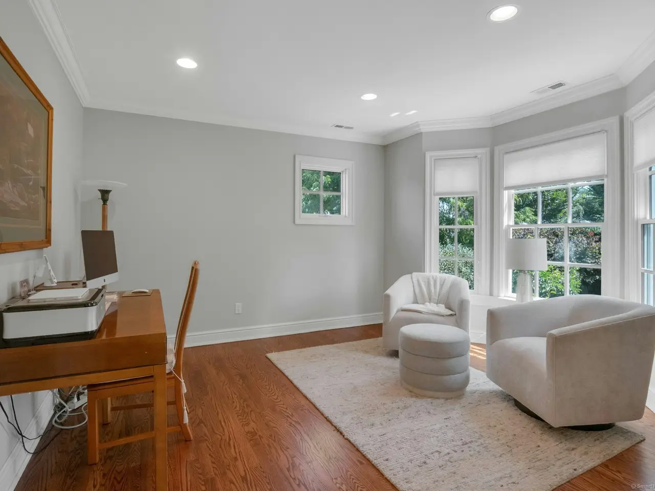This is a rare opportunity to own one of the newer homes in the unique waterfront community of Shippan Point. Deeded beach rights to the private Gurley Road beach which is just steps away. Experience everyday luxury with high-end finishes and beautiful arched moldings. Enter into the gracious two-story foyer with a sweeping grand staircase. Enjoy the sunken living room with a 10 foot ceiling and a gorgeous stone fireplace. The breakfast room also boasts two stories with beautiful sunlight streaming into the room all day long. The kitchen has been remodeled with new quartz countertops, tiled backsplash, stove top and dishwasher. The expansive primary suite is a true sanctuary, offering exceptional space for both rest and relaxation. It has a separate sitting room that may be used for a home office or workout nook. Spacious spa-inspired en suite bath with a gas fireplace, leads to an oversized walk-in closet. All four bedrooms have ensuite baths. The third floor has two generous sized rooms that may be used for offices, bedrooms or a recreation room. The backyard is professionally landscaped with lush greenery, seasonal blooms, and a large patio with a fire table and separate area for dining. The perfect home for entertaining guests! Located on a peaceful dead end street, this home offers a safe and welcoming environment in a quiet, close knit neighborhood atmosphere. Grab your paddle board or kayak and enjoy the beach. Close to train, shopping and vibrant downtown Stamford.