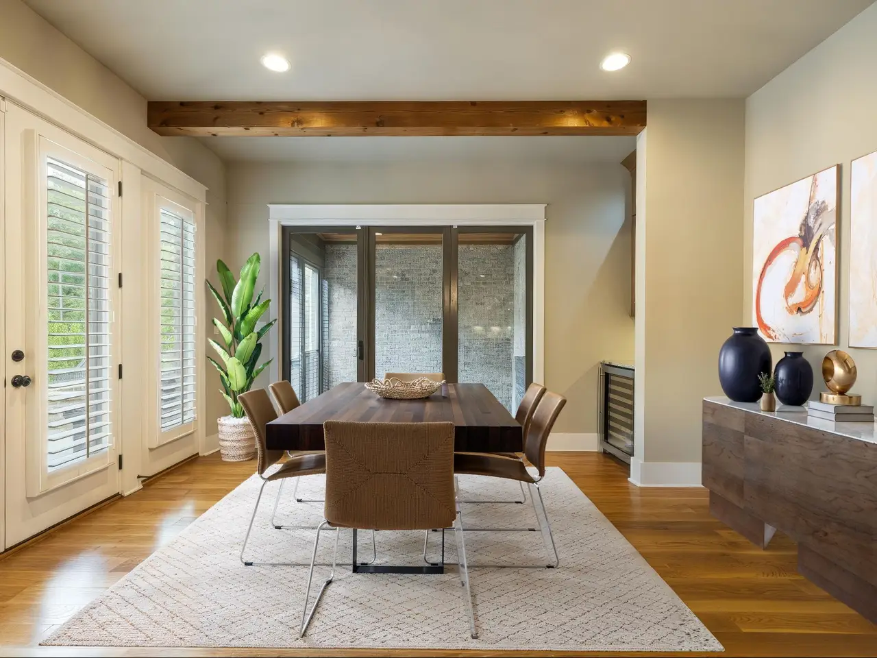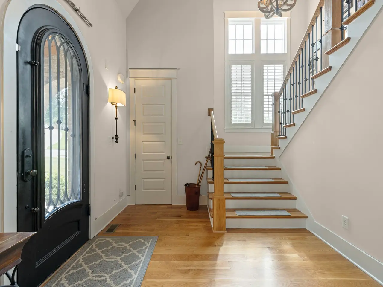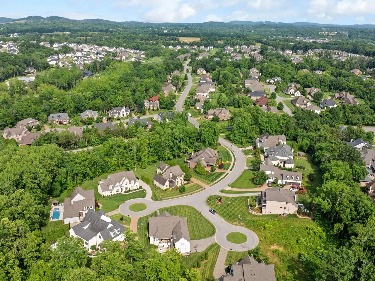 Tucked away on a peaceful cul-de-sac and backing to serene green space, this stunning home offers both privacy and luxury on a spacious lot perfect for everyday living and entertaining. Enjoy outdoor living at its finest with a screened-in porch, cozy outdoor fire pit, balcony overlooking the backyard, and a charming front courtyard--all complemented by a 3-car garage. Step inside to a thoughtfully designed layout with arched doorways and rich hardwoods throughout the main level. The open-concept living, kitchen, and dining areas flow seamlessly together and are anchored by an oversized center island, wood-beamed ceilings, and top-of-the-line appliances. A beverage center in the dining room makes entertaining effortless. The main-level primary suite is a true retreat with vaulted ceilings, a spa-inspired bath featuring a soaking tub, floor-to-ceiling tiled shower, double vanities, and a spacious walk-in closet. A dedicated main-level office adds functionality and flexibility. Upstairs, you'll find three generous bedrooms, each paired with access to one of three bonus/flex rooms--ideal for media, playroom, gym, or guest space. One bonus room is conveniently located with the secondary bedrooms, another is privately situated on the second level, and the third crowns the third floor, offering a full wet bar with a dishwasher, microwave, mini fridge, and electric cooktop--perfect for entertaining or a private guest suite. This home offers a rare combination of space, style, and thoughtful design in a location that feels like a private retreat yet is close to everything you need. Don't miss your chance to make it yours!