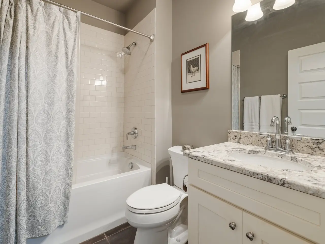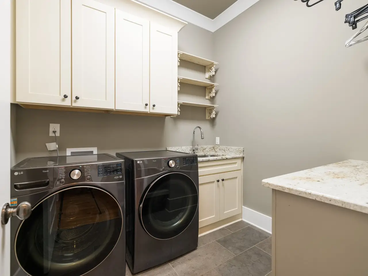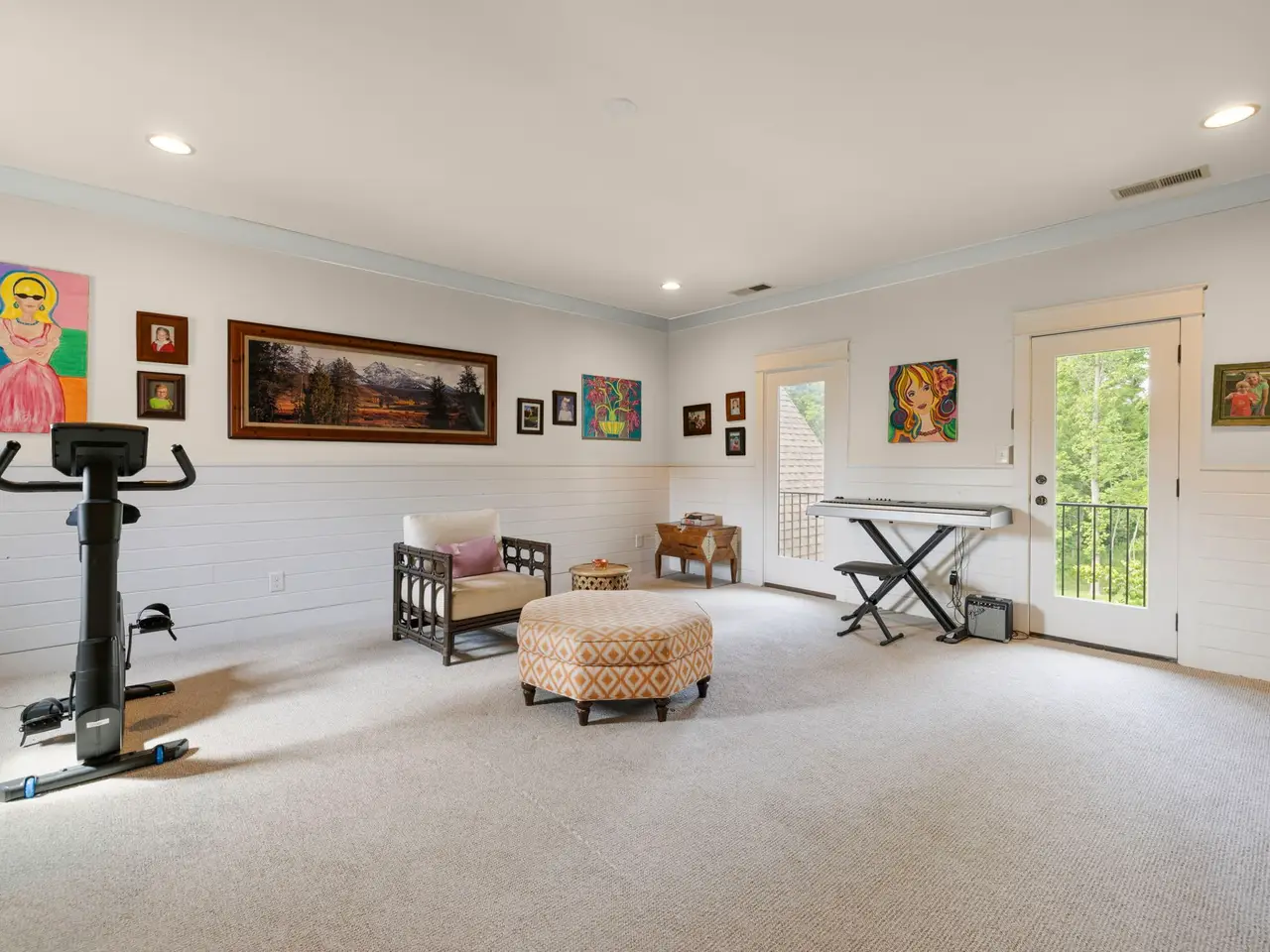 Tucked away on a peaceful cul-de-sac and backing to serene green space, this stunning home offers both privacy and luxury on a spacious lot perfect for everyday living and entertaining. Enjoy outdoor living at its finest with a screened-in porch, cozy outdoor fire pit, balcony overlooking the backyard, and a charming front courtyard--all complemented by a 3-car garage. Step inside to a thoughtfully designed layout with arched doorways and rich hardwoods throughout the main level. The open-concept living, kitchen, and dining areas flow seamlessly together and are anchored by an oversized center island, wood-beamed ceilings, and top-of-the-line appliances. A beverage center in the dining room makes entertaining effortless. The main-level primary suite is a true retreat with vaulted ceilings, a spa-inspired bath featuring a soaking tub, floor-to-ceiling tiled shower, double vanities, and a spacious walk-in closet. A dedicated main-level office adds functionality and flexibility. Upstairs, you'll find three generous bedrooms, each paired with access to one of three bonus/flex rooms--ideal for media, playroom, gym, or guest space. One bonus room is conveniently located with the secondary bedrooms, another is privately situated on the second level, and the third crowns the third floor, offering a full wet bar with a dishwasher, microwave, mini fridge, and electric cooktop--perfect for entertaining or a private guest suite. This home offers a rare combination of space, style, and thoughtful design in a location that feels like a private retreat yet is close to everything you need. Don't miss your chance to make it yours!