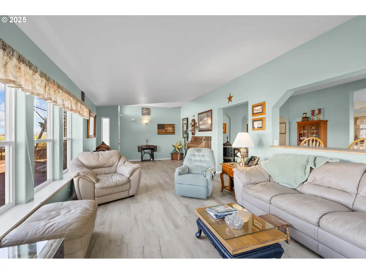 Welcome home to this spacious 2400 sq ft Triple wide on 19.54 Acres with Water Rights and Outbuildings. This well-maintained 3 bedroom, 3 bathroom. 1994 home offers generous living space with an open-concept floor plan and a fenced yard. Recent updates include a new HVAC condenser in 2023, ensuring year-round comfort. Sitting on 19.54 acres with 19 acres water rights through Stanfield Irrigation District, this property is perfect for farming, livestock, or equestrian use. Outbuildings include a 2,016 sq ft - 90 ton hay storage structure and an oversized 40'x60' garage/shop, providing ample space for equipment, vehicles, or projects. Bring your animals, hobbies, and vision - this property offers the freedom and space to create your ideal country lifestyle. This is a hard to find property with 4 wheel lines supplying water to the fields. Irrigation pipe, irrigation equipment, cattle working pens, and panels stay.