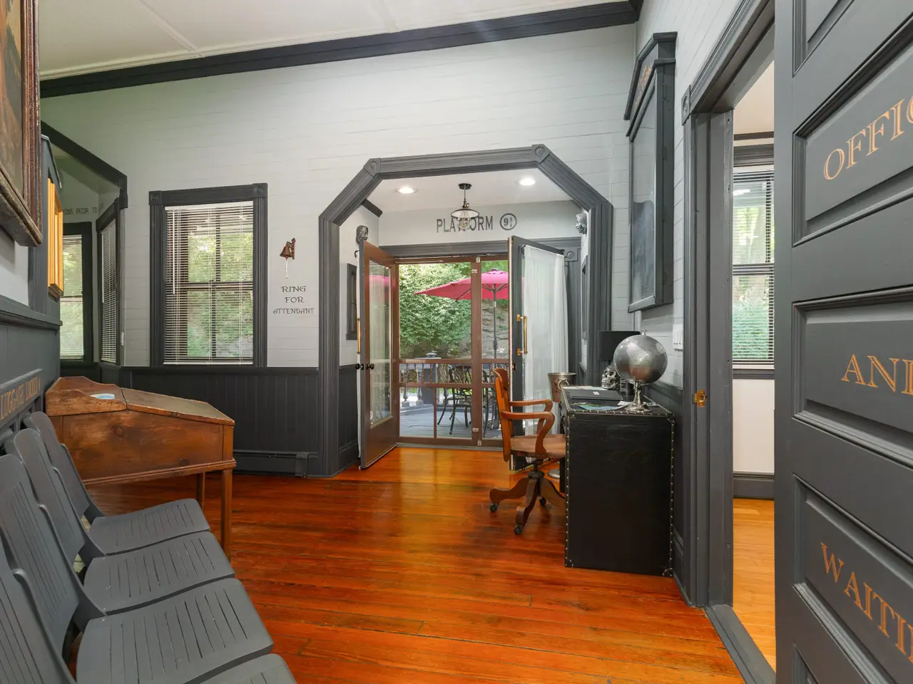 If you crave a truly unique property, love history or dream of hosting short term rentals, this property might be your ticket to ride. Built in 1889, the historic Train Station in the hamlet of Stanfordville is the only existing station remaining along the original former P&C line that ran alongside Wappinger Creek (known as one of the top 10 trout streams in NYS). Originally, the buildings consisted of the main passenger station, the coal shed and the freight shed each of which have been lovingly transformed into three warm and welcoming cottages that must be seen to be appreciated. The original Depot features a well-thought-out cook's kitchen complete with soapstone counters, granite sink, and full six burner Capital brand gas range featuring a wok ring, rotisserie and convection oven. Owner's Suite includes a landing area reading nook. The only bedroom is huge and light filled and finished with a wall of closets with a hidden office nook tucked away at the far end. The massive full bathroom holds a walk-in shower, soaking tub, yards of counter space and storage and a truly impressive vaulted ceiling. The stunning tiles featured throughout the bath were handmade by the master potters who previously owned the property. The the single bedroom Creekside Cottage with its tall central tower is accessed via the small deck surrounding the koi pond. As you enter, one half flight of stairs takes you to the full bath in the second story tower, and the second set leads down to the kitchen, living, dining and one large bedroom. There you will also enjoy a beautiful deck with stairs leading to the creek where you might enjoy the fire pit or tubing the length of the property between the bridges. The Warehouse Loft features a large living area and one massive bedroom, referred to as the Bunk Room, on the first floor, while the second floor kitchen, dining and entertaining area. A large storage area on the second floor holds potential to become an additional bedroom, or a full kitchen. This cottage also has a traditional one-car garage as well as a greenhouse. Until recently, the two guest cottages were offered for short term rental, achieving high marks from visitors and earning the owners super host status. If your dream is to host guests, the Sellers are willing to help the new owner set up the website. Centrally located in Northern Dutchess County just 90 miles from New York City with easy access to Metro North, Amtrak, and the Taconic State Parkway.