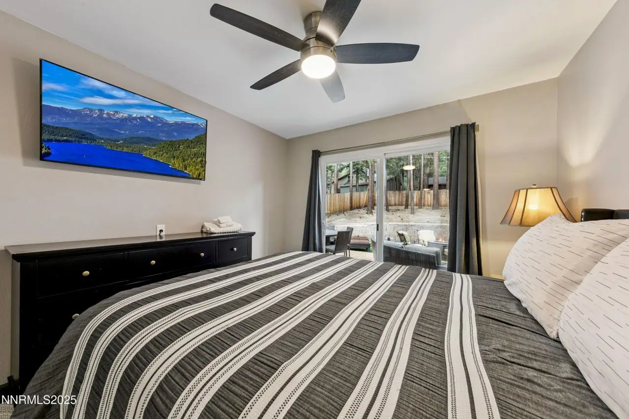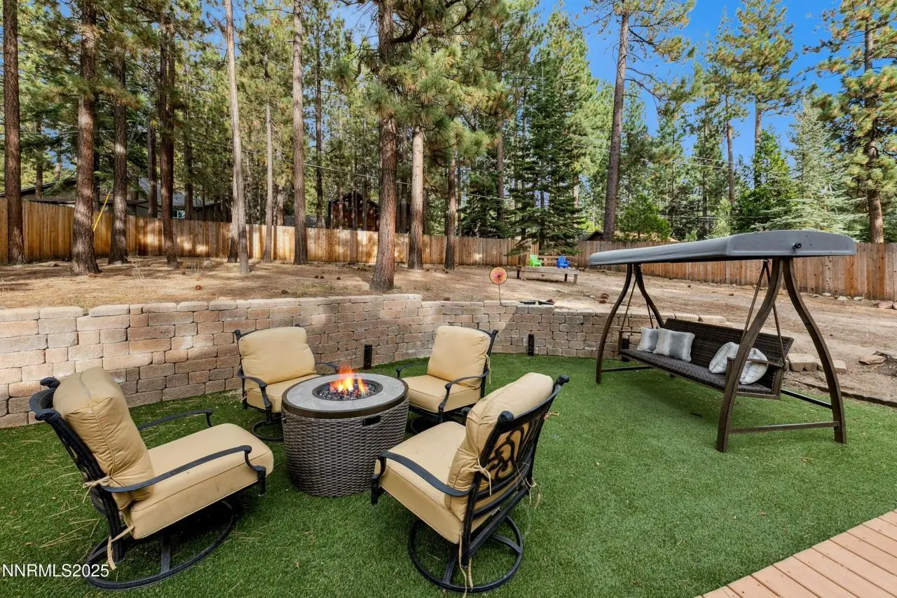 Having an A+ location, this beautifully remodeled home throughout, in move-in condition, highlights this special Middle Kingsbury property. The kitchen features recently updated wood/glass cabinetry, granite tile countertops, stainless steel appliances, gas stove, built-in microwave, pantry, & garden window. The living room features a handsome gas log fireplace, new wine fridge and wet bar. The primary bedroom has a newly installed, beautiful custom tile, double headed shower to die for (!), with double sinks, new lighting, three mirrored closets, & ceiling fan. Other features include newly installed hardwood floors, carpeting, doors & fixtures, blinds and drapes, Nest Thermostat, security system, laundry room, and even central A/C. The spacious, newly installed fenced back yard, features a huge patio/deck area, built-in natural gas fire pit, two other tabletop fire pits, with ample backyard furnishings. Exterior features include a paver driveway, terraced walls, bear box, & gated boat/RV parking! There is a bonus room set up in one of the garage spaces with TV for a separate theater/family room option, or it can be easily converted back to a full, two car garage. Located right across the street from miles of hiking and biking trails, and on a school bus route for early snow removal. Only five minutes to world class skiing at Heavenly Valley, and all the action in the casino corridor, including the Tahoe Blue Event Center. All the brand-new furnishings are negotiable.
