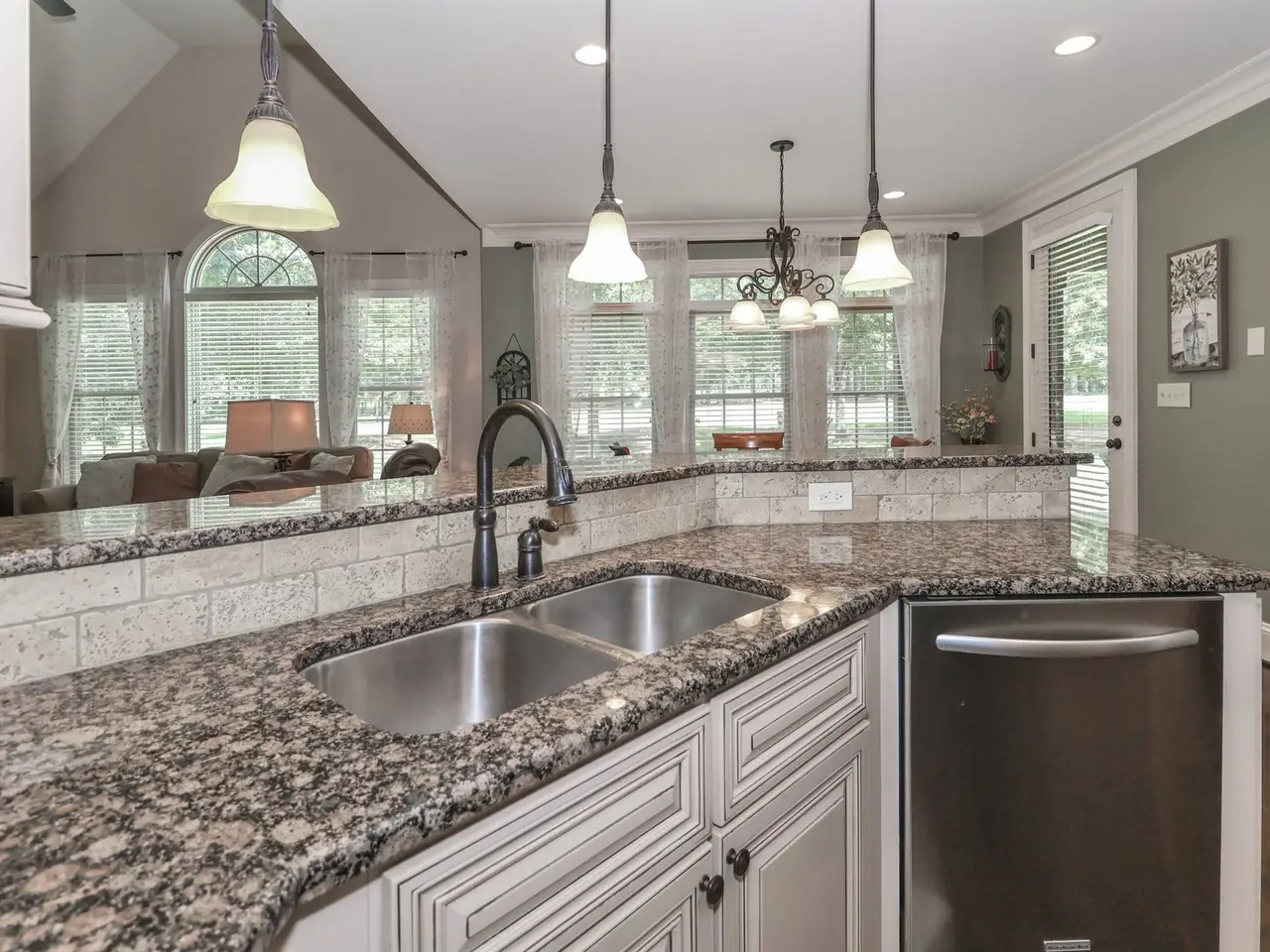 New Roof October 2025, Statesville Country Club/Shannon Acres Golf Hole 13. Beautiful crown molding accents much of the interior, with coffered ceilings in the dining room adding a touch of elegance. The living room features a wet bar, perfect for entertaining, and a lovely fireplace with gas logs. The eat-in kitchen opens to a bright keeping room with a second gas fireplace and abundance of natural light. The kitchen offers top-of-the-line appliances and plenty of workspace. Spacious primary suite includes French doors leading to the covered back porch. Two additional bedrooms share a convenient Jack-and-Jill bathroom. A large laundry room with sink adds functionality, and back stairs lead to a versatile upper level featuring a family room, fourth bedroom, full bath, and a bonus room surrounded by windows. Enjoy peaceful views of the golf course from the covered porch overlooking the large, half-acre lot. Tucked away on a quiet street with minimal traffic, this home is truly a must-see.