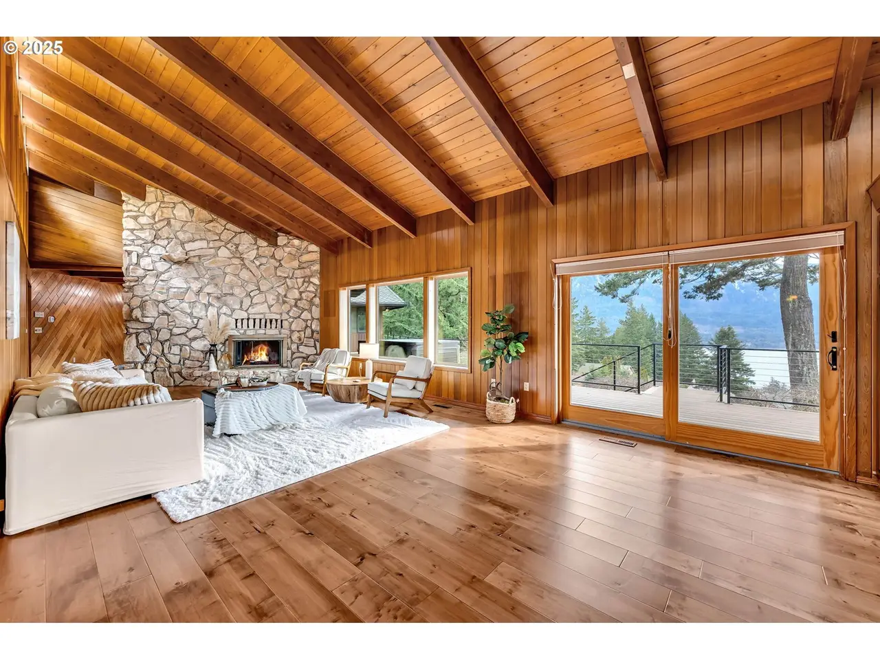 Indulge in the epitome of gorge living with this extraordinary home nestled on a sprawling 3.64 acre estate. Prepare to be captivated by then unobstructed vistas of the majestic Columbia River and the awe-inspiring Cascade Mountains, where nature's beauty unfolds at your doorstep. Step inside this architectural masterpiece and embark on a journey of sheer opulence. With an impressive 9,000+ square feet of living space, this residence boasts an abundance of room for both lavish entertaining and intimate family gatherings. Immerse yourself in the spacious open floor plan, seamlessly connecting the living , dining, and kitchen areas. Vaulted ceilings with wood beams, oversize windows frame the breathtaking views, inviting natural light to dance throughout the home, creating an ambiance that is both serene and uplifting. Make your way to the entertainment room, where endless possibilities await. Whether it's hosting movie night, engaging in friendly game competition, or creating a haven for relaxation, this space is designed to cater to your every need. Retreat to the primary suite, where tranquility and unobstructed views of the river harmonize effortlessly. With six bedroom and six bathrooms in total, there is an abundance of space to accommodate family and guests. In addition, this home also has a spacious playroom/gym. Beyond the interior, step outside onto the expansive deck and immerse yourself in the unparalleled natural surroundings. This estate presents even more possibilities with a 40x60 shop that is equipped with a half bath, 220 amps, plumbed in compressor, and RV parking, 4 RV hookups beside the shop. This space is large enough to accommodate your vehicles and gear but also wired for a 2nd floor, the possibilities are endless. Added for additional peace of mind, a large generator is ready to assist the main house, ensuring power even during unforeseen outages. Conveniently located 45 minutes from Portland airport and to recreational amenities.