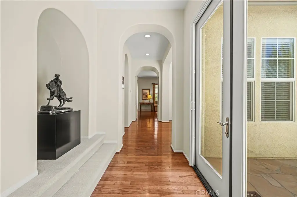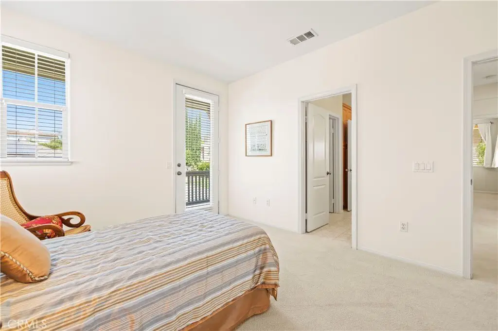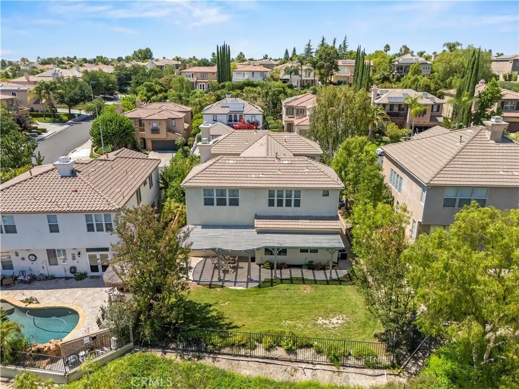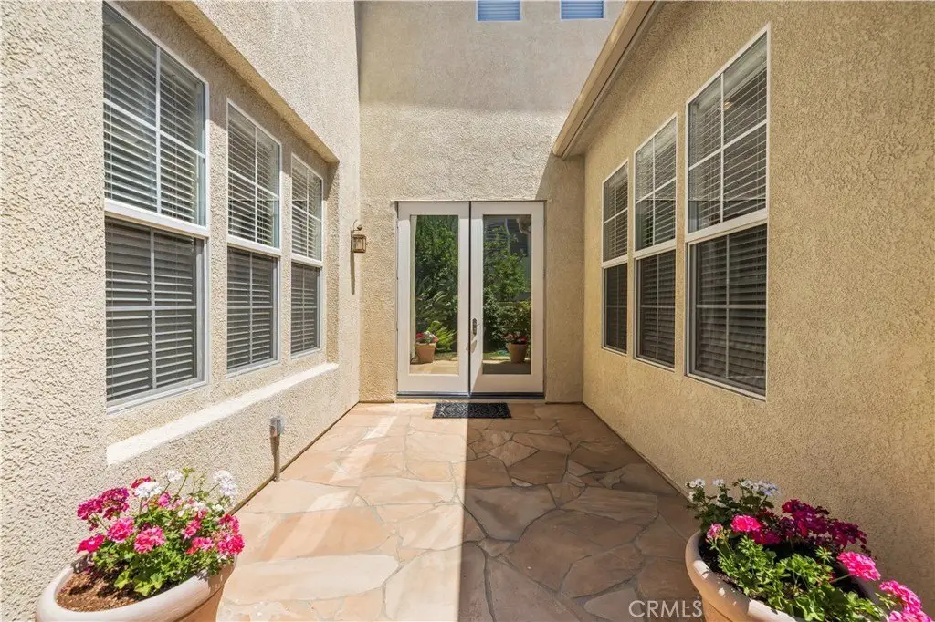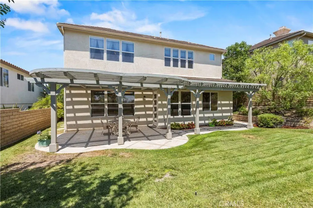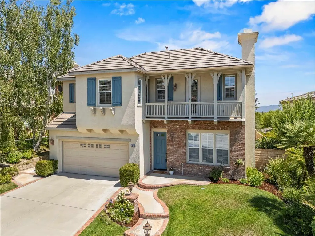 Situated at the top of one of Stevenson Ranch’s most desirable neighborhoods, this beautifully maintained Mediterranean-inspired home offers over 3200 square feet of updated living space. It features five spacious bedrooms and three full bathrooms, including a full bedroom and bathroom on the main level, perfect for guests or multi-generational living. From the moment you arrive, pride of ownership is clear. A unique dual staircase anchors the expansive layout, which includes formal living and dining rooms, along with French doors that open to a private interior courtyard, ideal for relaxing or entertaining. Throughout the home, you’ll find wood flooring, newer carpet, recessed lighting, phantom screens, and custom touches that reflect true pride of ownership. The gourmet kitchen showcases granite countertops, a center island, pantry closet, under-cabinet lighting, and newer appliances. The bright breakfast nook opens to a spacious family room with a cozy fireplace, built-in media niche, and direct access to the backyard. Upstairs, the expansive primary suite offers a peaceful retreat, featuring a spotless ensuite bathroom with dual sinks, a soaking tub, separate shower, and a custom walk-in closet. Step outside to your entertainer’s backyard with no rear neighbors and enjoy scenic hillside views, year-round serenity, and plenty of space to add your dream outdoor features. Additional upgrades include newer air conditioning condensers, new hot water heater, new screens on windows, phantom screen doors, an upstairs laundry room, dual-zone A/C, two fireplaces, and a three-car tandem garage. All this in a prime location within walking distance of award-winning Stevenson Ranch Elementary and Richard Rioux Park, offering tennis courts, playgrounds, walking trails, and open fields. Enjoy easy access to shopping, dining, and the freeway. Low HOA of $30 monthly and low Mello Roos set to expire in 2026. This immaculate, move-in ready home offers the perfect blend of space, style, and location!