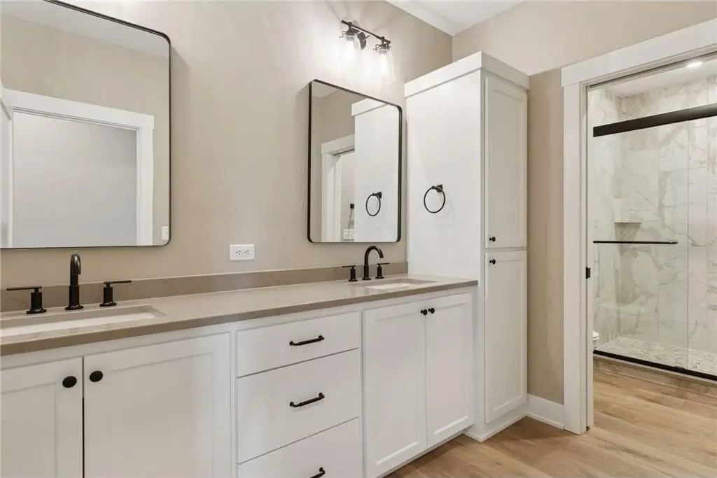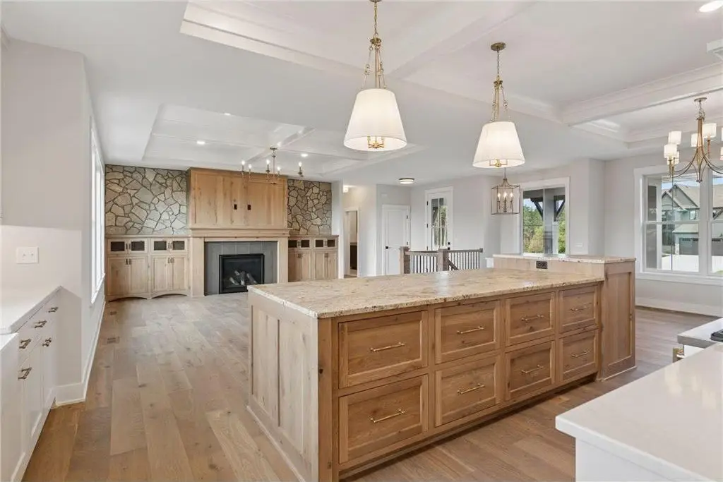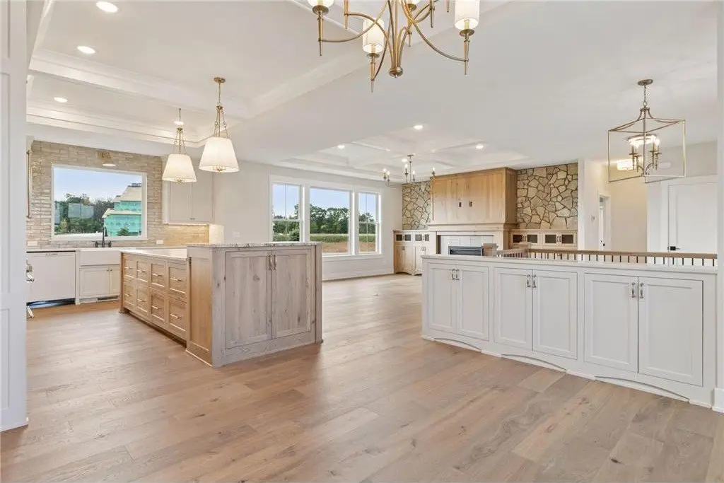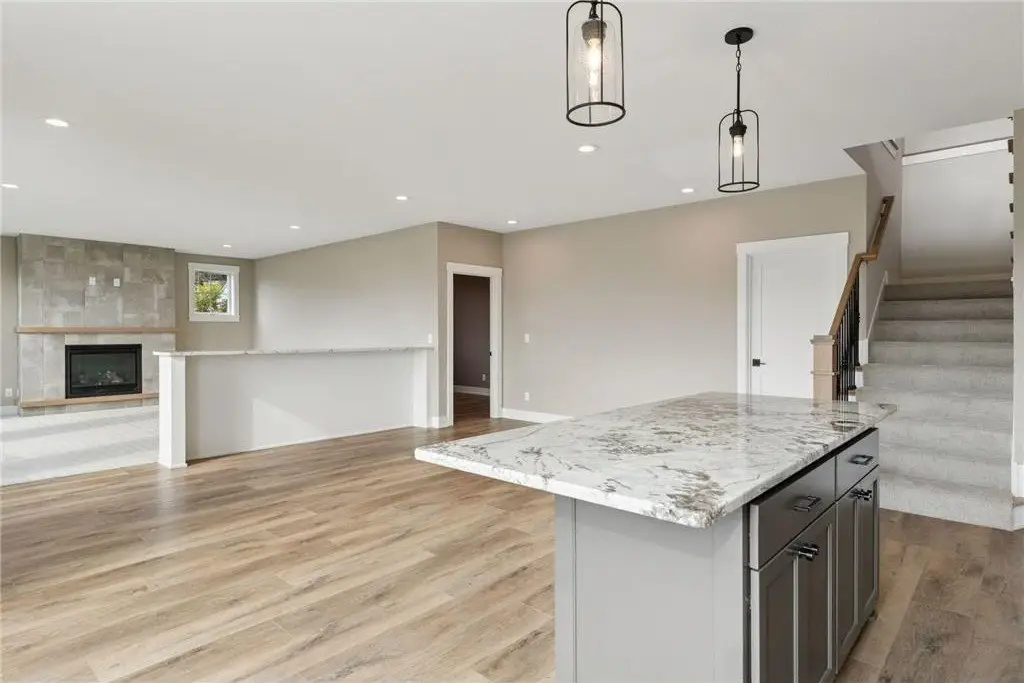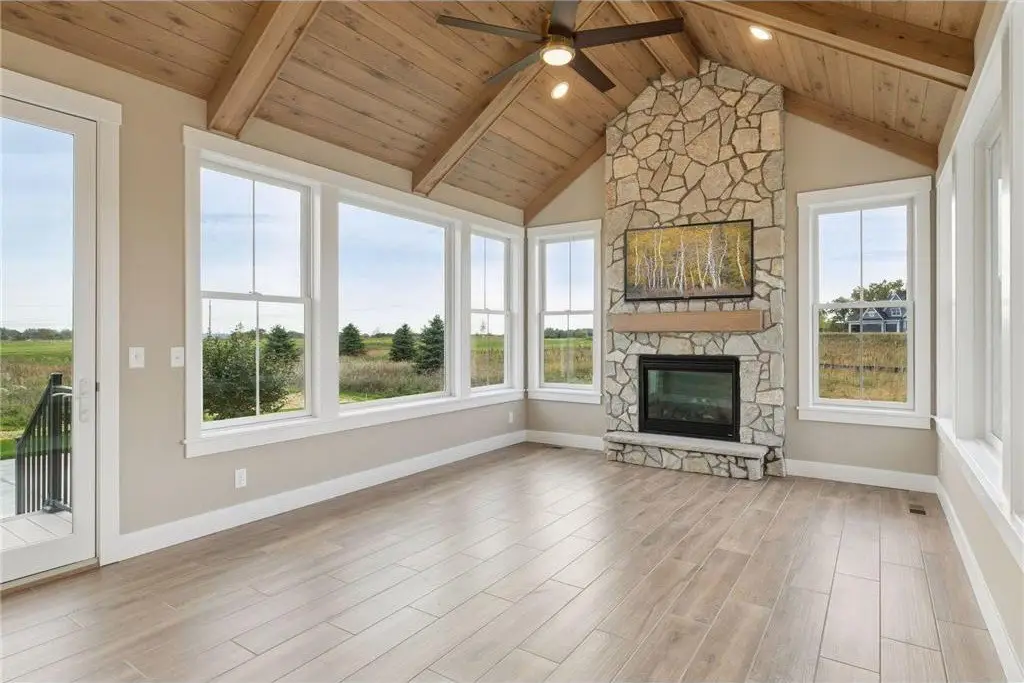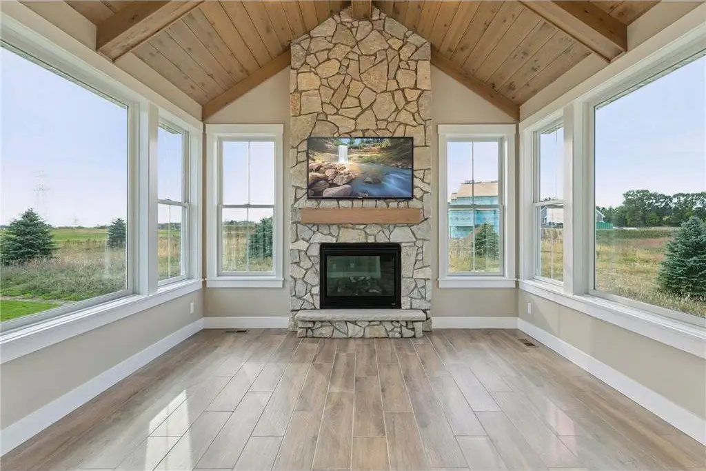 Welcome to this exceptional custom-built home by Derrick Custom Homes, a true masterpiece offering 4 bedrooms, 3 bathrooms, and an expansive layout designed for both everyday living and elegant entertaining. From the moment you step inside, you'll be captivated by the quality craftsmanship and thoughtful design. The open-concept main level features a warm and inviting living room, anchored by a gas fireplace surrounded by custom built-in cabinetry, creating a cozy yet sophisticated ambiance. The gourmet kitchen is a chef’s dream, showcasing full-height custom cabinetry, a spacious center island, decorative tile backsplash, walk-in pantry with a wet bar, and stainless-steel appliances. Stylish lighting and high-end fixtures are thoughtfully placed throughout the home, adding a modern and refined touch. Natural light pours in through expansive picture windows, enhancing every corner of the home. Enjoy year-round relaxation on the four-season porch, complete with its own fireplace, the perfect space for morning coffee or evening gatherings. Retreat to the luxurious primary suite, featuring a spa-inspired ensuite with a dual-sink vanity, walk-in tile shower, indulgent soaking tub, and in-floor heating. A second bedroom, full bath, powder room, mudroom, and laundry room round out the main floor. The finished lower level is designed for entertainment and versatility, offering a spacious media and gaming area with a third gas fireplace and wet bar and in-floor heat throughout the finished spaces. Two additional bedrooms, each with walk-in closets, a 3/4 bath, dedicated exercise room, and ample storage space complete the lower level. An attached 3-car garage adds convenience and functionality to this already impressive home. This is a must-see property that perfectly blends luxury, comfort, and modern design. Schedule your private showing today!