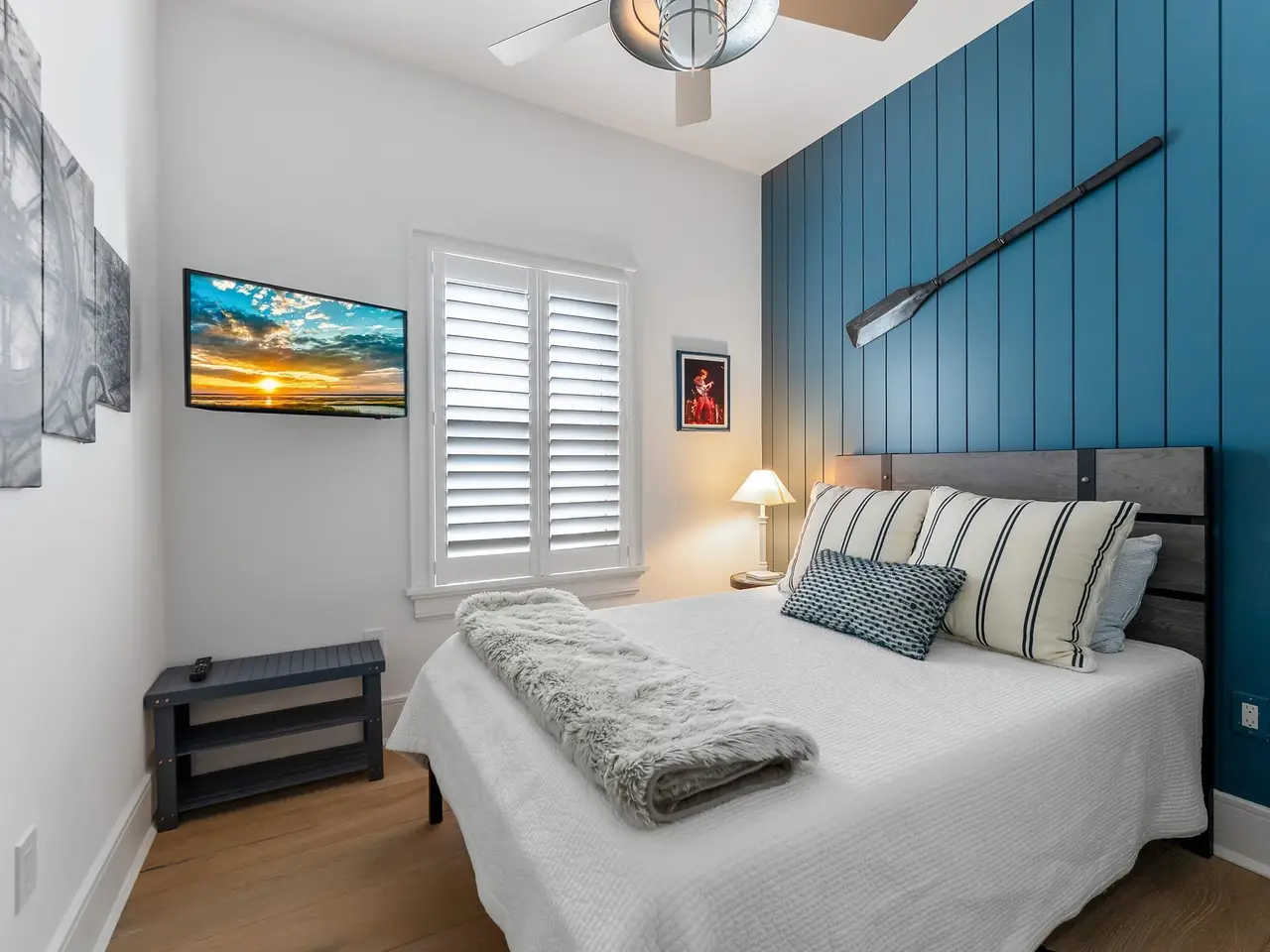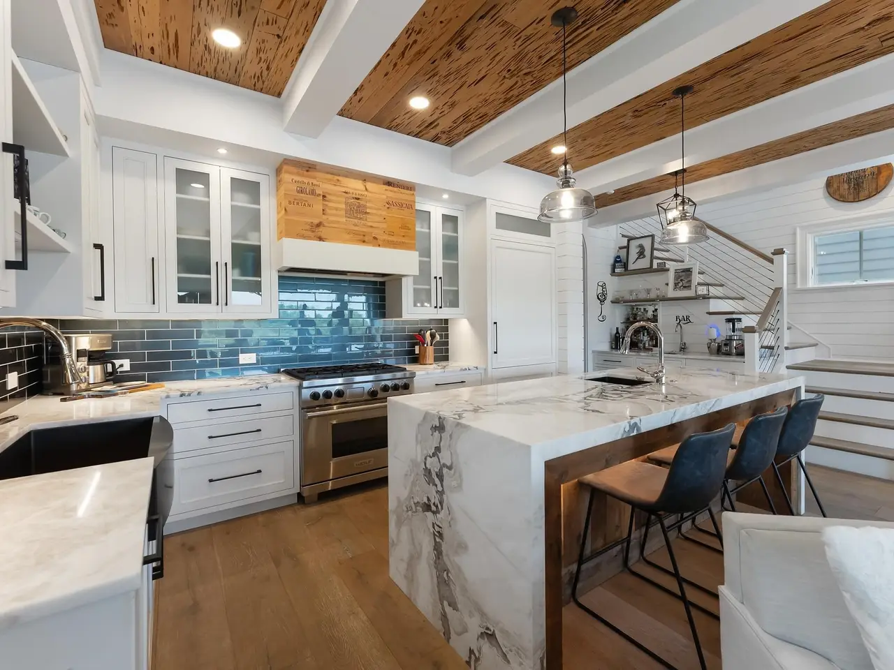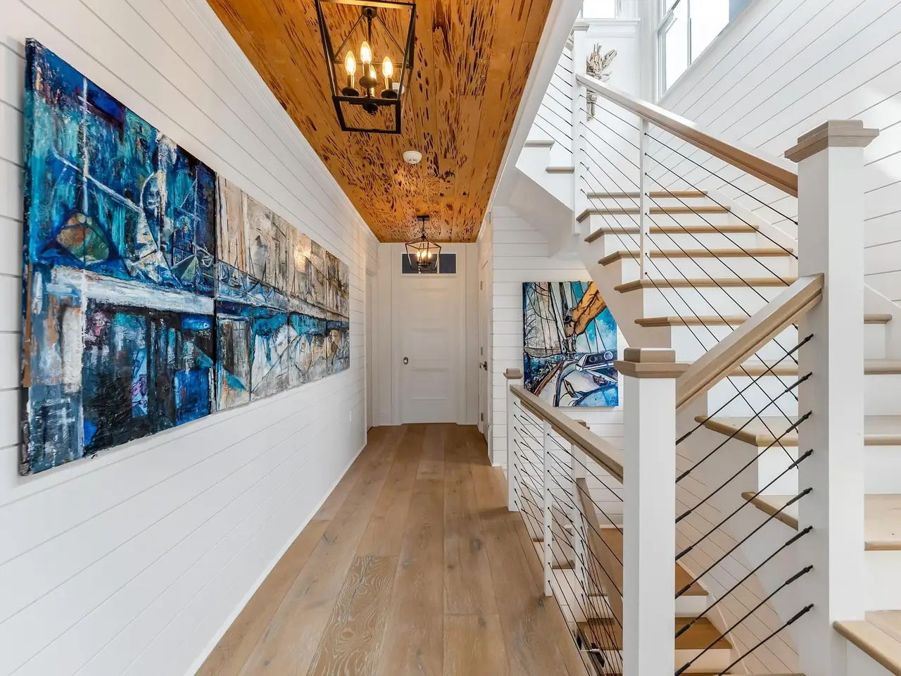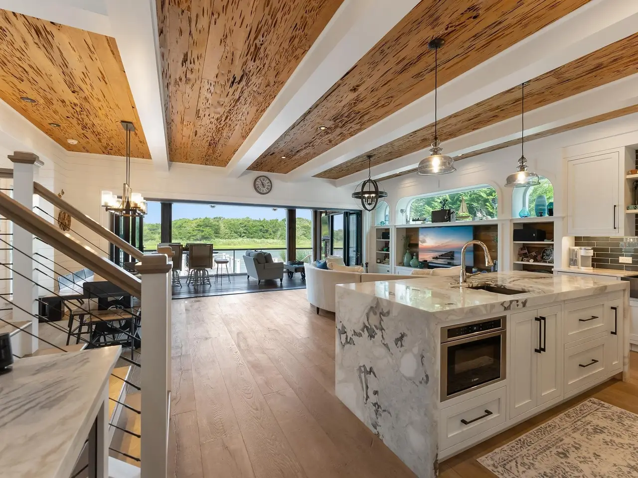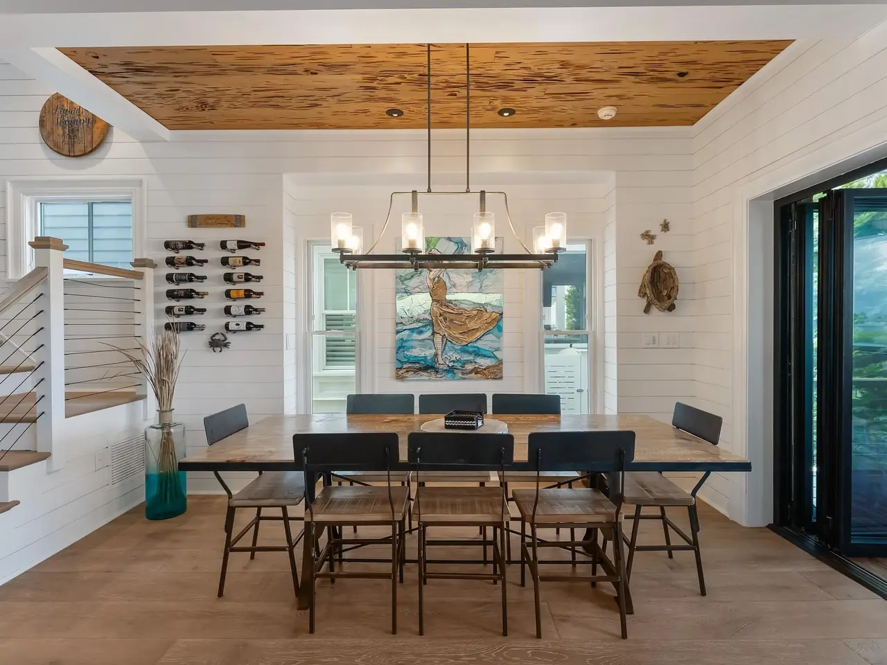 Vino Su l'acqua ("Wine on the Water") - Coastal Elegance Meets Bayfront Luxury. Welcome to Vino su l'acqua, a name that perfectly captures the essence of this peaceful, luxurious escape fabulous unobstructed views of the bay, wetlands and waterfowl habitat. This well thought out home was designed by the architectural firm of Asher Slaunwhite with much influence from Mark Asher. The home was constructed by renowned custom builder D.L. Minor and is positioned gracefully on a premier, quiet street, offering the ultimate in privacy, design, and waterfront living. From the moment you enter, you're greeted by masterful design and craftsmanship, including gorgeous, reclaimed wood accents and custom millwork throughout the home, pecky cypress wood and beamed ceilings, engineered wide plank hardwood floors, and thoughtfully curated high-end finishes throughout. The second-floor primary suite spans the full width of the home, offering breathtaking panoramic bay views through an oversized sliding glass door leading to a massive, covered deck-complete with a private wet bar and Sub-Zero wine fridge, perfect for sipping wine on the water. The spa-inspired en-suite bathroom features dual sinks, a custom open vanity, shower/tub combination with a rain head, barn-style glass doors, separate water closet, and custom open shelving. Additional interior features include a spacious custom bunk room with built-in storage, custom built-in cabinetry framed by large picture windows for abundant natural light, striking iron and wood pantry doors, and a designer kitchen with top-tier paneled appliances, multiple sinks, a cascading waterfall island with refrigerator drawers, a custom hood vent, and a luxury glass tile backsplash. The rooftop deck offers sweeping, elevated views of the bay and intracoastal waterway and serves as a true private oasis. An integrated alarm system offers peace of mind. Indoor-outdoor living is elevated by a show-stopping NanoWall that seamlessly opens the interior to an expansive screened-in porch with a brick gas fireplace, automatic hurricane shutters, and motorized screens-blurring the lines between indoor comfort and outdoor serenity. Step onto the one-level bayfront deck, adorned with elegant outdoor lighting, leading to a custom ramp and floating dock with two private boat slips-perfect for fishing, boating, or simply soaking in the sunsets. Smart home features include a fully integrated Control4 Smart Home System that has sonos speakers in every room can be operated from your phone via app with fully customizable remote access. The system controls deck screens and shutters, climate (heating and air conditioning), lighting, and music in every room of the home-including the front porch, back porch, and outdoor deck-with seamless efficiency using Lutron lighting and intuitive design. After a day on the water, rinse off in your own luxurious brick-walled outdoor shower-a private, elegant touch that enhances your coastal lifestyle. Additional features include a welcoming full front porch, two off-street parking spaces, and built-in wine moments around every corner-fitting for the home's namesake. Vino Su l'axqua is not somply a home-it's a lifestyle on the water, where every detail is a testament to thoughtful design, timeless quality, and refined coastal living. Don't miss the opportunity to own Vino Su l'acqua, your own personal paradise-a true waterfront sanctuary where luxury meets tranquility, and every sunset is a masterpiece.