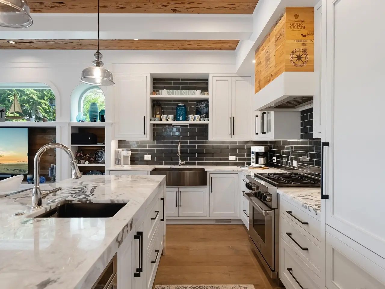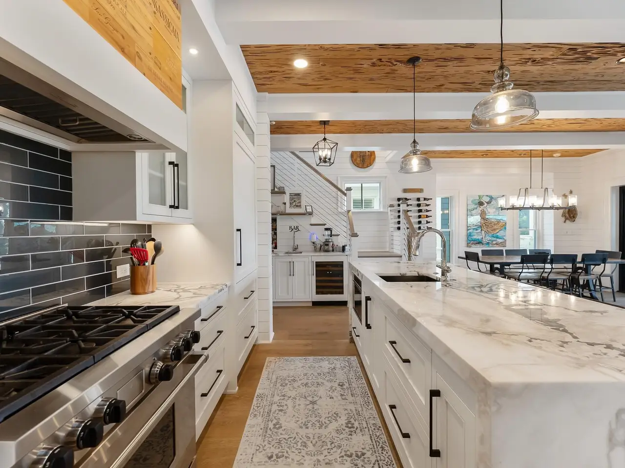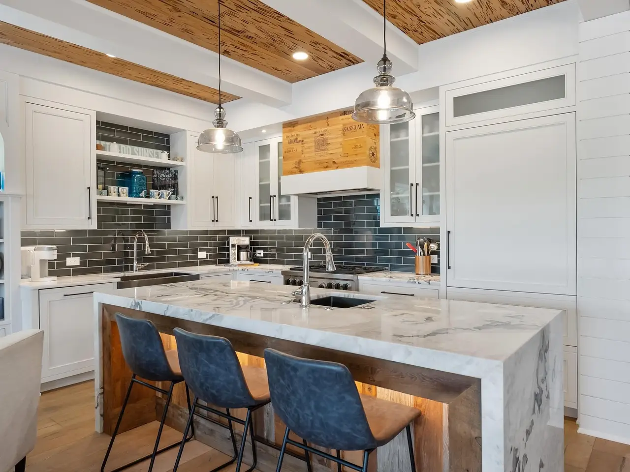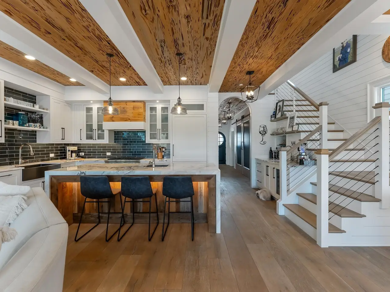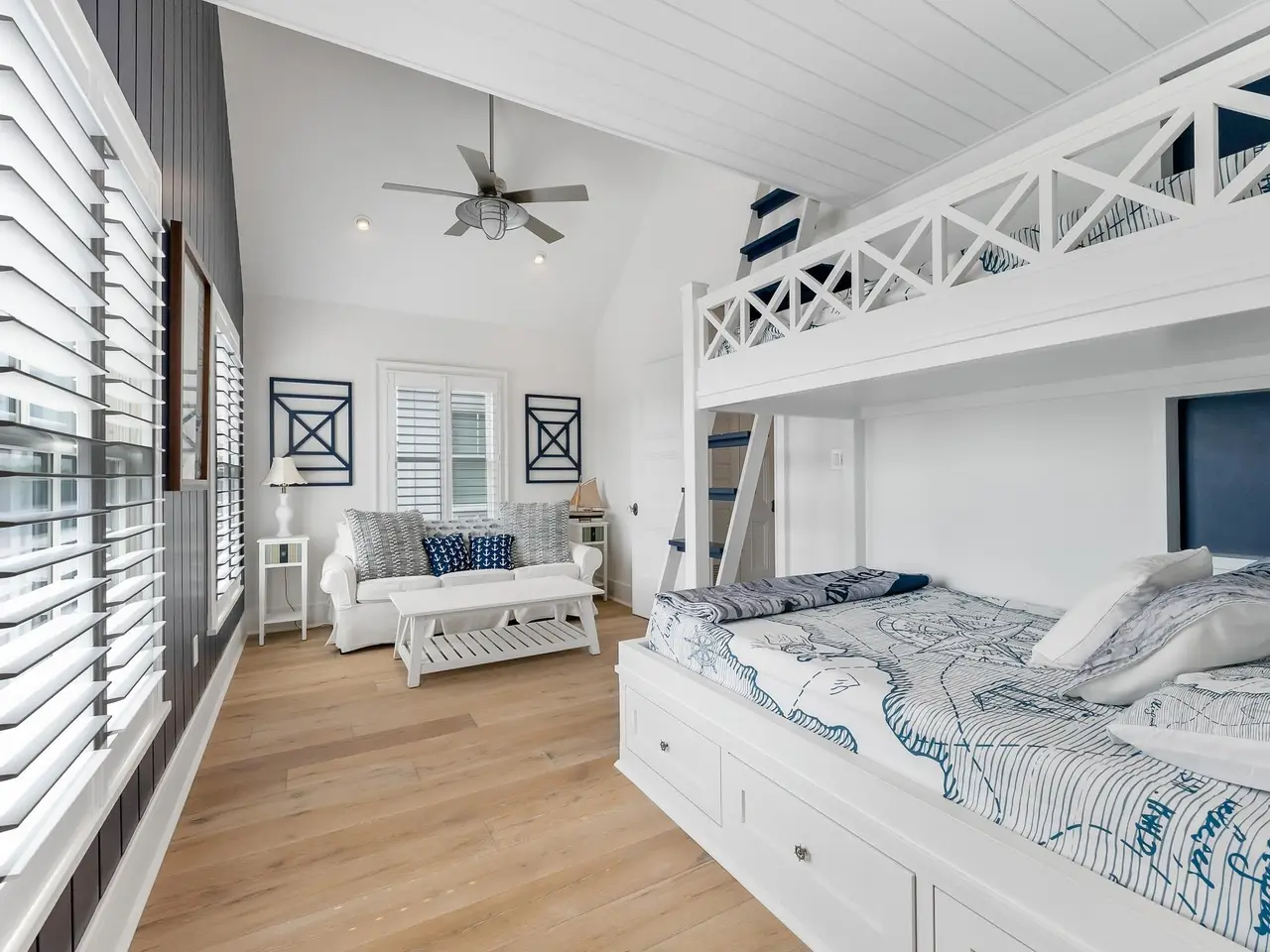 Vino Su l'acqua ("Wine on the Water") - Coastal Elegance Meets Bayfront Luxury. Welcome to Vino su l'acqua, a name that perfectly captures the essence of this peaceful, luxurious escape fabulous unobstructed views of the bay, wetlands and waterfowl habitat. This well thought out home was designed by the architectural firm of Asher Slaunwhite with much influence from Mark Asher. The home was constructed by renowned custom builder D.L. Minor and is positioned gracefully on a premier, quiet street, offering the ultimate in privacy, design, and waterfront living. From the moment you enter, you're greeted by masterful design and craftsmanship, including gorgeous, reclaimed wood accents and custom millwork throughout the home, pecky cypress wood and beamed ceilings, engineered wide plank hardwood floors, and thoughtfully curated high-end finishes throughout. The second-floor primary suite spans the full width of the home, offering breathtaking panoramic bay views through an oversized sliding glass door leading to a massive, covered deck-complete with a private wet bar and Sub-Zero wine fridge, perfect for sipping wine on the water. The spa-inspired en-suite bathroom features dual sinks, a custom open vanity, shower/tub combination with a rain head, barn-style glass doors, separate water closet, and custom open shelving. Additional interior features include a spacious custom bunk room with built-in storage, custom built-in cabinetry framed by large picture windows for abundant natural light, striking iron and wood pantry doors, and a designer kitchen with top-tier paneled appliances, multiple sinks, a cascading waterfall island with refrigerator drawers, a custom hood vent, and a luxury glass tile backsplash. The rooftop deck offers sweeping, elevated views of the bay and intracoastal waterway and serves as a true private oasis. An integrated alarm system offers peace of mind. Indoor-outdoor living is elevated by a show-stopping NanoWall that seamlessly opens the interior to an expansive screened-in porch with a brick gas fireplace, automatic hurricane shutters, and motorized screens-blurring the lines between indoor comfort and outdoor serenity. Step onto the one-level bayfront deck, adorned with elegant outdoor lighting, leading to a custom ramp and floating dock with two private boat slips-perfect for fishing, boating, or simply soaking in the sunsets. Smart home features include a fully integrated Control4 Smart Home System that has sonos speakers in every room can be operated from your phone via app with fully customizable remote access. The system controls deck screens and shutters, climate (heating and air conditioning), lighting, and music in every room of the home-including the front porch, back porch, and outdoor deck-with seamless efficiency using Lutron lighting and intuitive design. After a day on the water, rinse off in your own luxurious brick-walled outdoor shower-a private, elegant touch that enhances your coastal lifestyle. Additional features include a welcoming full front porch, two off-street parking spaces, and built-in wine moments around every corner-fitting for the home's namesake. Vino Su l'axqua is not somply a home-it's a lifestyle on the water, where every detail is a testament to thoughtful design, timeless quality, and refined coastal living. Don't miss the opportunity to own Vino Su l'acqua, your own personal paradise-a true waterfront sanctuary where luxury meets tranquility, and every sunset is a masterpiece.