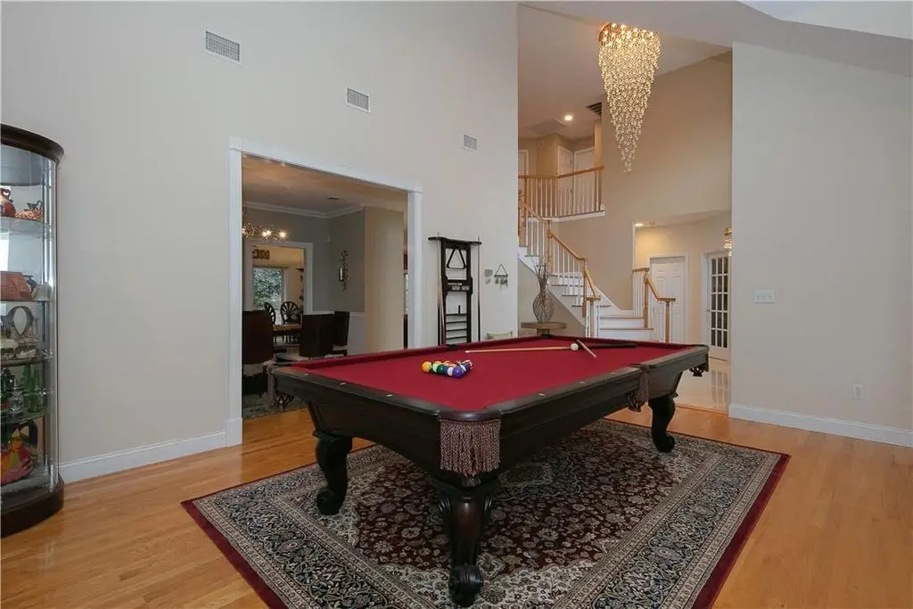 Breathtaking mountain views right outside your front doors! This stunning 6 bedroom, 4 bath stucco residence offers approximately 6300 square feet of luxury living. Upon entering, you'll be greeted by the double-story grand entry with beautiful marble flooring. The spacious living room boasts cathedral ceilings and is open to your formal dining room, complete with chair rail and crown moulding. The chef's kitchen is equipped with high-end, stainless appliances, custom cherry cabinets, 2 sinks, and expansive granite countertops. The open floor plan has a sunken family room with a stone fireplace. A substantial billiard/ great room with a movie projector is ideal for entertaining. Additionally, the first floor features a bedroom/home office, laundry area, and a full bathroom. All upstairs bedrooms are generously sized with tray ceilings and hardwood flooring. The en-suite boasts a new custom walk-in closet. The expansive bathroom features double vanities, new granite countertops, a shower, and a jacuzzi tub. There's also a finished walk-out basement includes a home gym, spacious bedroom, full bathroom, family room, and storage area. Many more modern amenities include alarm system, central air, recess lighting, 2 car garage and more. Escape the city and unwind amidst nature in your private backyard. Entertain on your expansive paver patio, roast marshmallows on the fire pit, or relax in the hot tub. Conveniently located near PIP, golf courses, marinas, hiking trails, 7 Lakes, and a ferry to NYC, this property is a must-see.