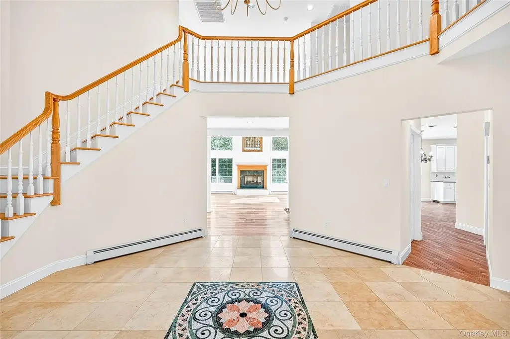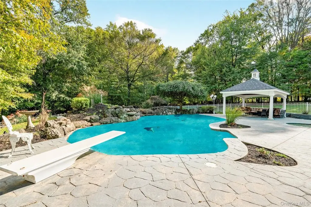 Welcome home to your private mini estate in the historic town of Stony Point! Nestled on nearly 3 acres of serene, tree-lined property, this beautifully designed residence offers the perfect blend of space, comfort, and privacy within 10 minutes of the Palisades Parkway for easy commuting. Step through the front door into a grand two-story foyer, where a sweeping open staircase ascends to a gallery-like landing and interior balcony overlooking the main living areas. Sunlight pours in through oversized windows, creating a warm, inviting ambiance throughout. Thoughtfully designed for both everyday comfort and elegant entertaining, this expansive home features an open-concept kitchen that allows you to cook and host with ease. Whether you're gathering on the wraparound deck overlooking the pool or enjoying a more formal evening in the elegant dining room, every detail supports effortless living. Furthermore, throughout this level of the home are two peaceful, light-filled sunrooms perfect for reading, relaxing, one of which becomes a cozy haven on rainy days steps from the family room, living room and den/library. The seamless flow between living areas makes hosting effortless, while still providing intimate corners for quiet reflection.Upstairs features 4 generously sized bedrooms and 3 full bathrooms. The luxurious primary suite is a true retreat, complete with an elegant fireplace, abundance of room for that quiet reading nook, a private balcony for morning meditation, and a spa-like en-suite bath. Three additional bedrooms provide comfort and privacy for family or guests. The fully finished walkout lower level is a home in itself, featuring a second kitchen and abundant space for extended family, guests, recreation, or a private home office. Whether you're accommodating multiple generations or seeking the ideal layout for entertaining, this flexible space adapts to your needs. Step outside to discover a backyard sanctuary, meticulously designed for outdoor enjoyment. Entertain in style with expansive decking, a sparkling in-ground pool, a gazebo for al fresco dining, and a jacuzzi for ultimate relaxation all surrounded by the natural beauty of your own private landscape. Whether you're entertaining or simply enjoying the peace and quiet, you'll love the expansive layout and tranquil surroundings, schedule your private showing today.