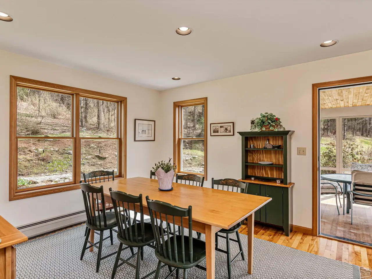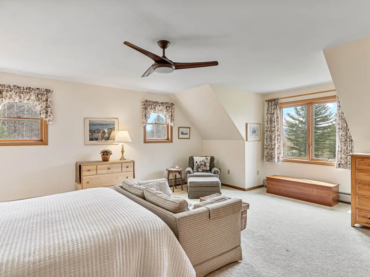 Welcome to your dream home! This meticulously maintained 4 bedroom, 3 bath residence offers sweeping, unobstructed views of Mt. Mansfield and the surrounding mountain range. Set on a picturesque lot bordered by a gentle brook and framed by well-established perennial gardens, this property is a true Vermont gem. Inside you'll find spacious rooms and beautiful birch floors throughout the main living area. The home features a comfortable family room with propane fireplace, a dedicated dining room, and a warm, inviting living room-perfect for entertaining or relaxing with family. Enjoy peaceful mornings and vibrant evenings in the charming 3-season screened-in porch while listening to the sound of the nearby brook. Upstairs, a finished bonus space over the garage provides flexible options for a home office, guest suite, or playroom. The partially finished lower level allows for many other opportunities such as an exercise room or rec room. Plus there is additional space that could be finished as well. Don't miss your chance to own this special home that combines natural beauty, comfort, and character in every detail. All ideally located just a minute from the grocery store and the back way up to the mountain. And....just minutes from downtown historic Stowe, Vermont!