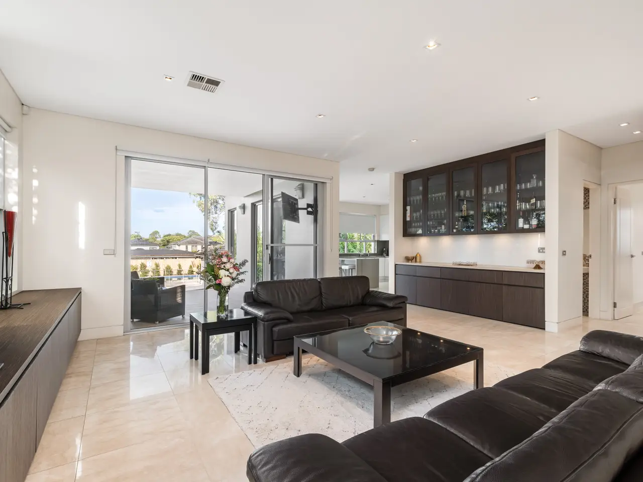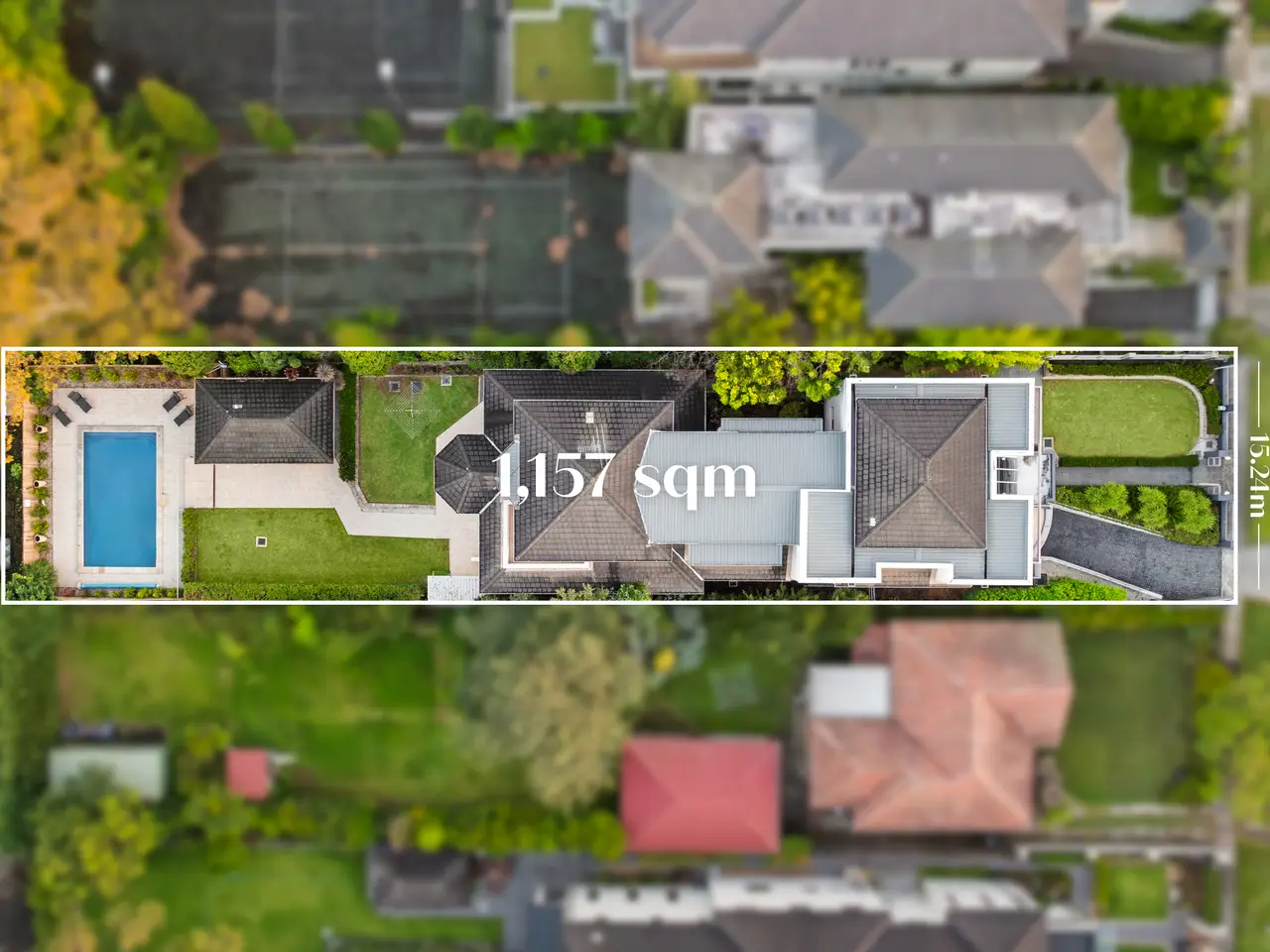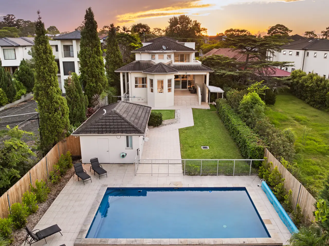 Unveiling a flawlessly appointed tri-level design, this master-built home stands as an exquisite lifestyle sanctuary with an array of private leisure facilities. Exuding elegance, grandeur, and opulence, its sun-washed interiors showcase a sequence of living spaces, along with a poolside cabana and a beautifully manicured garden setting. The property is set on a coveted 1,157 square meter north facing block and enjoys a family-oriented setting, within 2.8 kilometers of Strathfield Station. - Custom 'one of one' builders own home, double brick and concrete build - Signature concrete spiral stairs with dual height glass wall, marble floors - Impressive entry foyer with double height void and designer chandeliers - Refined fittings, natural sunlight and custom design enhance the interiors - Home cinema impresses with recliners and projector, office and family room - Sunken formal dining area, rumpus room features kitchenette and bathroom - Beautifully manicured hedges immerse the backyard and swimming pool - Poolside cabana enjoys a kitchenette and bathroom, additional BBQ area - Five plush bedrooms all with built-ins, two with ensuites, three with balcony - Exclusive master, private balcony, bespoke walk-in and double spa ensuite - Modern kitchen features stainless steel gas appliances and a butler pantry - Ducted air-conditioning, shadow line ceilings, downlights, polished tiling - Pristine 1157sqm's of landscaped glory/gardens, every day is a holiday - Resort styled backdrop with concrete inground pool, cabana, child friendly lawns - Living and entertaining spaces on all three levels, built for the growing family - Extensive basement car space accommodates up to six vehicles and storage - Located 2.8km from Strathfield Station, just 1.9km from Homebush Station - Walk to St Pat's college, a number of parks, village shops and Homebush train - Close to Strathfield Plaza, Meriden, Trinity, Boulevarde Shops & Strathfield train
