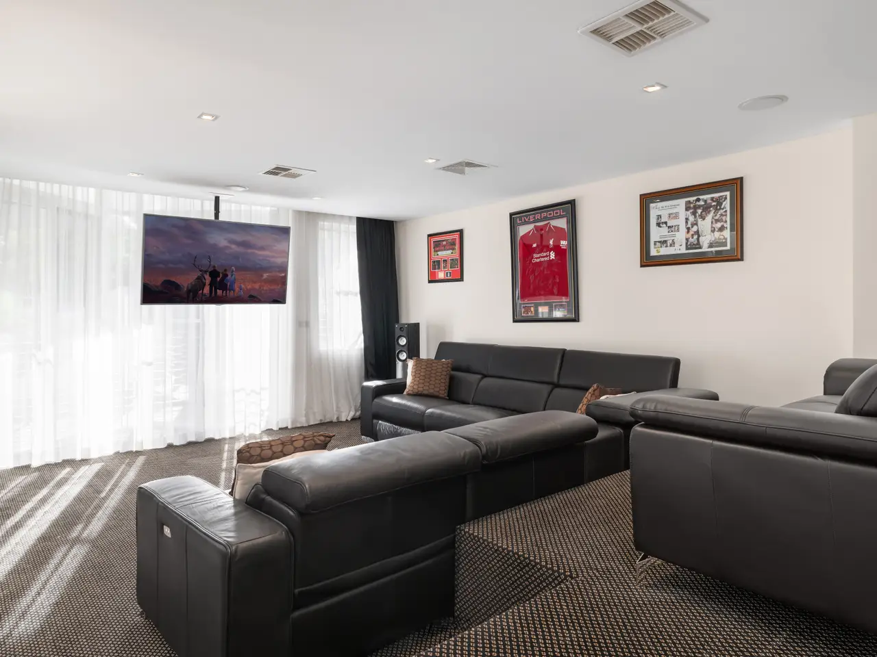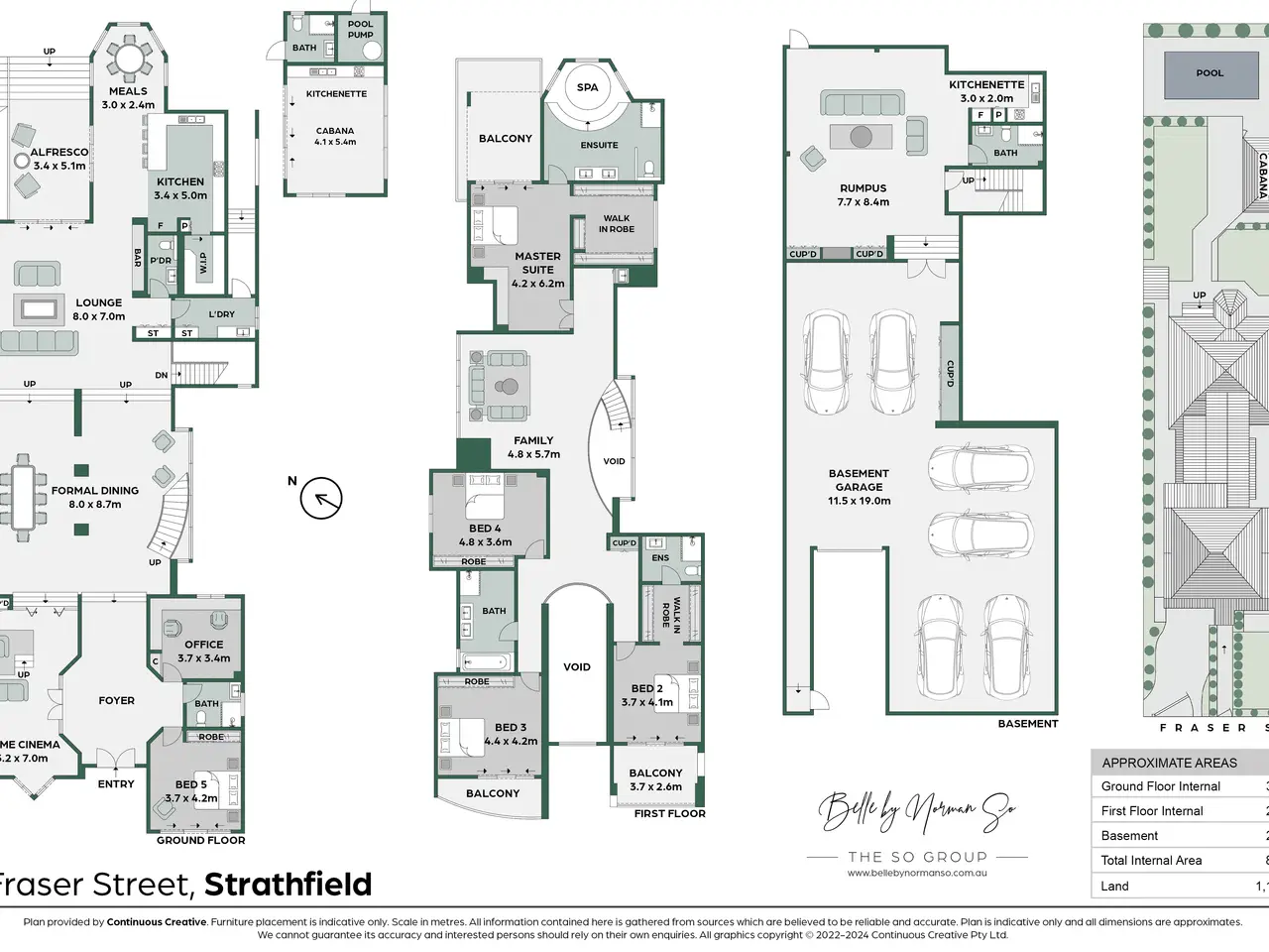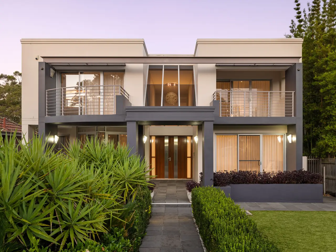 Unveiling a flawlessly appointed tri-level design, this master-built home stands as an exquisite lifestyle sanctuary with an array of private leisure facilities. Exuding elegance, grandeur, and opulence, its sun-washed interiors showcase a sequence of living spaces, along with a poolside cabana and a beautifully manicured garden setting. The property is set on a coveted 1,157 square meter north facing block and enjoys a family-oriented setting, within 2.8 kilometers of Strathfield Station. - Custom 'one of one' builders own home, double brick and concrete build - Signature concrete spiral stairs with dual height glass wall, marble floors - Impressive entry foyer with double height void and designer chandeliers - Refined fittings, natural sunlight and custom design enhance the interiors - Home cinema impresses with recliners and projector, office and family room - Sunken formal dining area, rumpus room features kitchenette and bathroom - Beautifully manicured hedges immerse the backyard and swimming pool - Poolside cabana enjoys a kitchenette and bathroom, additional BBQ area - Five plush bedrooms all with built-ins, two with ensuites, three with balcony - Exclusive master, private balcony, bespoke walk-in and double spa ensuite - Modern kitchen features stainless steel gas appliances and a butler pantry - Ducted air-conditioning, shadow line ceilings, downlights, polished tiling - Pristine 1157sqm's of landscaped glory/gardens, every day is a holiday - Resort styled backdrop with concrete inground pool, cabana, child friendly lawns - Living and entertaining spaces on all three levels, built for the growing family - Extensive basement car space accommodates up to six vehicles and storage - Located 2.8km from Strathfield Station, just 1.9km from Homebush Station - Walk to St Pat's college, a number of parks, village shops and Homebush train - Close to Strathfield Plaza, Meriden, Trinity, Boulevarde Shops & Strathfield train