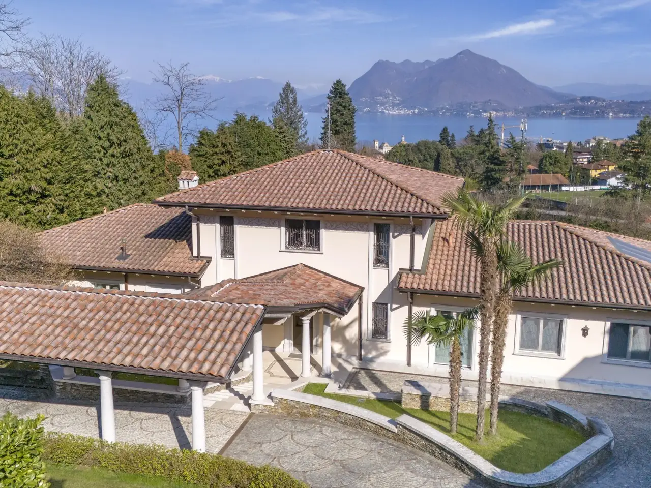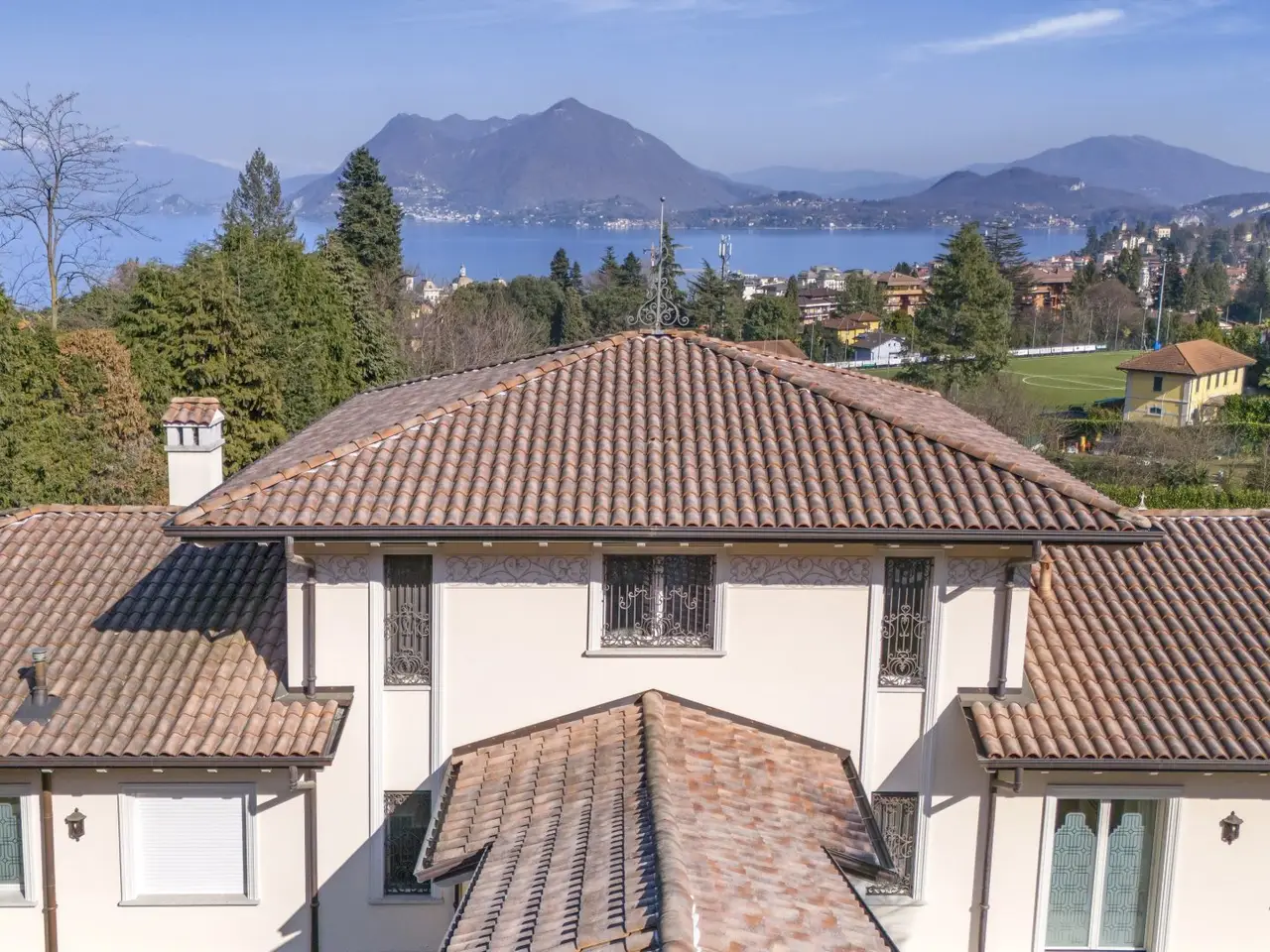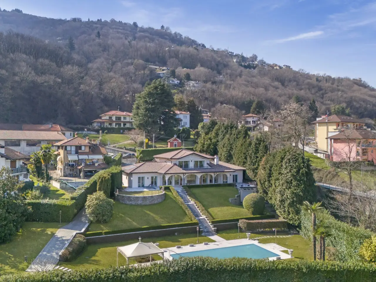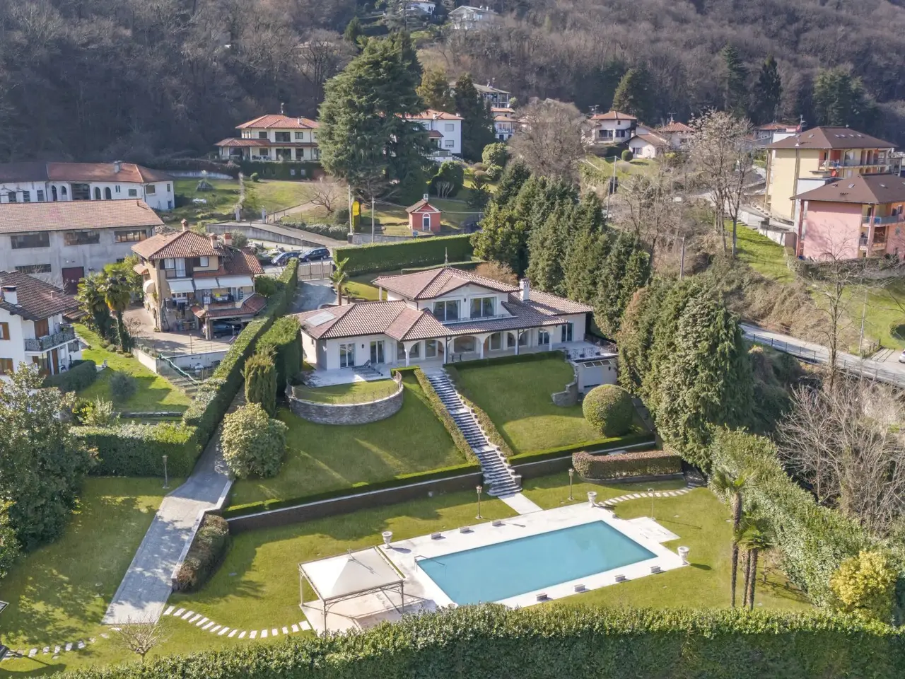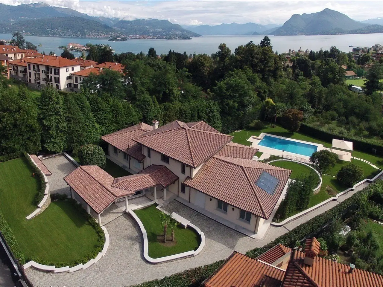 In a dominant and private position, just minutes from the center of Stresa, stands this exclusive luxury lake-view villa, surrounded by greenery and overlooking one of the most spectacular views of Lake Maggiore. A unique property of value, ideal for those seeking an elegant and modern residence in Piedmont, perfectly integrated into the landscape. Built on a 3,460-square-meter plot, this exclusive property in Stresa is the result of the design of a leading Italian engineer and the construction by a major local company. The result is a beautifully designed villa that blends classic architecture and state-of-the-art living technologies, designed to ensure maximum comfort. The villa is spread over a total area of about 500 square meters distributed on three levels, with bright rooms and luxury finishes: parquet floors, marble tiling, large panoramic windows framing the breathtaking view of Lake Maggiore and the town of Stresa. The main floor welcomes with a dramatic entrance with two large columns leading to the large living room, overlooking a covered terrace, perfect for lake view breakfasts or sunset dinners. The kitchen, modern and functional, is separate and connects with the living area. Completing the floor are two double bedrooms with walk-in closets and en suite bathrooms, a fitness area with a terrace-easily convertible into a third bedroom-and a service bathroom. On the upper floor is the master suite, an exclusive sleeping area consisting of a master bedroom with private terrace, large walk-in closet, designer bathroom and a private study, ideal for working from home in luxury and absolute privacy. The basement floor houses an independent apartment for service personnel. It includes a living area with kitchen and dining room, master bedroom with private bathroom and a separate terrace. Also present are a wine cellar and a technical room with boiler. The well-kept garden, planted with fine essences, houses a heated swimming pool with solarium, a wooden gazebo, outdoor shower and a relaxation area from which to enjoy the panoramic view of Lake Maggiore. The property also includes a wooden tool shed and a separate garage with two covered parking spaces. From a technological point of view, the villa is equipped with the most modern facilities: underfloor heating, controlled mechanical ventilation system, centralized air conditioning, solar panels, electric shutters and awnings, and state-of-the-art alarm system. This luxury villa for sale in Stresa is the perfect solution for those looking for a prestigious property on Lake Maggiore, ideal as a first home or summer residence. An authentic charming retreat where you can live immersed in nature, without sacrificing style, innovation and tranquility.