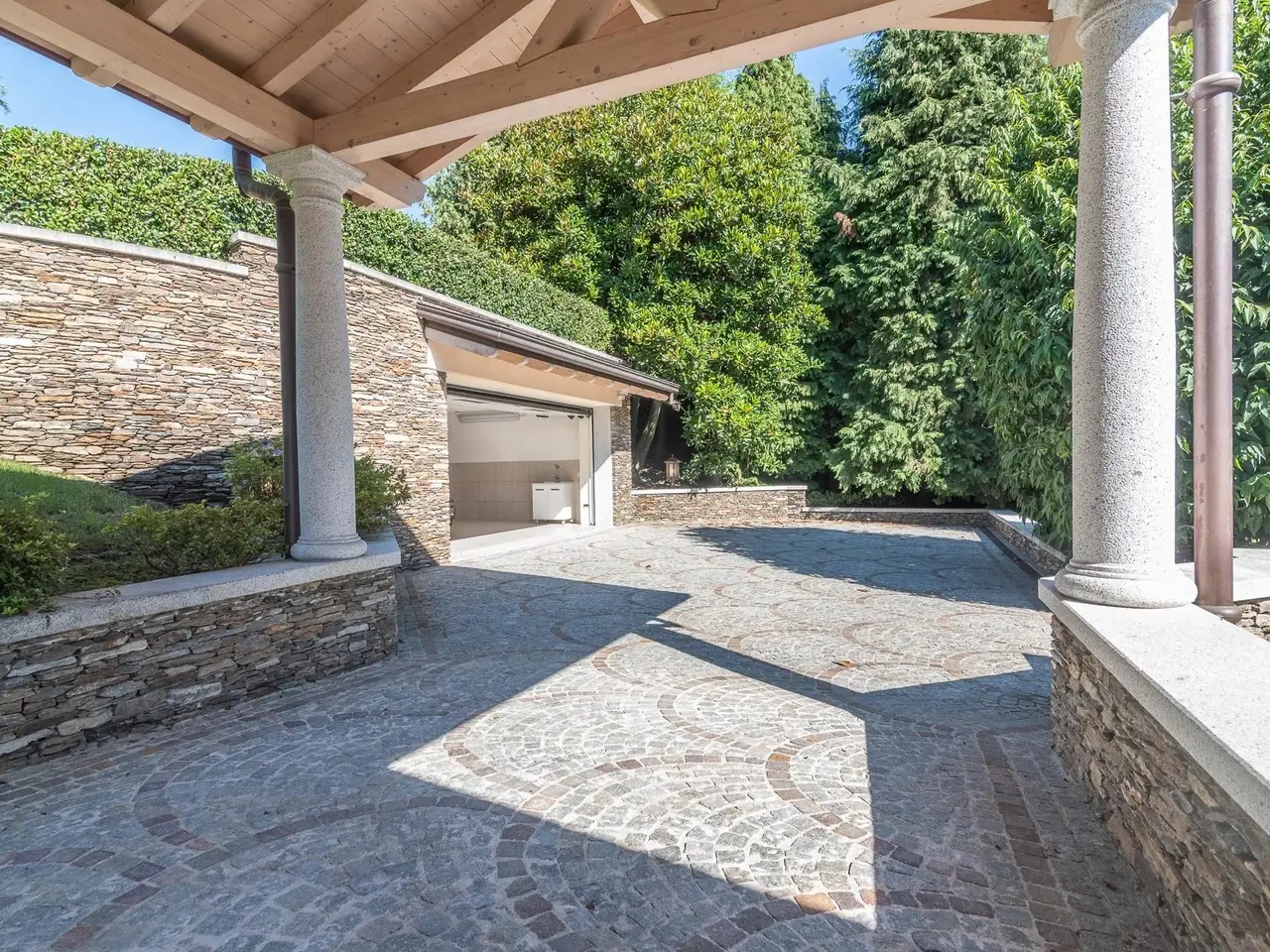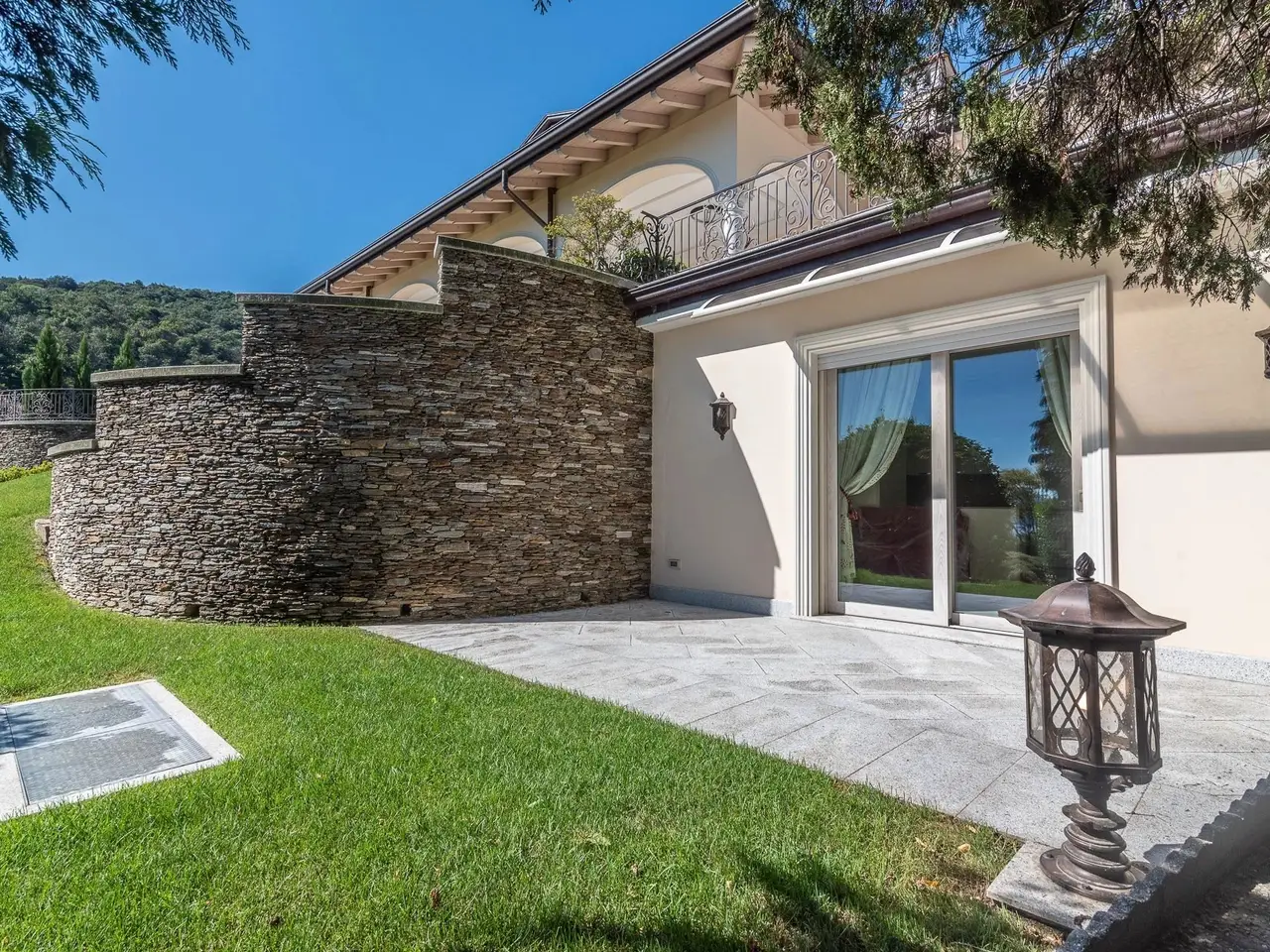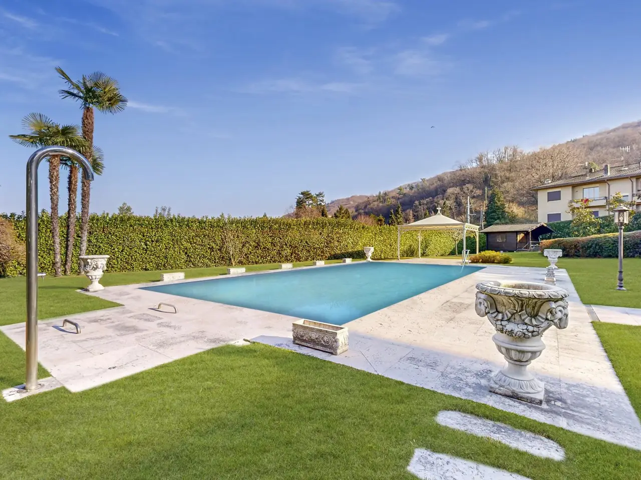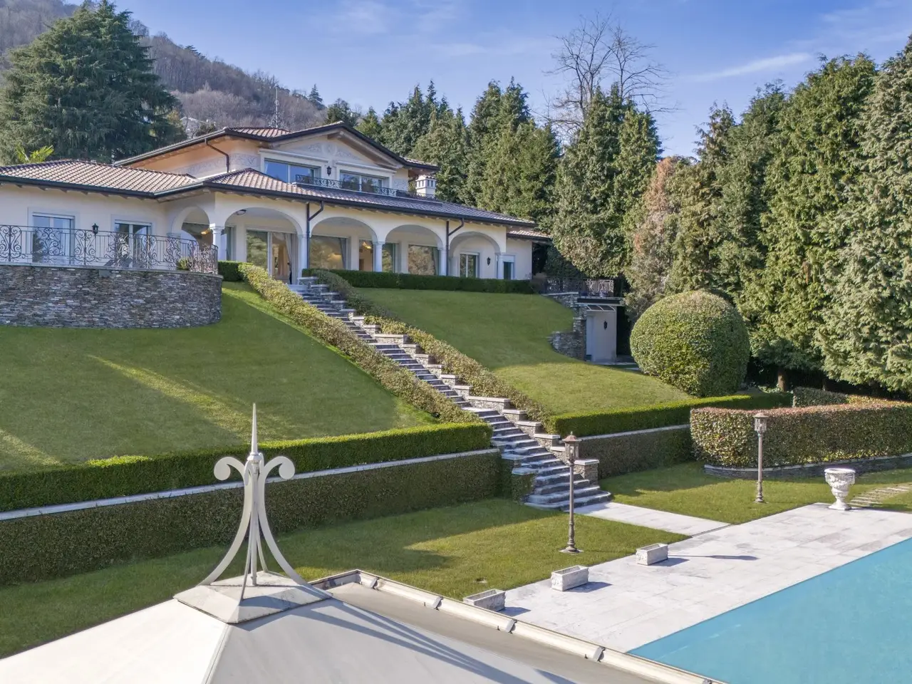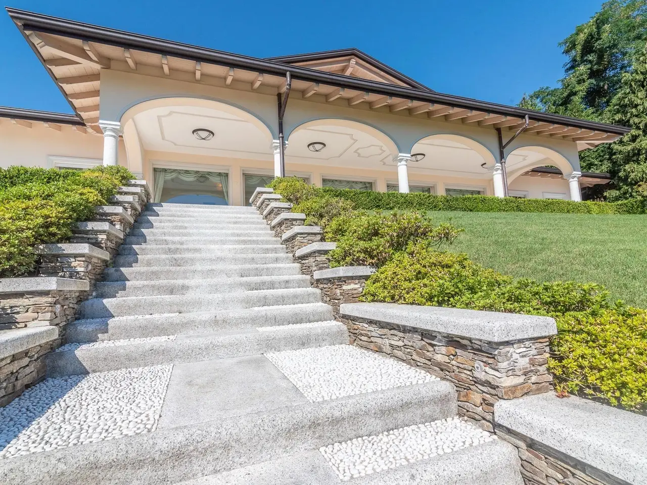 In a dominant and private position, just minutes from the center of Stresa, stands this exclusive luxury lake-view villa, surrounded by greenery and overlooking one of the most spectacular views of Lake Maggiore. A unique property of value, ideal for those seeking an elegant and modern residence in Piedmont, perfectly integrated into the landscape. Built on a 3,460-square-meter plot, this exclusive property in Stresa is the result of the design of a leading Italian engineer and the construction by a major local company. The result is a beautifully designed villa that blends classic architecture and state-of-the-art living technologies, designed to ensure maximum comfort. The villa is spread over a total area of about 500 square meters distributed on three levels, with bright rooms and luxury finishes: parquet floors, marble tiling, large panoramic windows framing the breathtaking view of Lake Maggiore and the town of Stresa. The main floor welcomes with a dramatic entrance with two large columns leading to the large living room, overlooking a covered terrace, perfect for lake view breakfasts or sunset dinners. The kitchen, modern and functional, is separate and connects with the living area. Completing the floor are two double bedrooms with walk-in closets and en suite bathrooms, a fitness area with a terrace-easily convertible into a third bedroom-and a service bathroom. On the upper floor is the master suite, an exclusive sleeping area consisting of a master bedroom with private terrace, large walk-in closet, designer bathroom and a private study, ideal for working from home in luxury and absolute privacy. The basement floor houses an independent apartment for service personnel. It includes a living area with kitchen and dining room, master bedroom with private bathroom and a separate terrace. Also present are a wine cellar and a technical room with boiler. The well-kept garden, planted with fine essences, houses a heated swimming pool with solarium, a wooden gazebo, outdoor shower and a relaxation area from which to enjoy the panoramic view of Lake Maggiore. The property also includes a wooden tool shed and a separate garage with two covered parking spaces. From a technological point of view, the villa is equipped with the most modern facilities: underfloor heating, controlled mechanical ventilation system, centralized air conditioning, solar panels, electric shutters and awnings, and state-of-the-art alarm system. This luxury villa for sale in Stresa is the perfect solution for those looking for a prestigious property on Lake Maggiore, ideal as a first home or summer residence. An authentic charming retreat where you can live immersed in nature, without sacrificing style, innovation and tranquility.