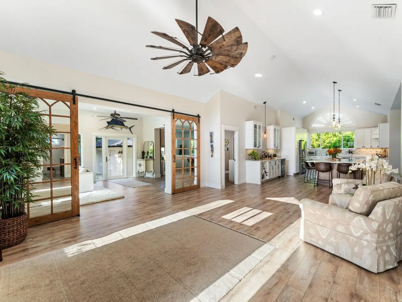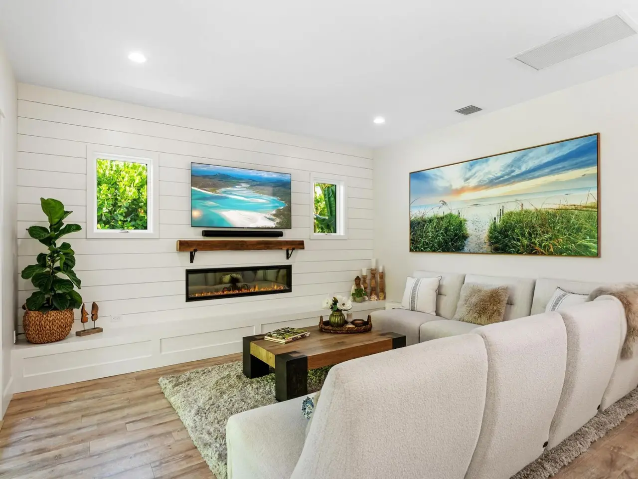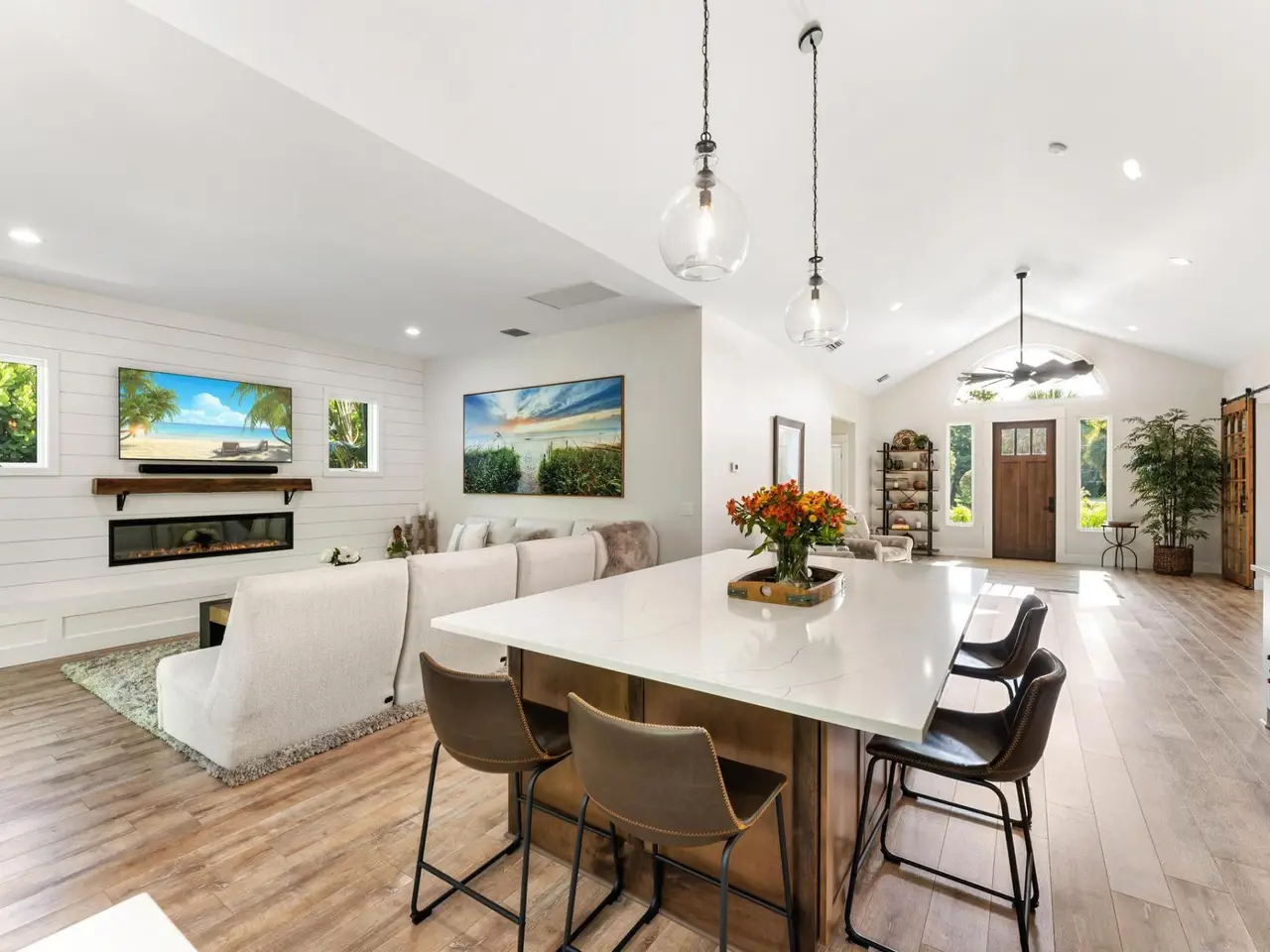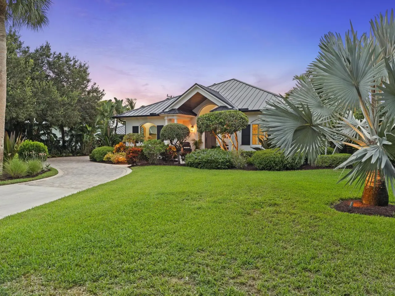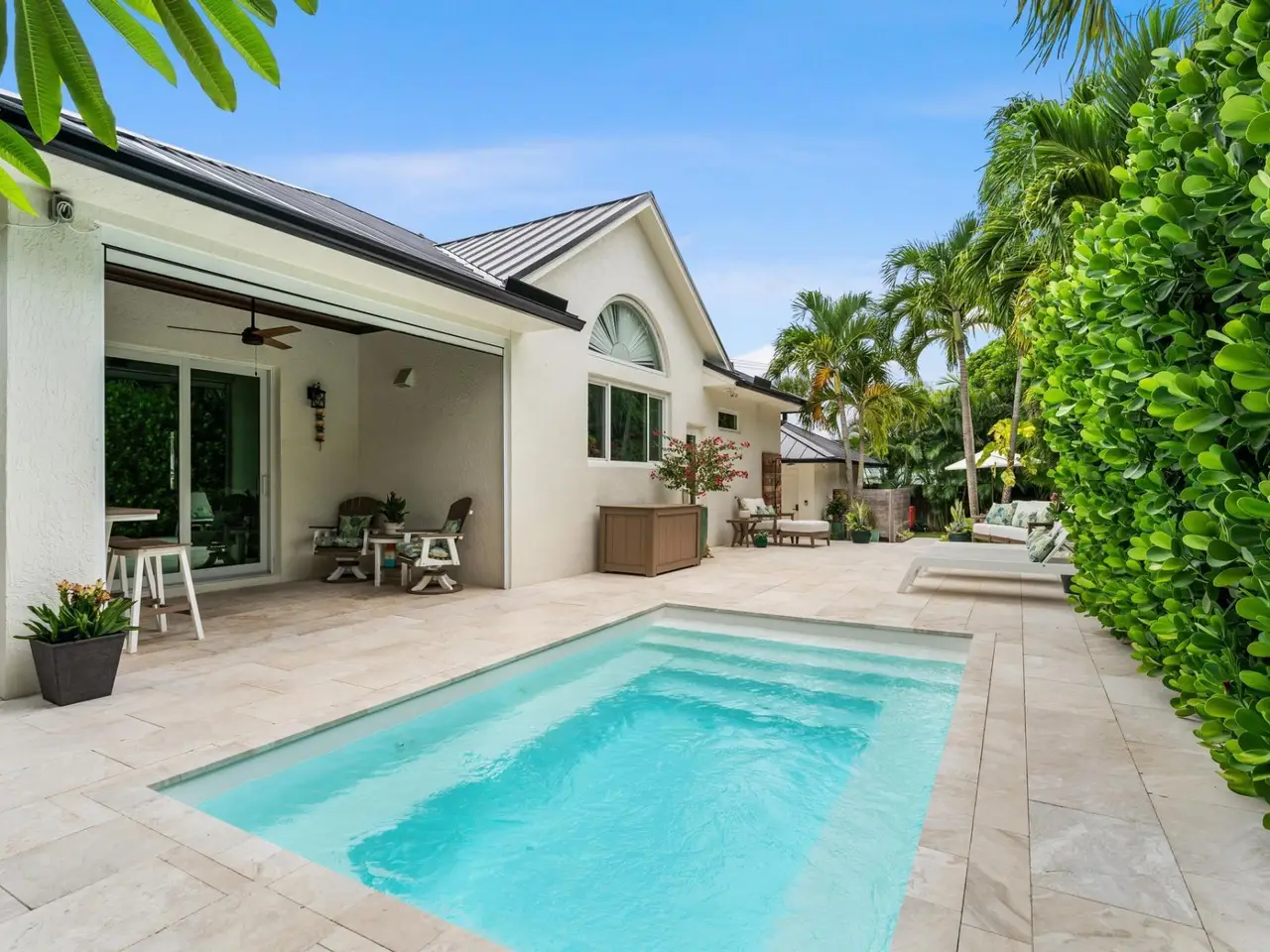 This Downtown Stuart-area home exudes true Florida style with functionality. Pride of ownership is felt the moment you cross the front door. New impact glass windows & doors, a reconfigured kitchen with large gathering island, & bar area beckon the true entertainer. Separate living room offers picture window views of the lush landscaping. Additional sitting area with accent fireplace. Garage doubles as an air-conditioned life/workspace. Outside, the home shines day or night, with multiple seating areas, plunge pool, gas-fed firepit, and water feature. Upgrades include home generator, 2023 new roof, owned solar panels & SPAN home center. A bonus, 40-plus foot dock at the Outrigger Harbour Marina (Jensen Beach) & 24k lift offered for $325