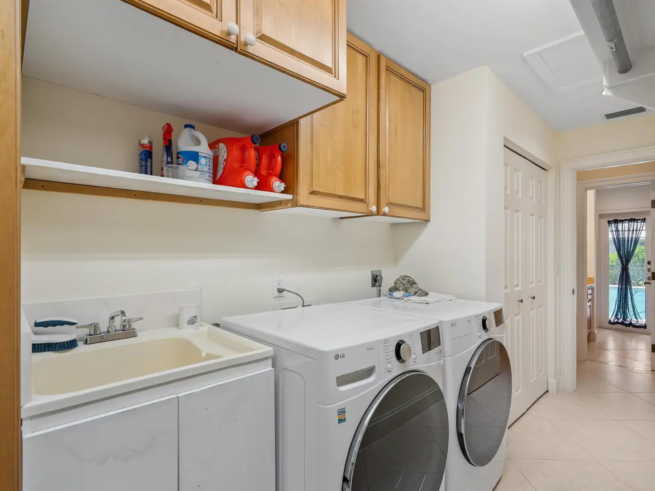 Welcome Home to your impeccably renovated 3-bdrm, 3-bath waterfront home with private dock located in the prestigious, guard-gated Stuart Yacht & Country Club. Perfectly positioned on a quiet cul-de-sac with direct canal access, this residence blends luxury living with effortless coastal charm. Designer chef's kitchen boasts custom cabinetry, Thermidor 6‑burner gas range & wall oven, wine fridge and newer S/S fridge, dishwasher & microwave. Airy and open living area perfect for entertaining or just relaxing, impact glass window's/sliders throughout, owner's suite w/ spa bath; 2 en‑suite guest rooms. Step through the sliders to your newly screened lanai and stunning pool! 30,000 lb boat lift with newer Seawell cap and tiebacks (2019). Enjoy this low HOA gated community with golf