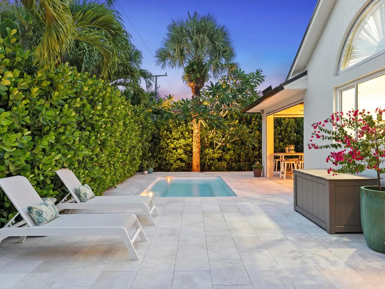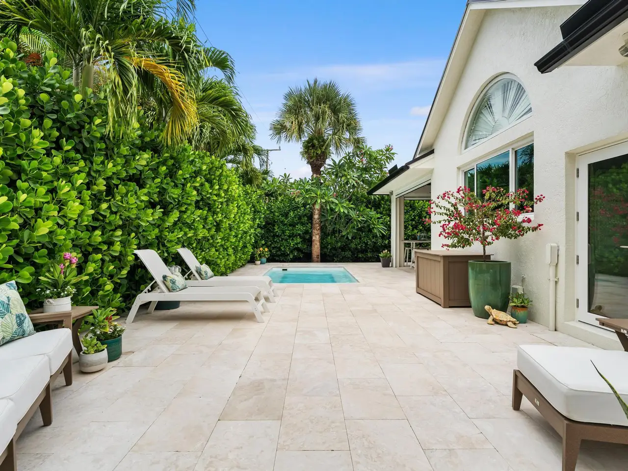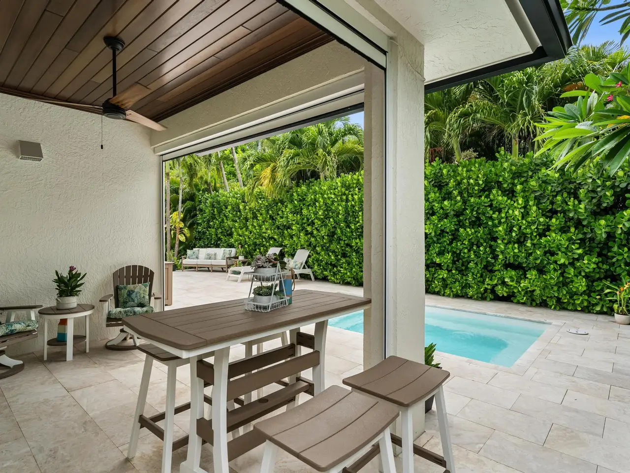 This Downtown Stuart-area home exudes true Florida style with functionality. Pride of ownership is felt the moment you cross the front door. New impact glass windows & doors, a reconfigured kitchen with large gathering island, & bar area beckon the true entertainer. Separate living room offers picture window views of the lush landscaping. Additional sitting area with accent fireplace. Garage doubles as an air-conditioned life/workspace. Outside, the home shines day or night, with multiple seating areas, plunge pool, gas-fed firepit, and water feature. Upgrades include home generator, 2023 new roof, owned solar panels & SPAN home center. A bonus, 40-plus foot dock at the Outrigger Harbour Marina (Jensen Beach) & 24k lift offered for $325